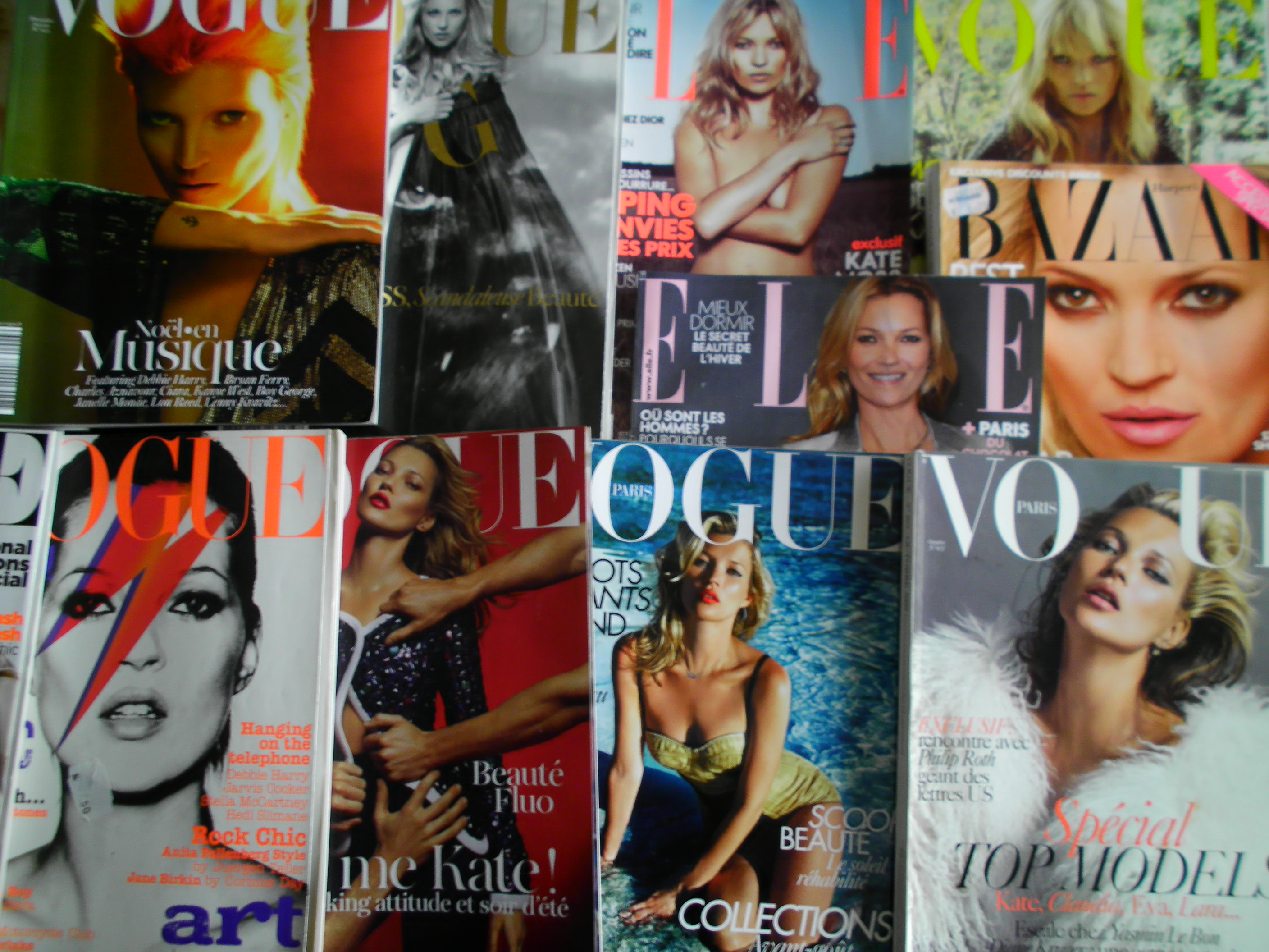Je suis sa carrière depuis le début des années 90s, mais je suis devenue fan beaucoup plus tard et j’ai commencé à collectionner les magazines avec elle en couverture. Mon étagère s’écoulera bientôt sous le poids de papier glacé portant le visage de Kate.