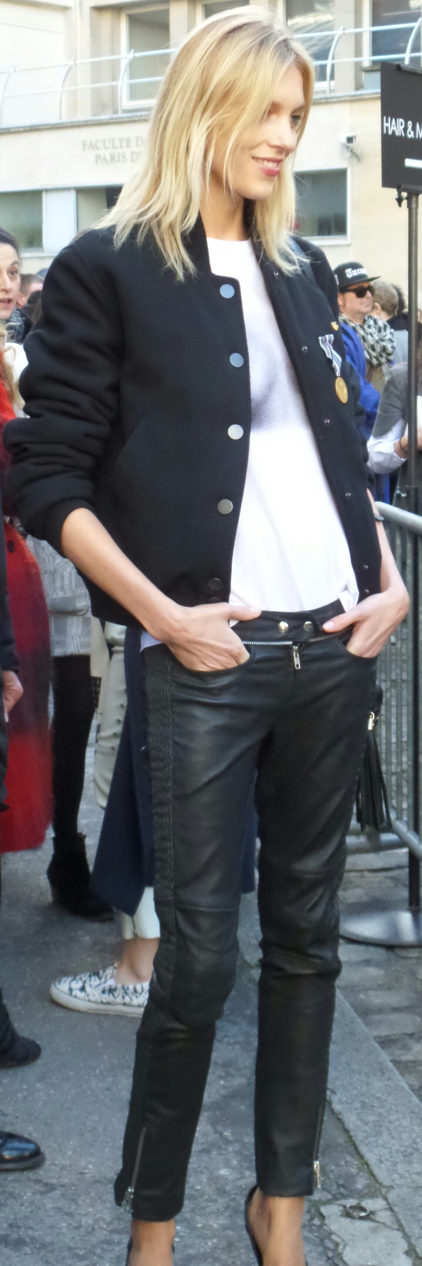 Two beautiful models, Karlie Kloss et Anja Rubik, arriving at Isabel Marant Show on 28 February 2014, Paris