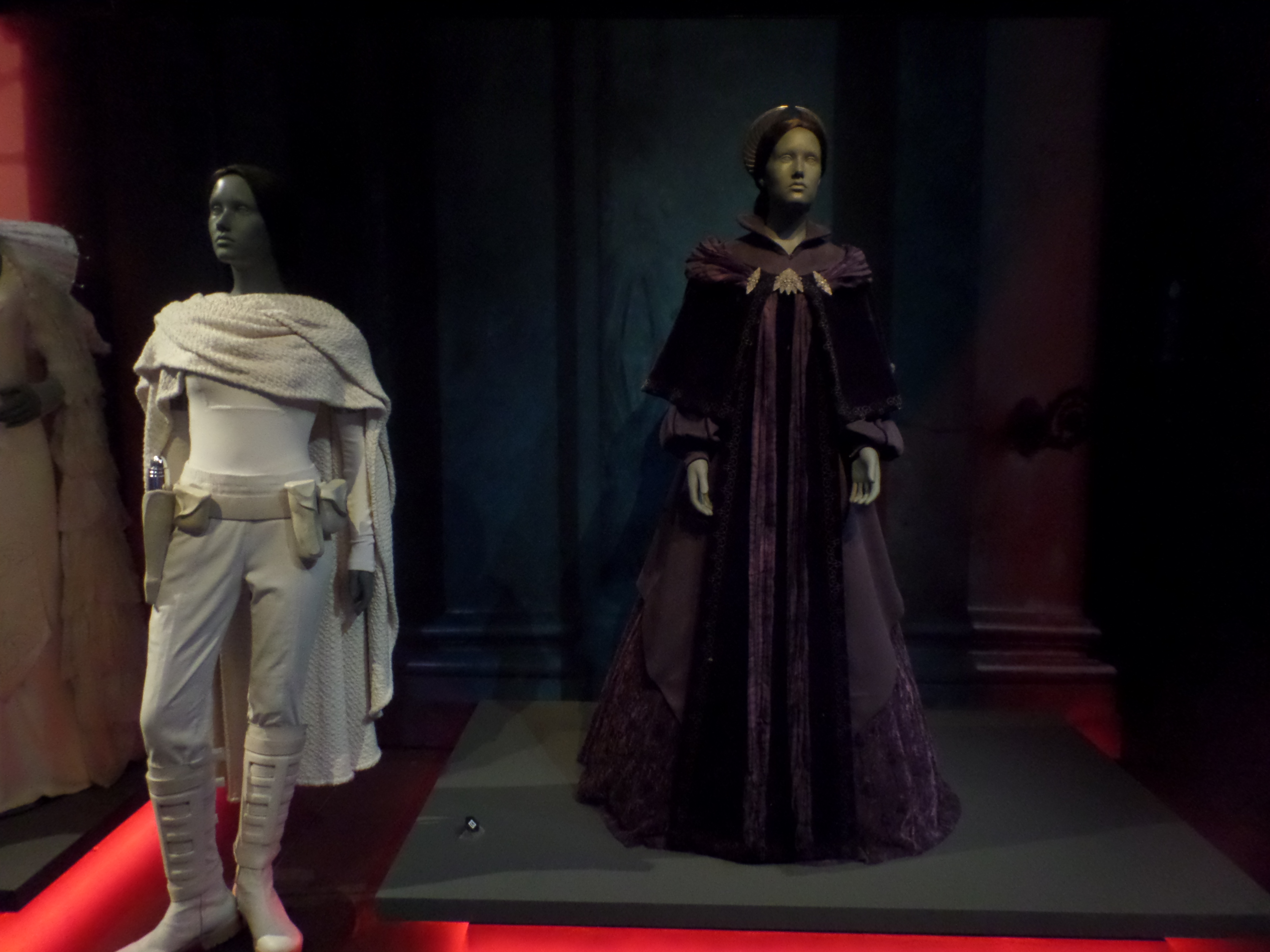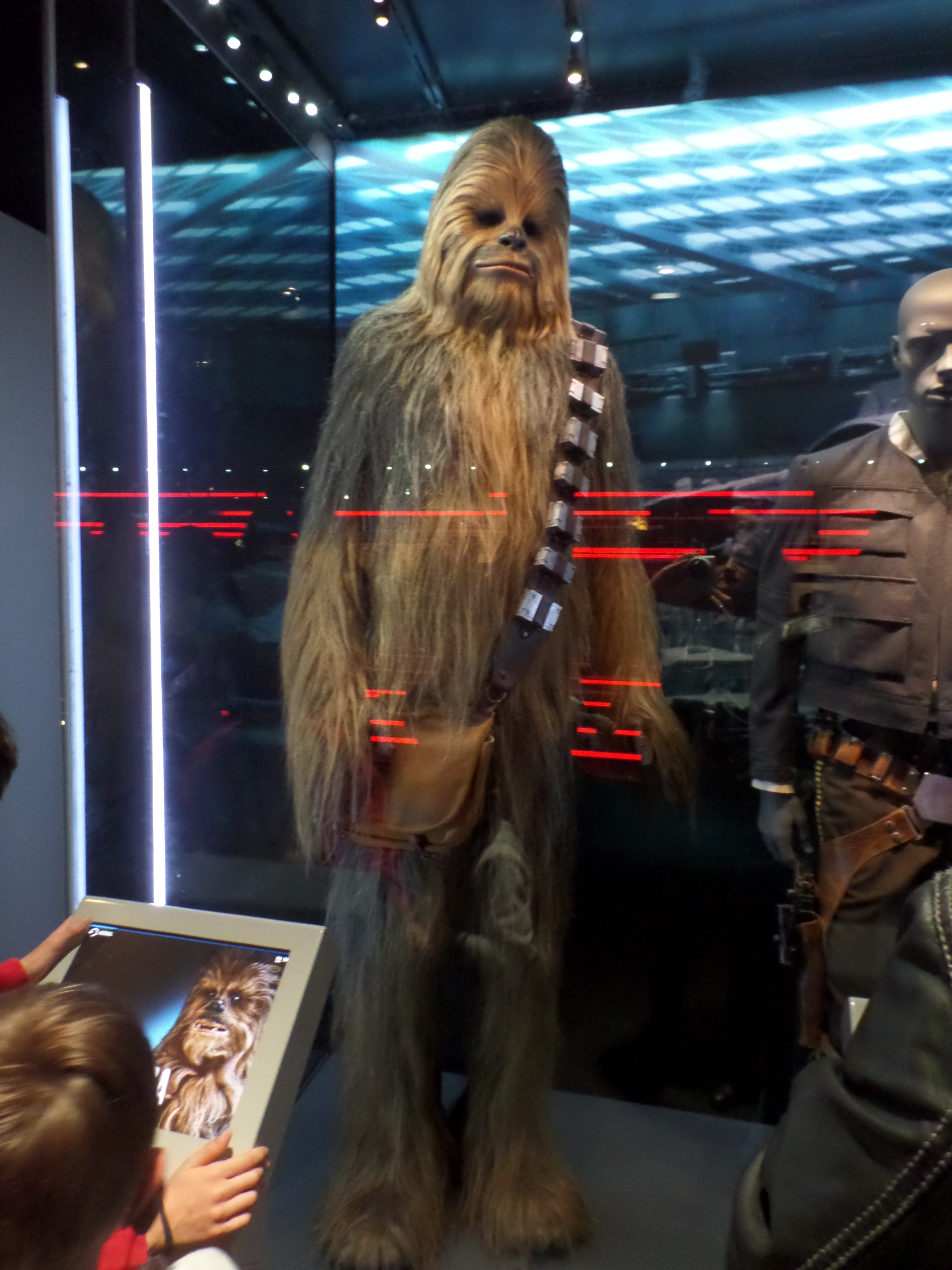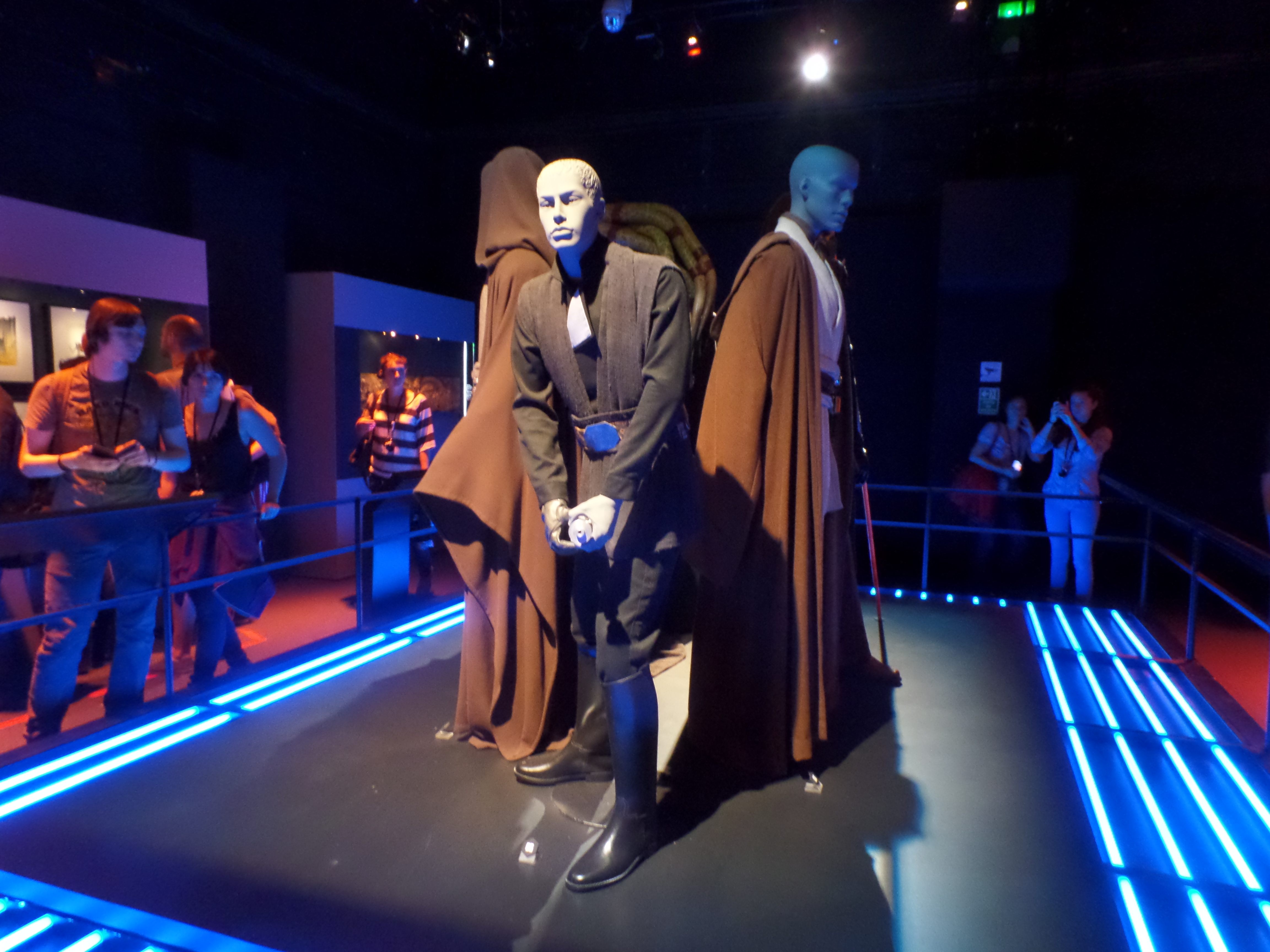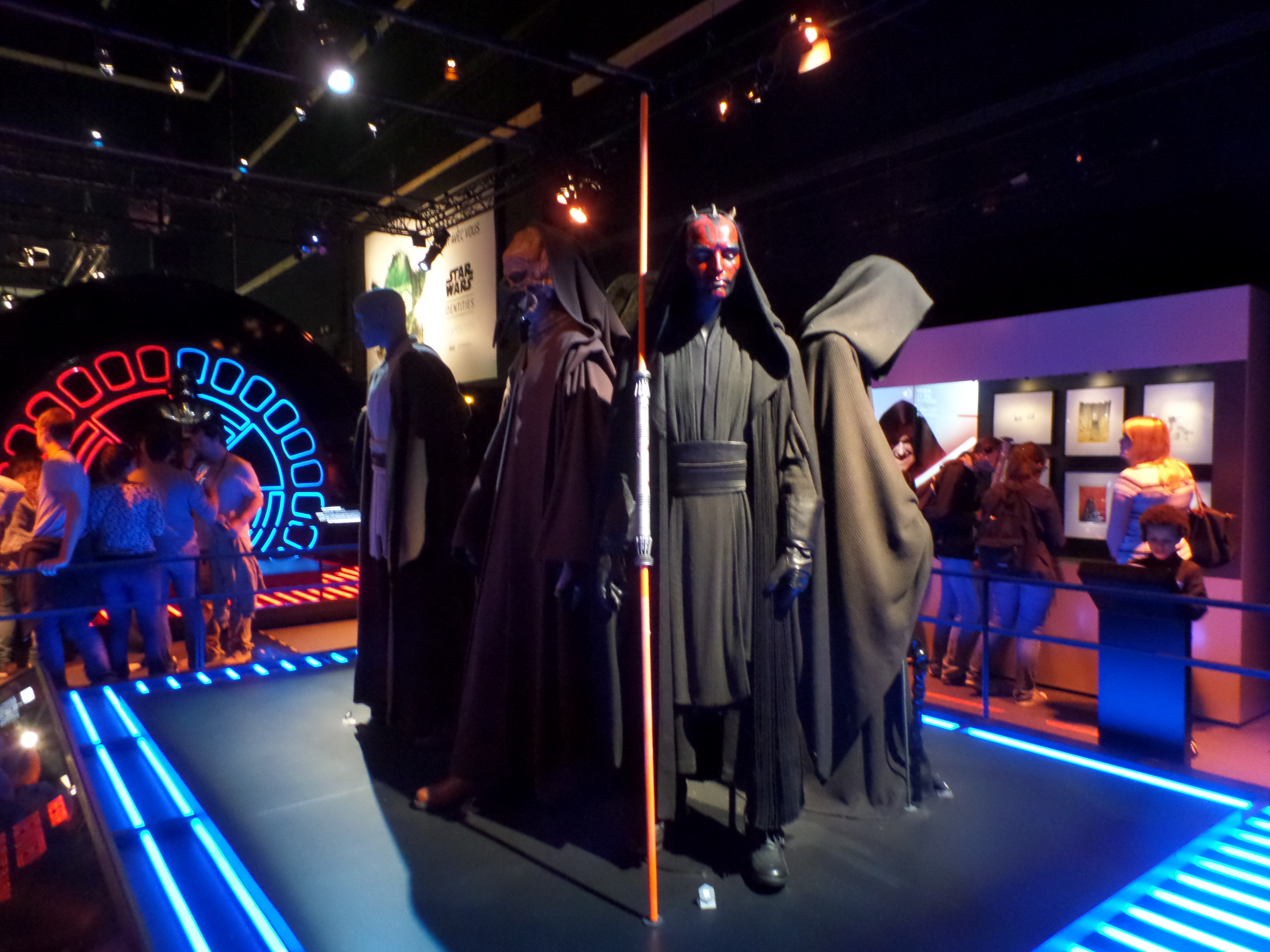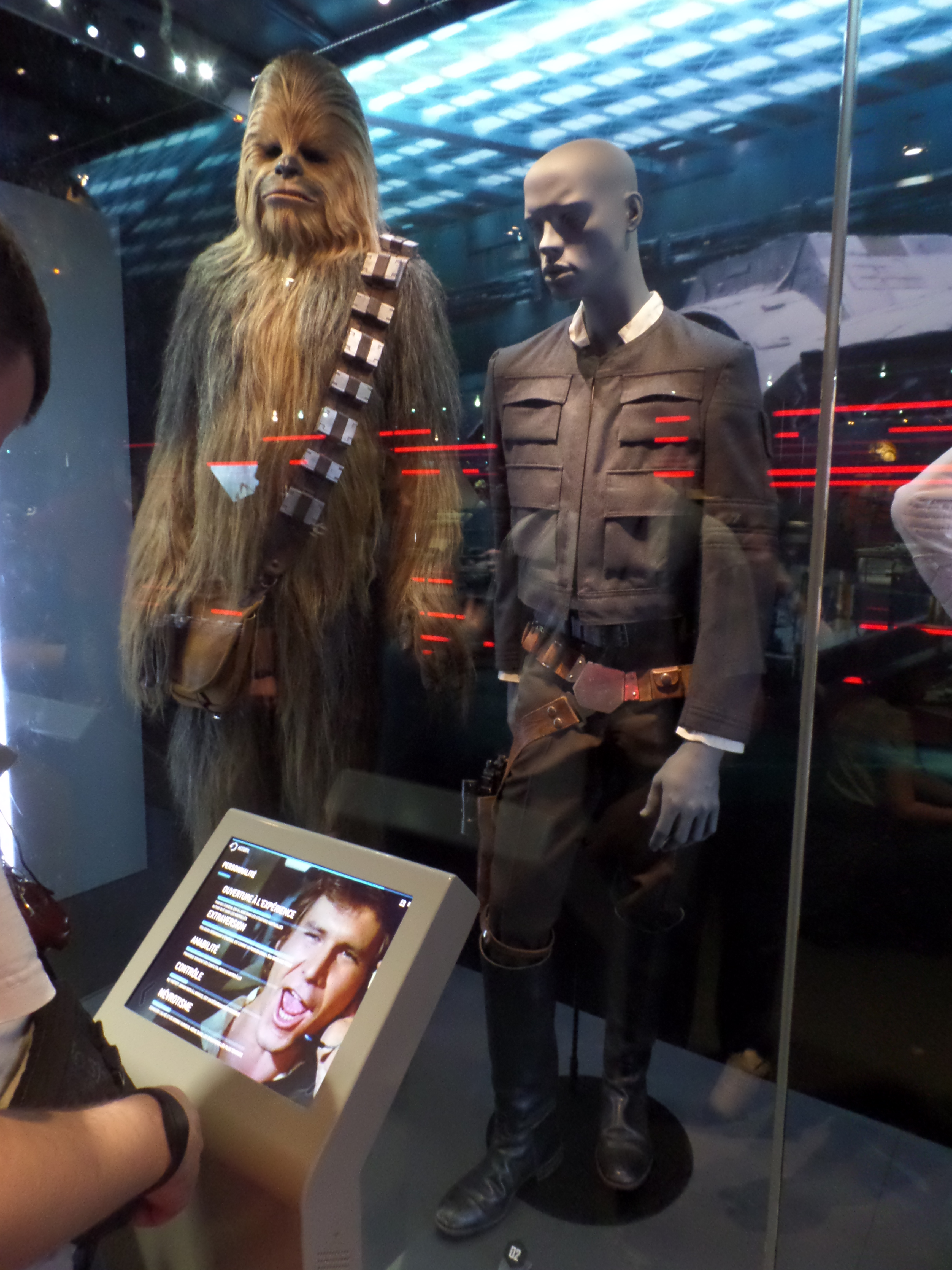 Their friends or foes, their mentors are all there, through costumes, settings drawings or extract of movies : Han Solo and his Millenium Falcon, Yoda, R2D2, C3PO, Chewbacca, Boba Fett, Princess Leia and Queen Amidala, Jar Jar Bings , the soldiers… Of course, the costume and mask of Darth Vader are also exposed,