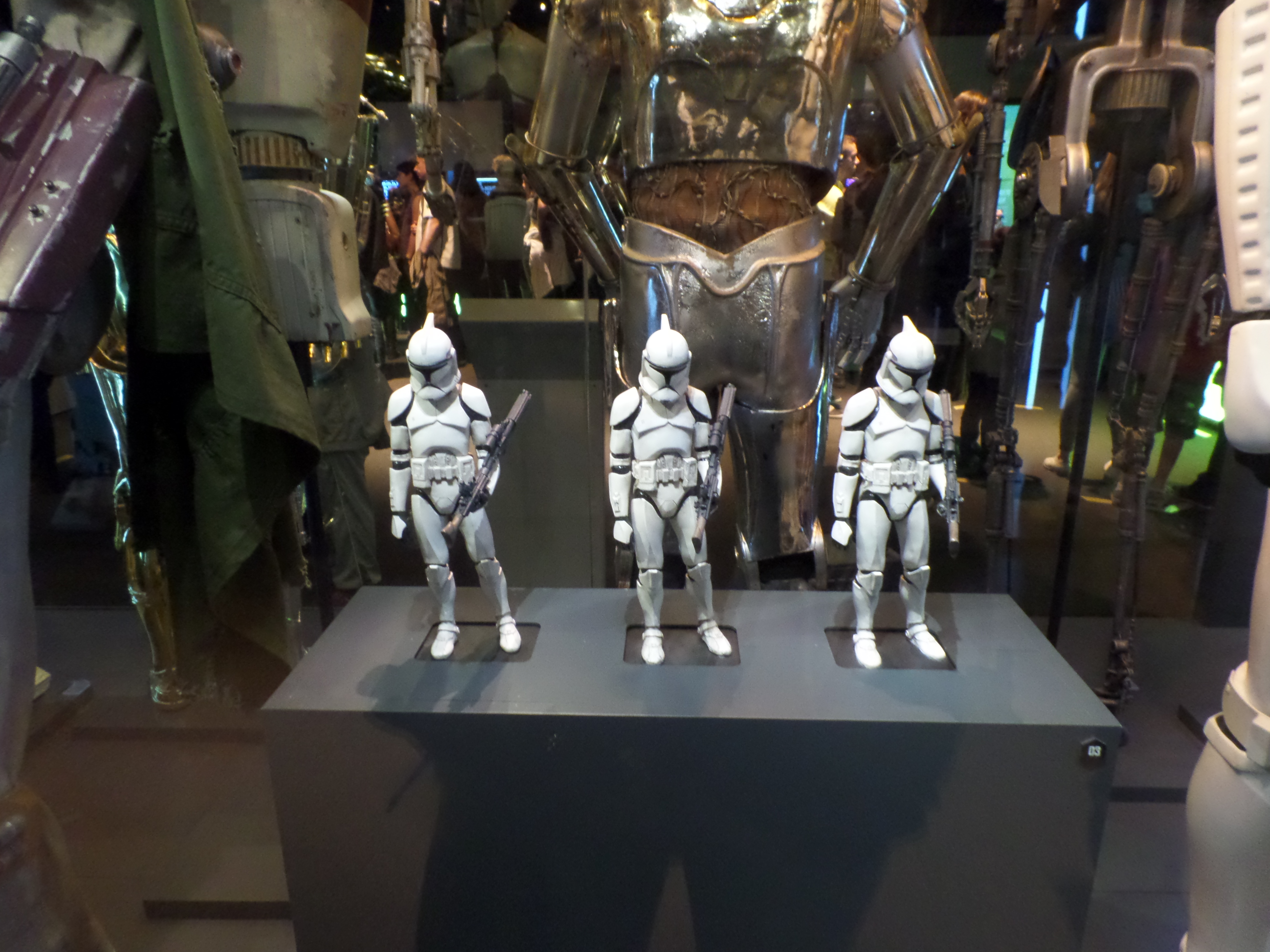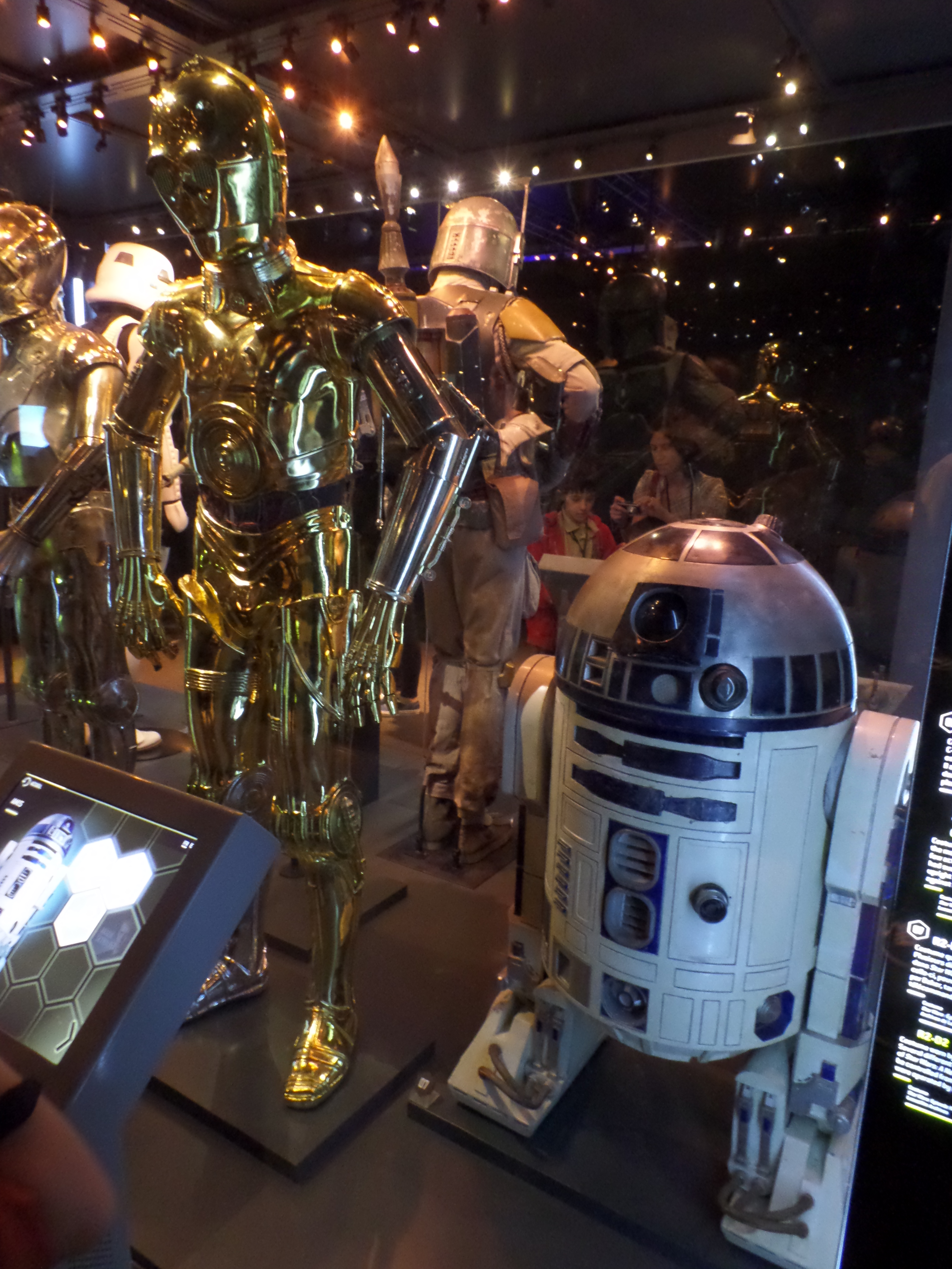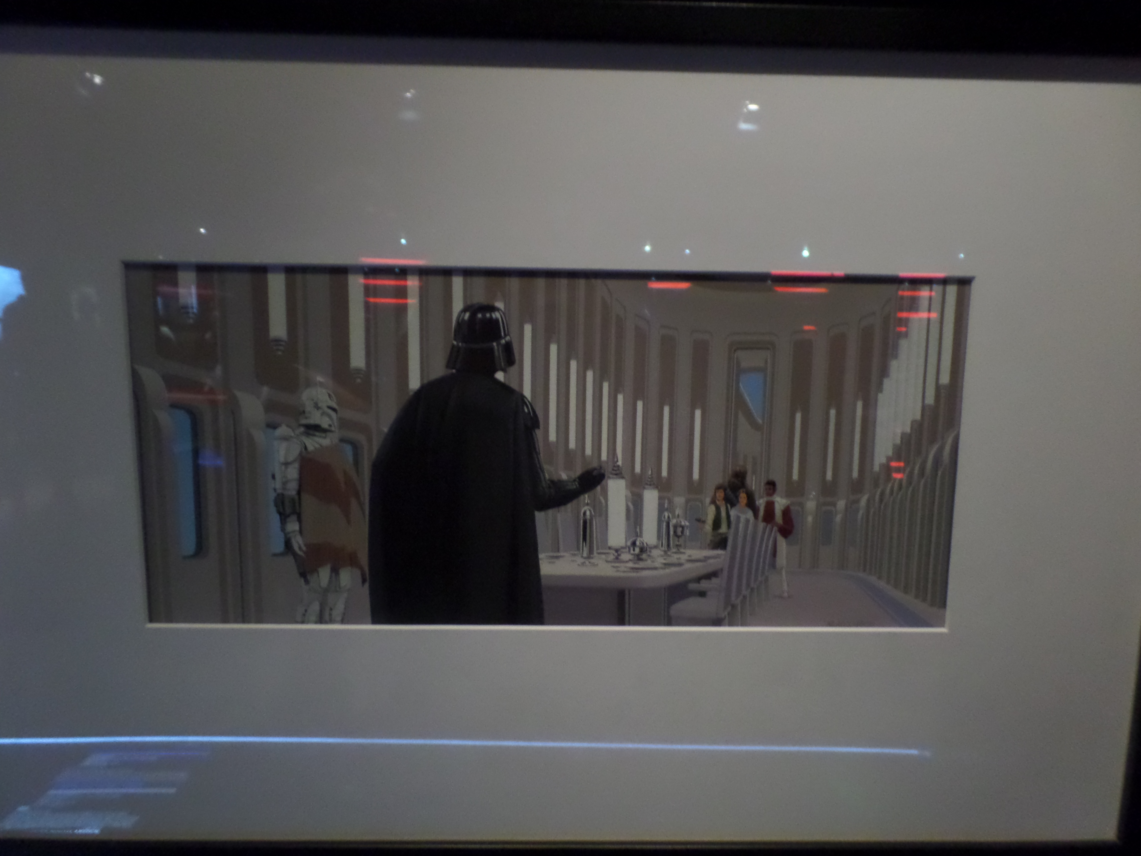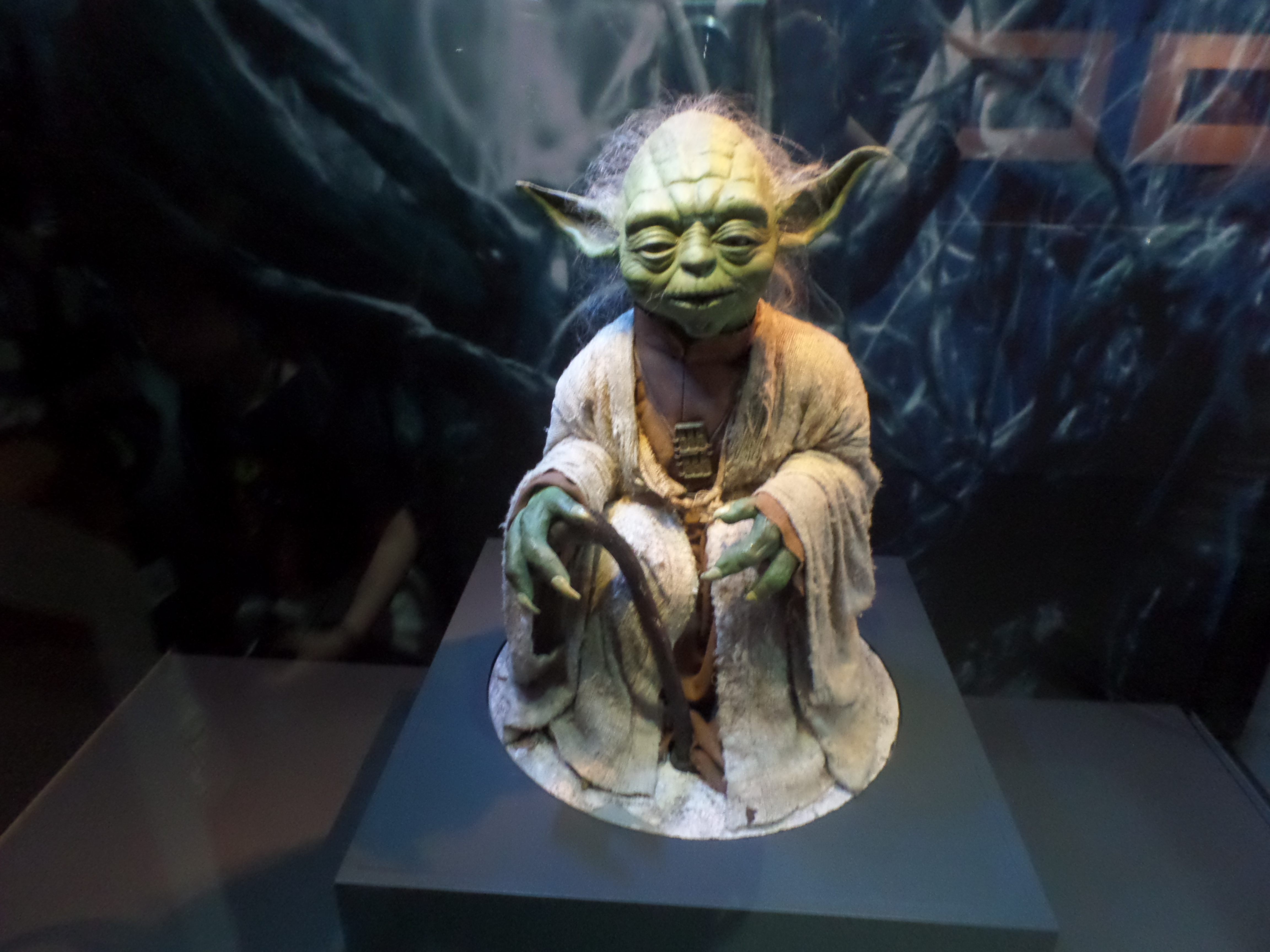 Their friends or foes, their mentors are all there, through costumes, settings drawings or extract of movies : Han Solo and his Millenium Falcon, Yoda, R2D2, C3PO, Chewbacca, Boba Fett, Princess Leia and Queen Amidala, Jar Jar Bings , the soldiers… Of course, the costume and mask of Darth Vader are also exposed,
