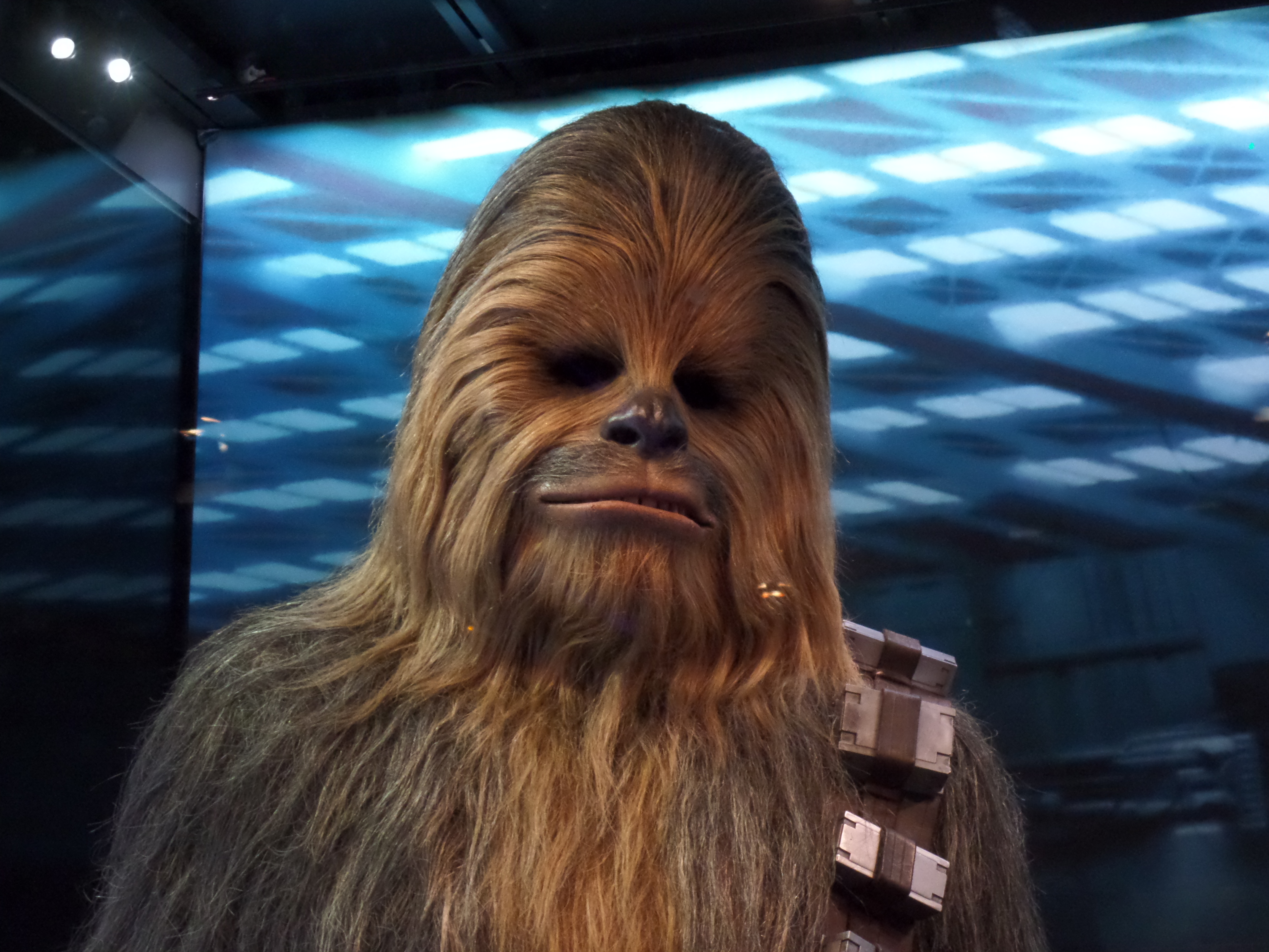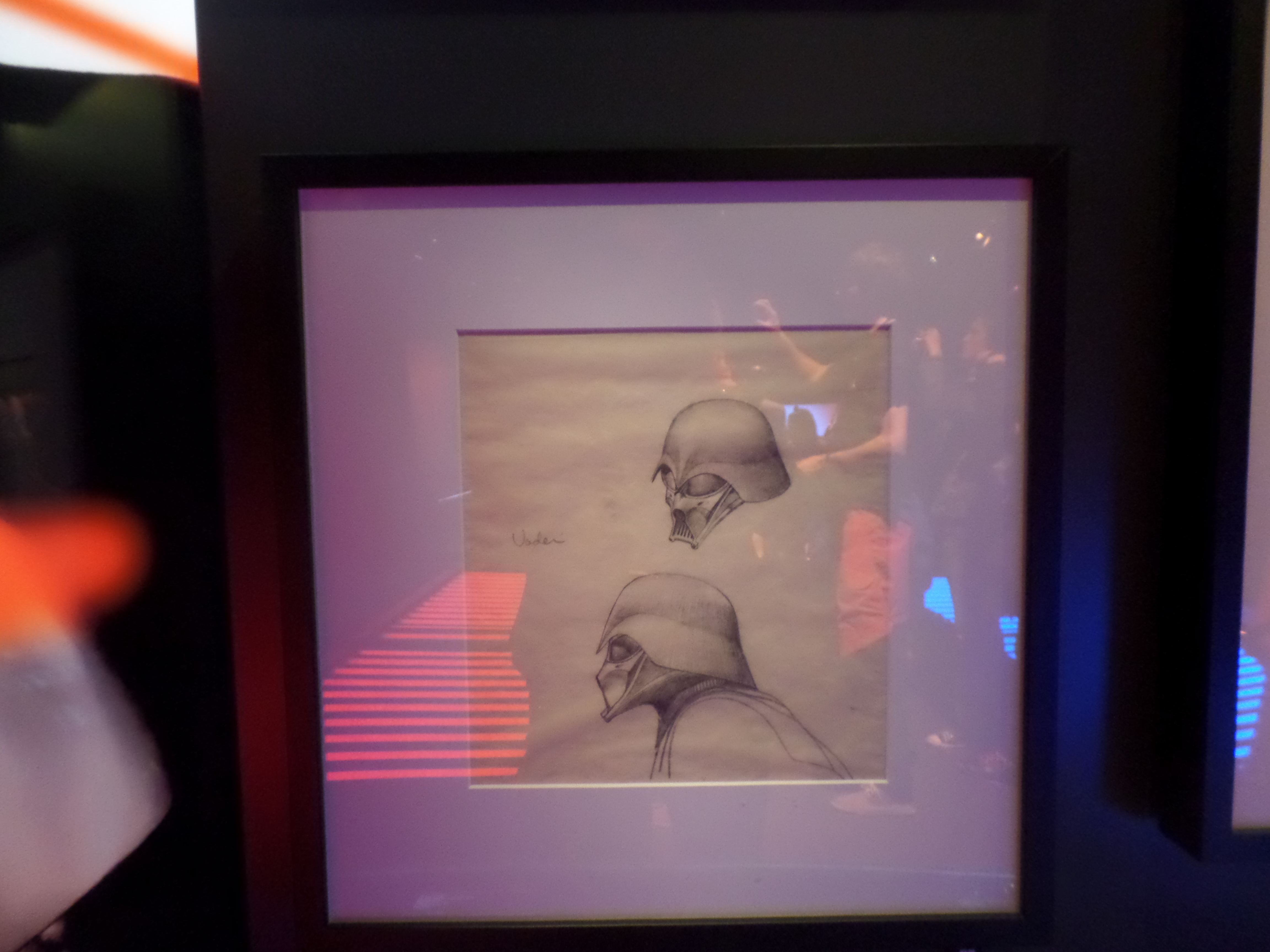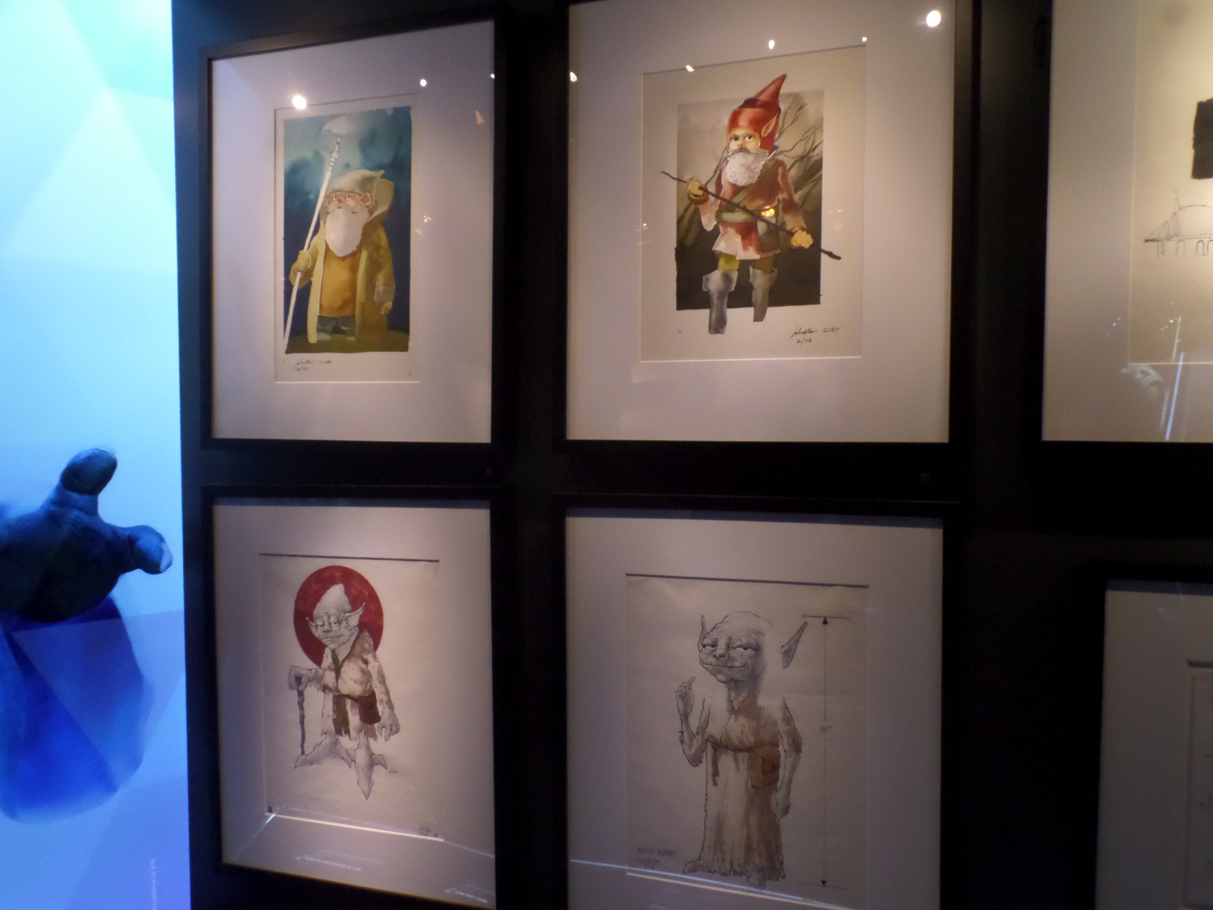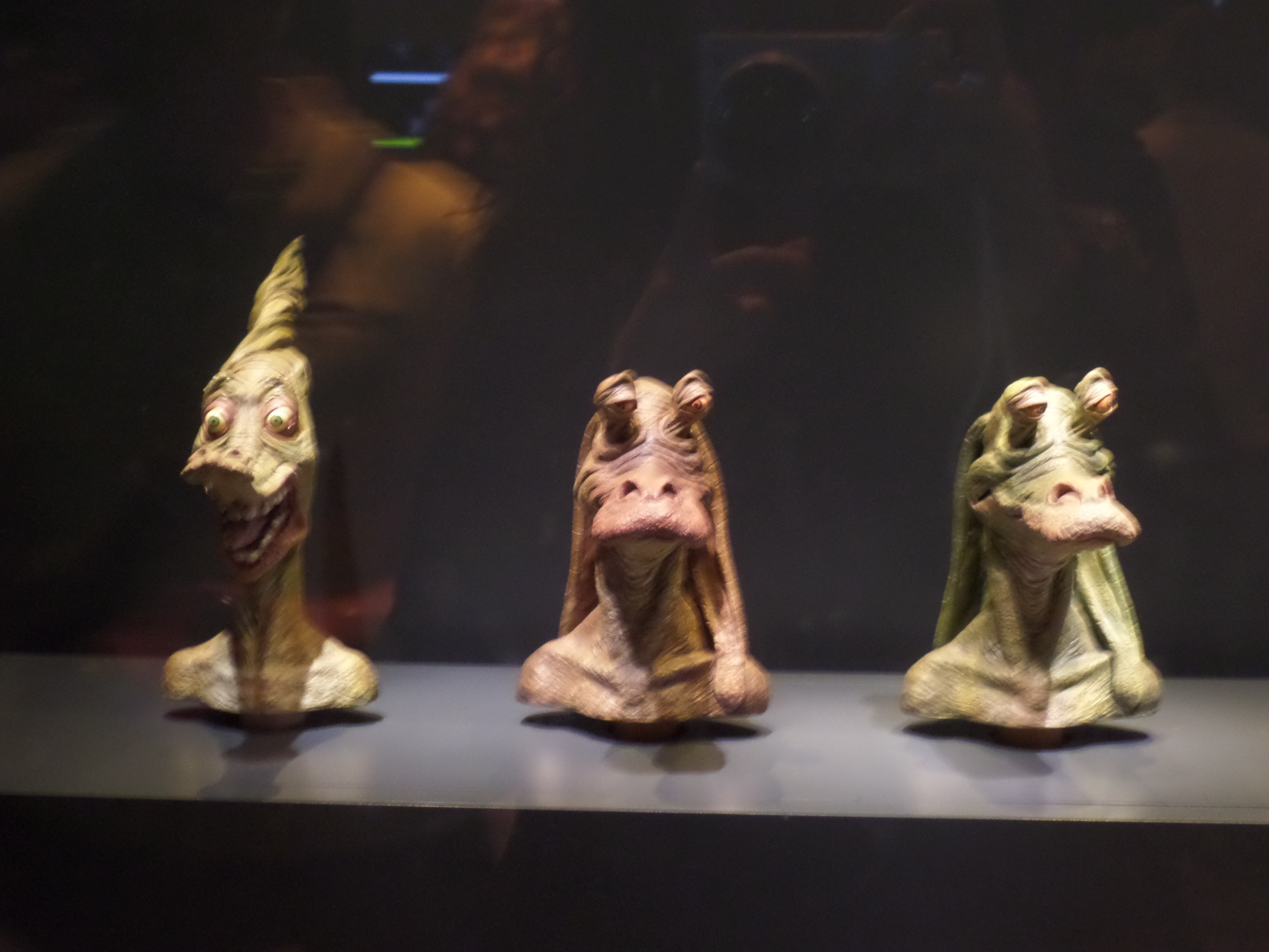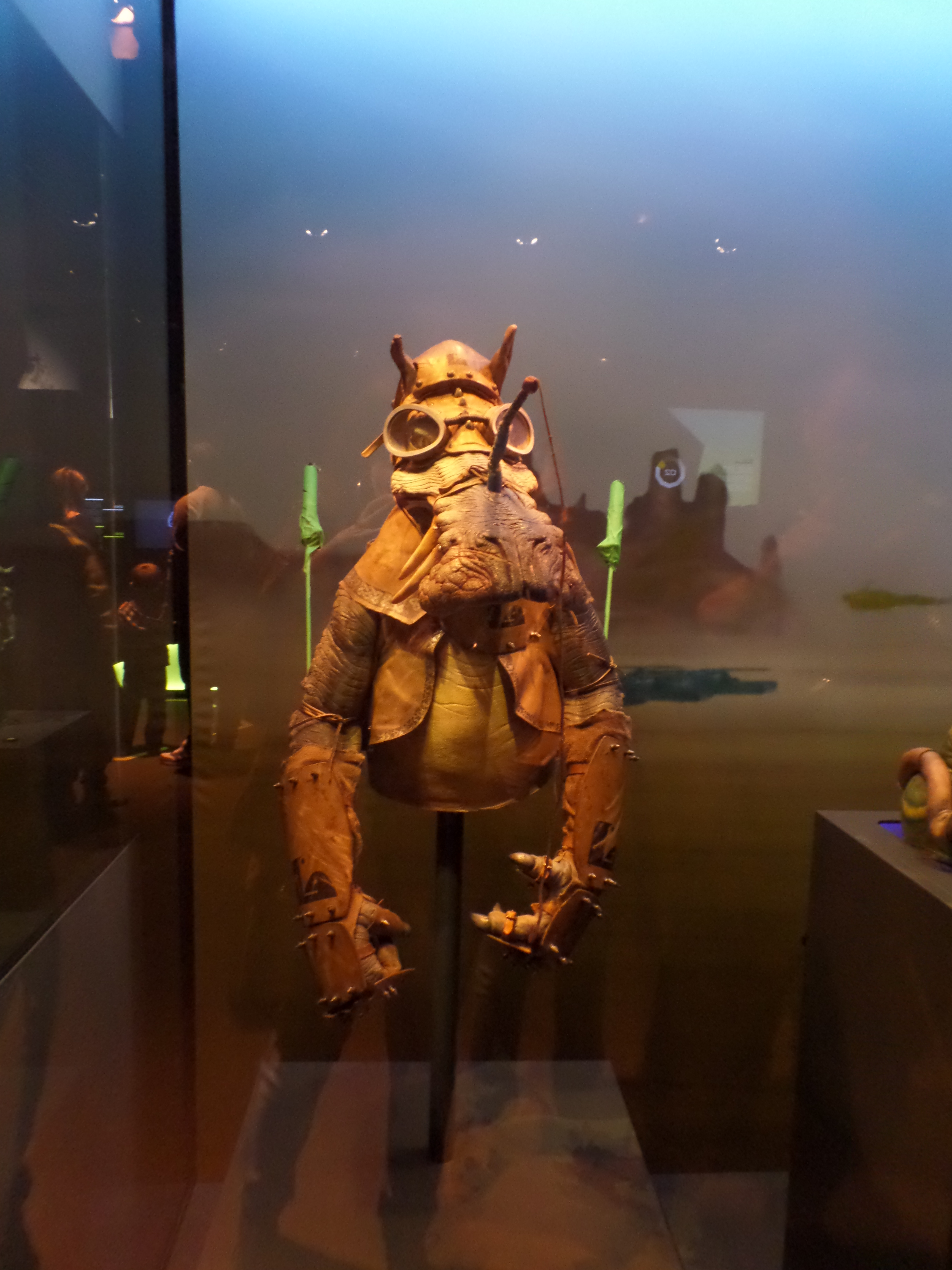 Their friends or foes, their mentors are all there, through costumes, settings drawings or extract of movies : Han Solo and his Millenium Falcon, Yoda, R2D2, C3PO, Chewbacca, Boba Fett, Princess Leia and Queen Amidala, Jar Jar Bings , the soldiers… Of course, the costume and mask of Darth Vader are also exposed,
