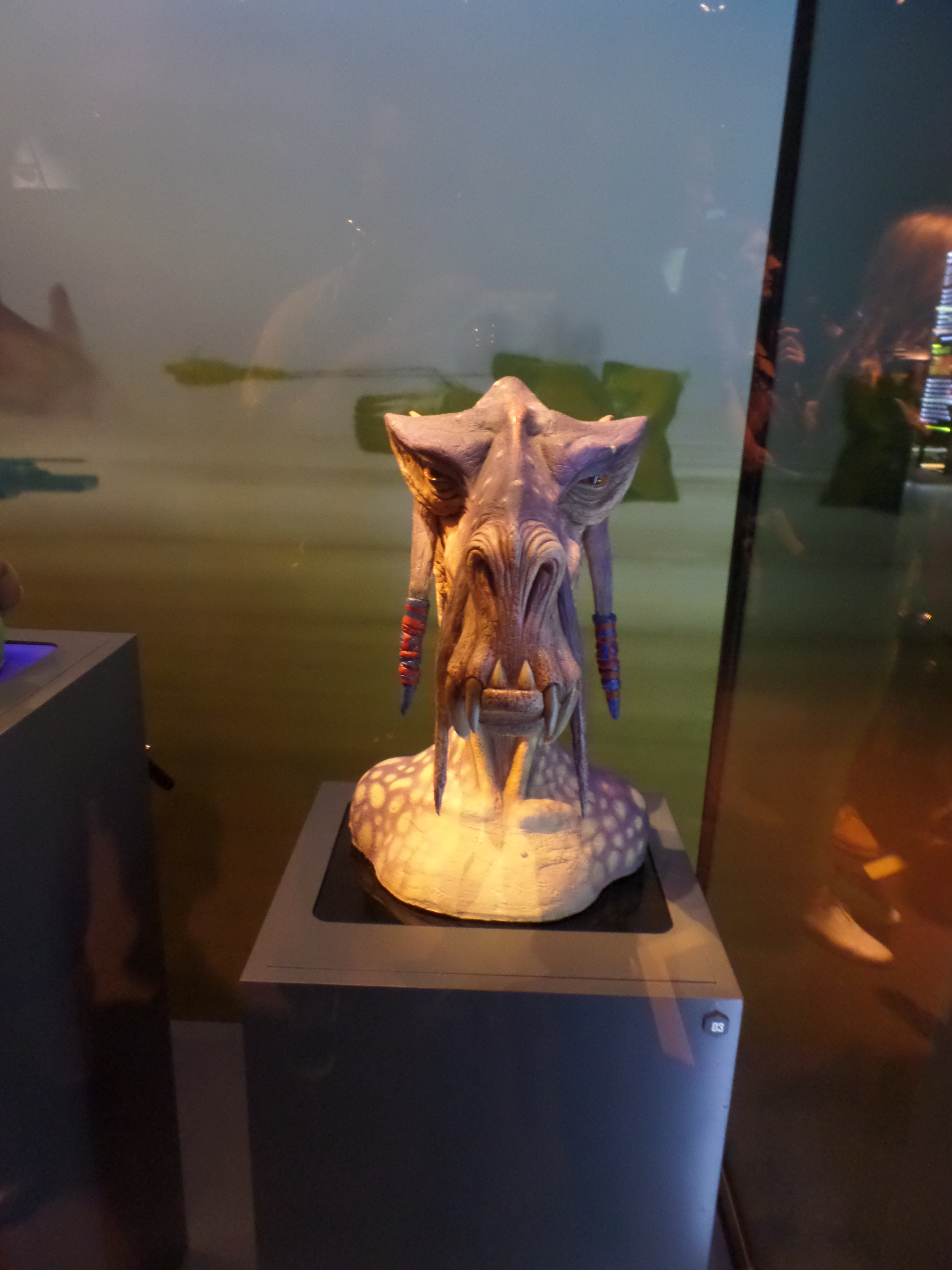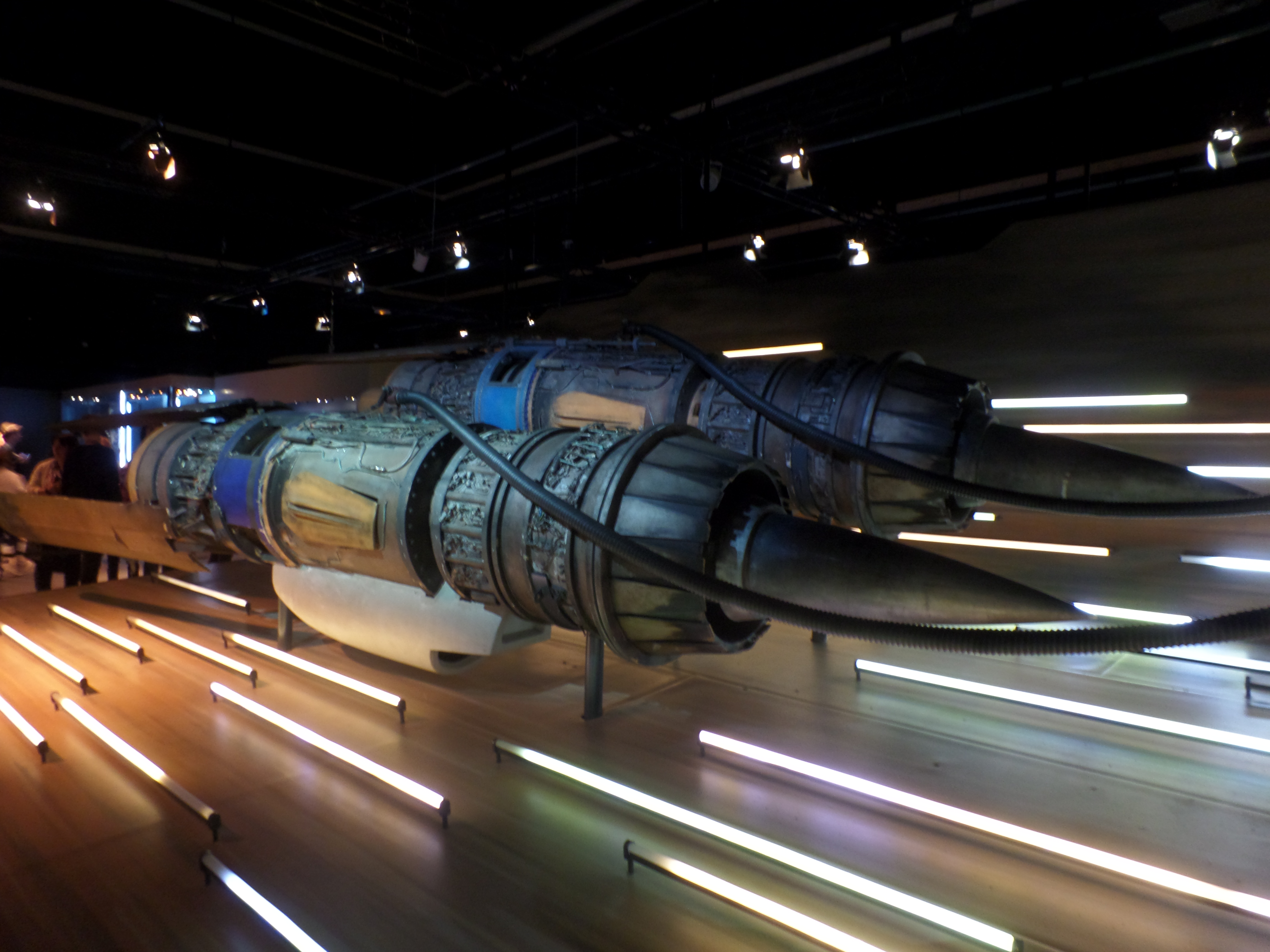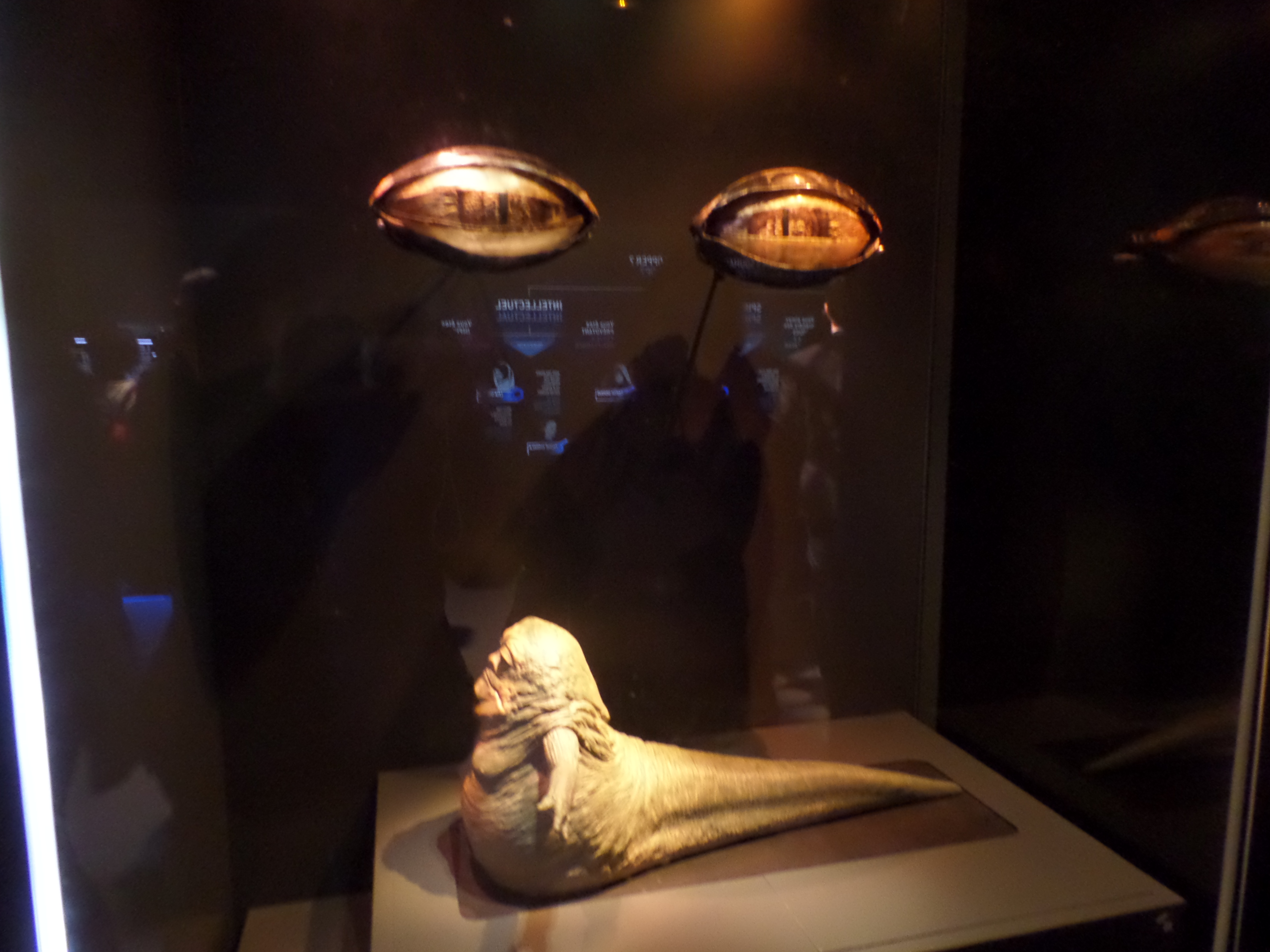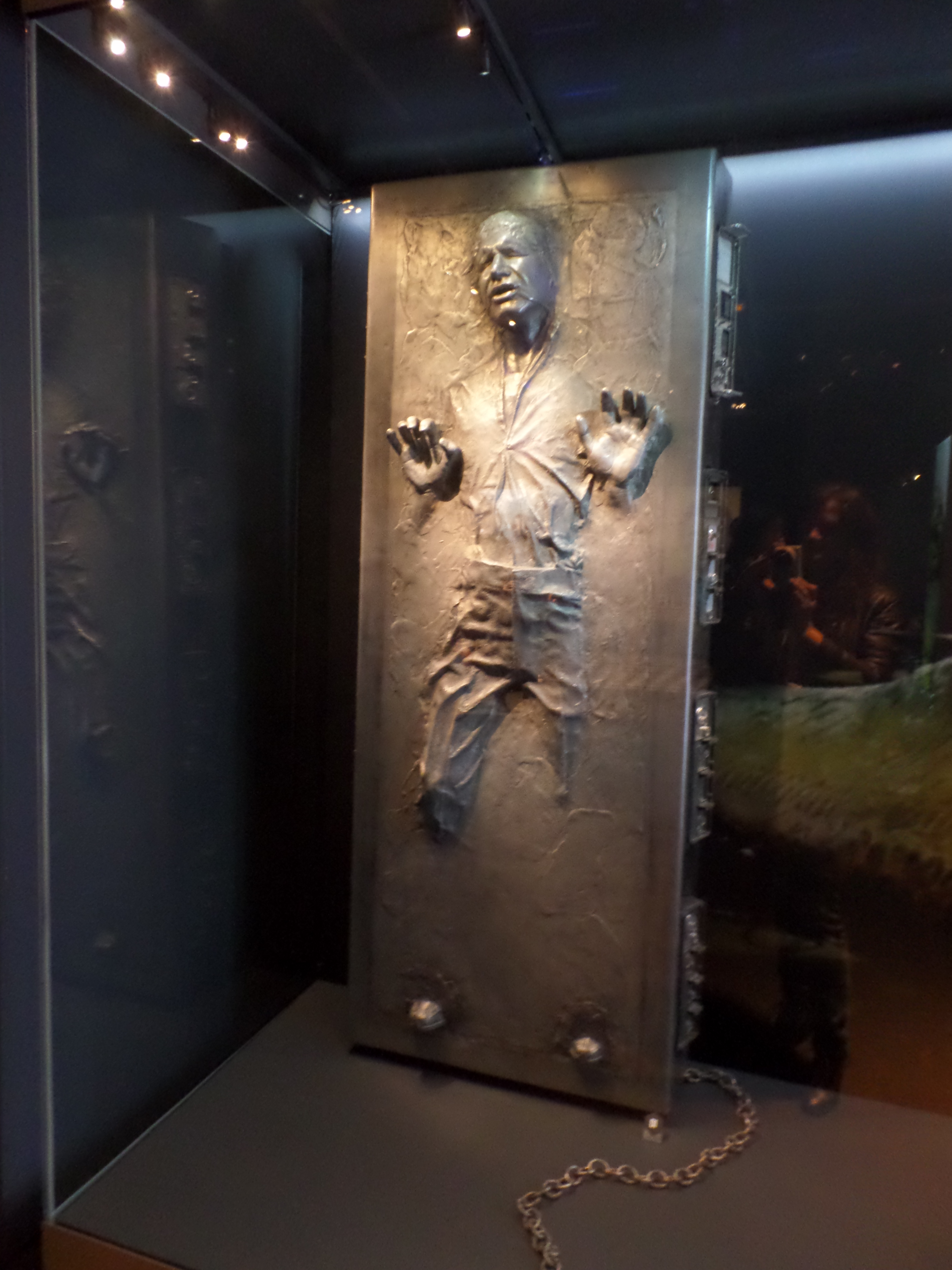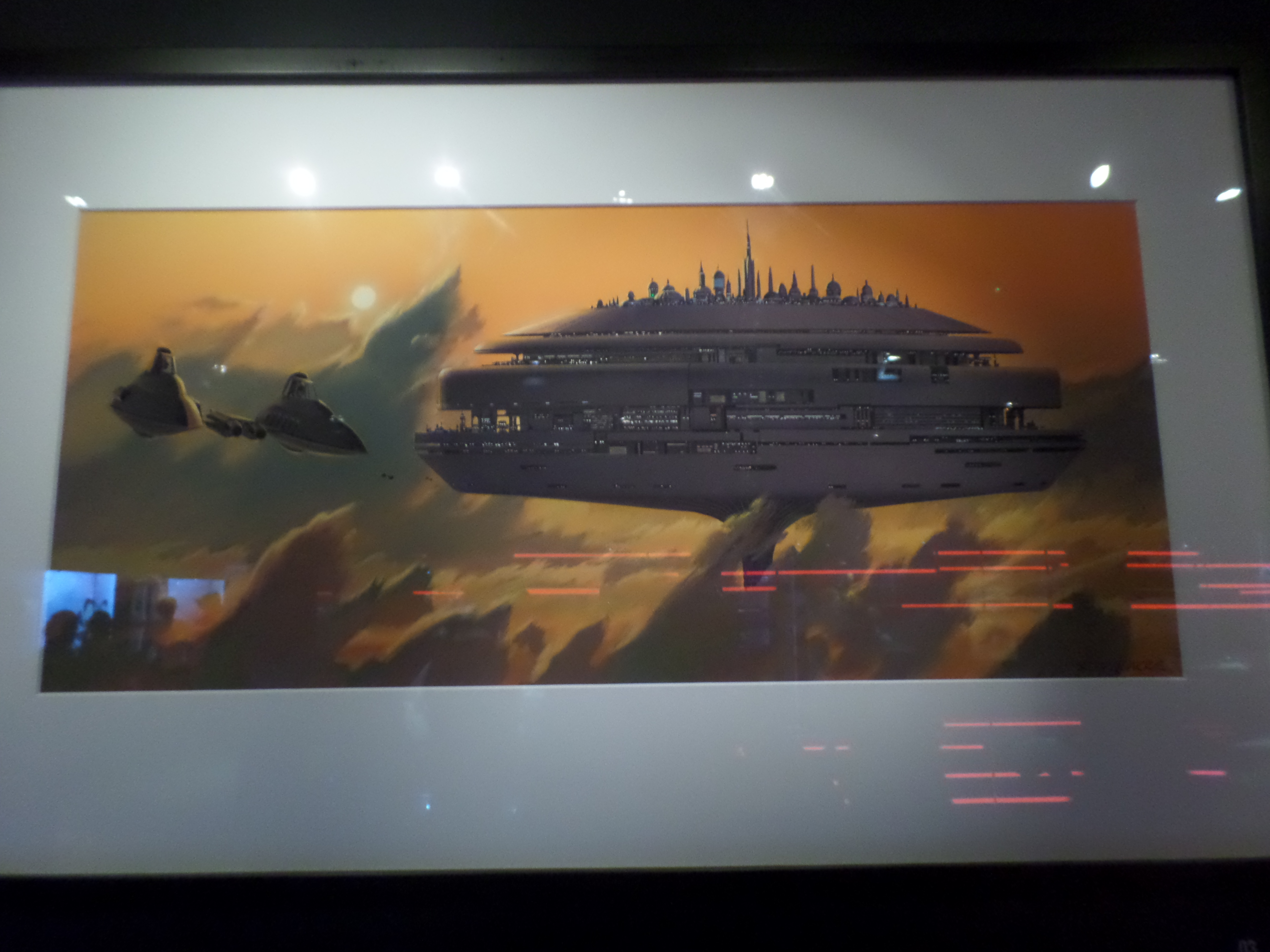 Their friends or foes, their mentors are all there, through costumes, settings drawings or extract of movies : Han Solo and his Millenium Falcon, Yoda, R2D2, C3PO, Chewbacca, Boba Fett, Princess Leia and Queen Amidala, Jar Jar Bings , the soldiers… Of course, the costume and mask of Darth Vader are also exposed,
