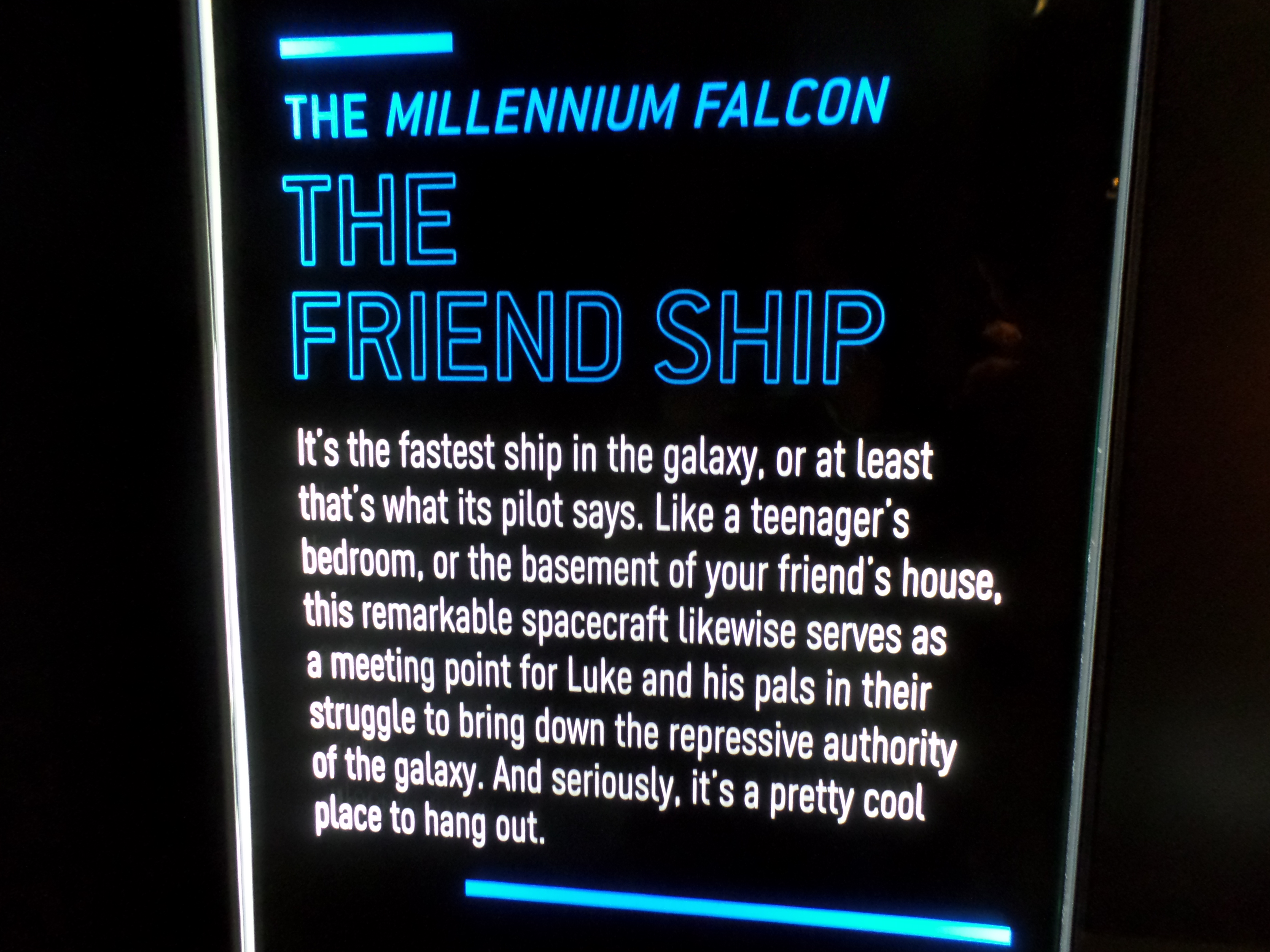 L’expo est plutôt construite au tour de Luke et Anakin Skywalker, père et fils, de leur évolution au fil du temps. Les événements, les valeurs, leur choix et leurs rencontres essayent d’expliquer pourquoi ils sont devenus 2 êtres si différents à leur âge adulte même si leurs origines sont les mêmes.