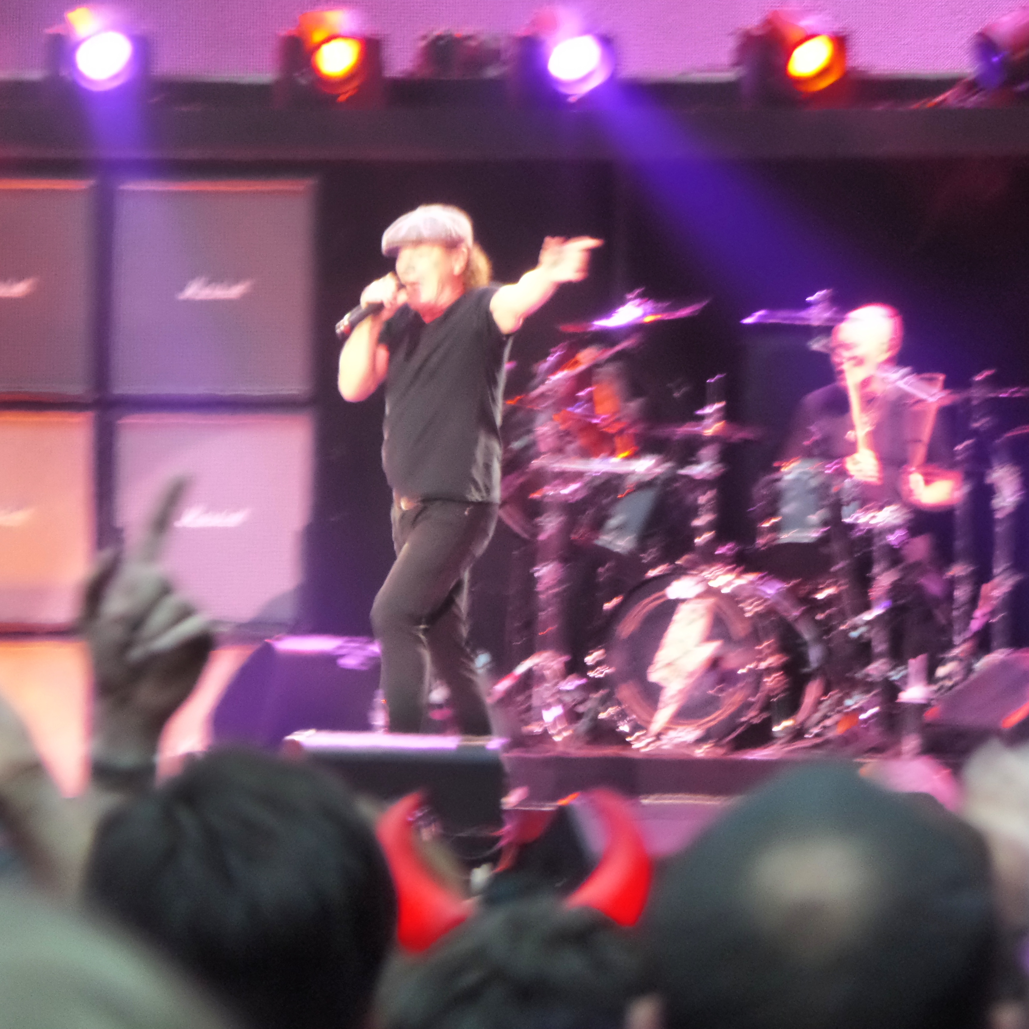 Brian Johnson, the other show man, has not changed neither, always in black, with his inevitable hat, his high-pitched amazing voice is obviously very in shape, not a wrinkle at the horizon. He is running all the time, jumping and dancing, he is spending good time, show his passion, his energy.