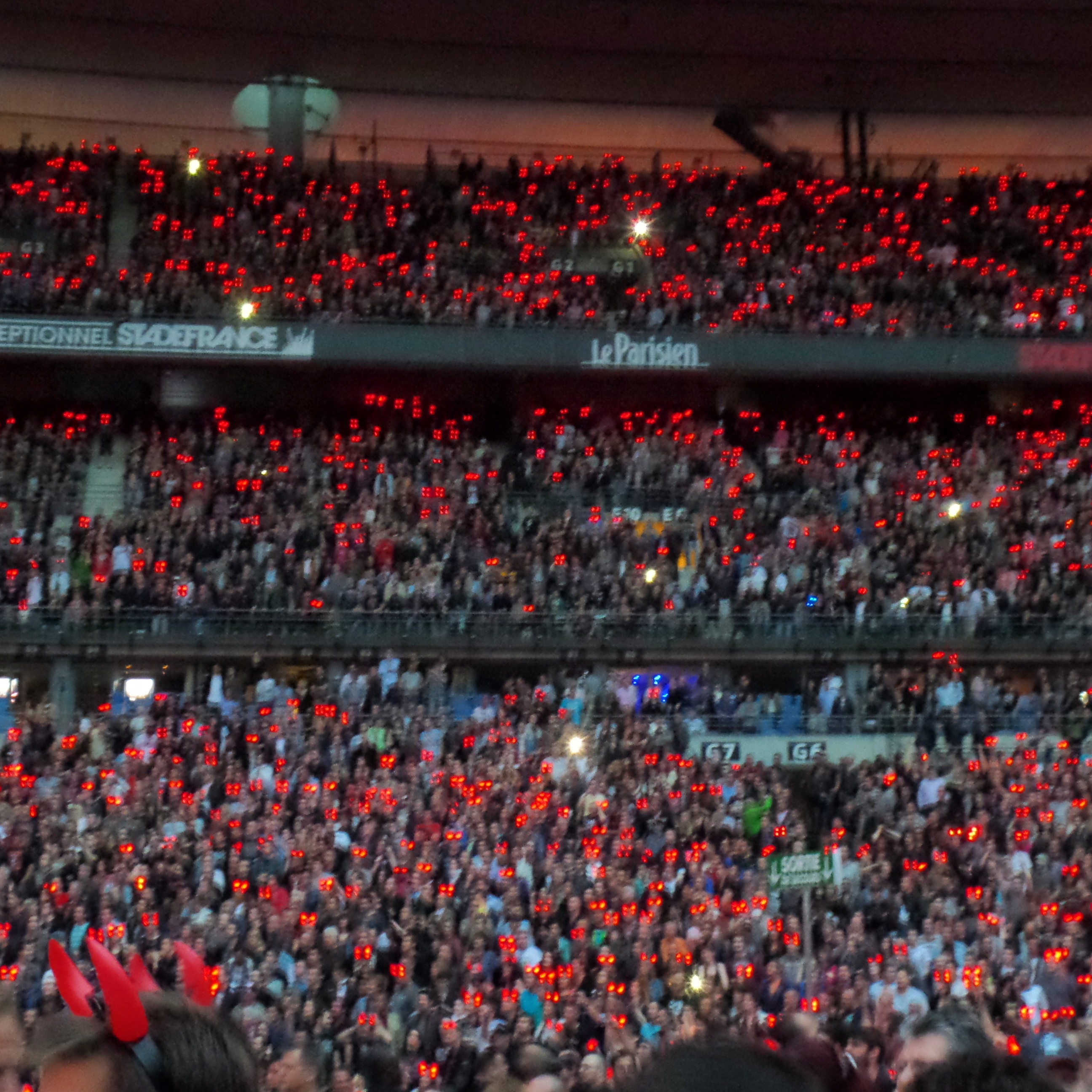 Samedi soir, le Stade de France était archi plein. Des milliers de têtes couronnées de petites cornes rouges clignotants s’étaient donné RDV pour voir les vétérans d’AC DC.