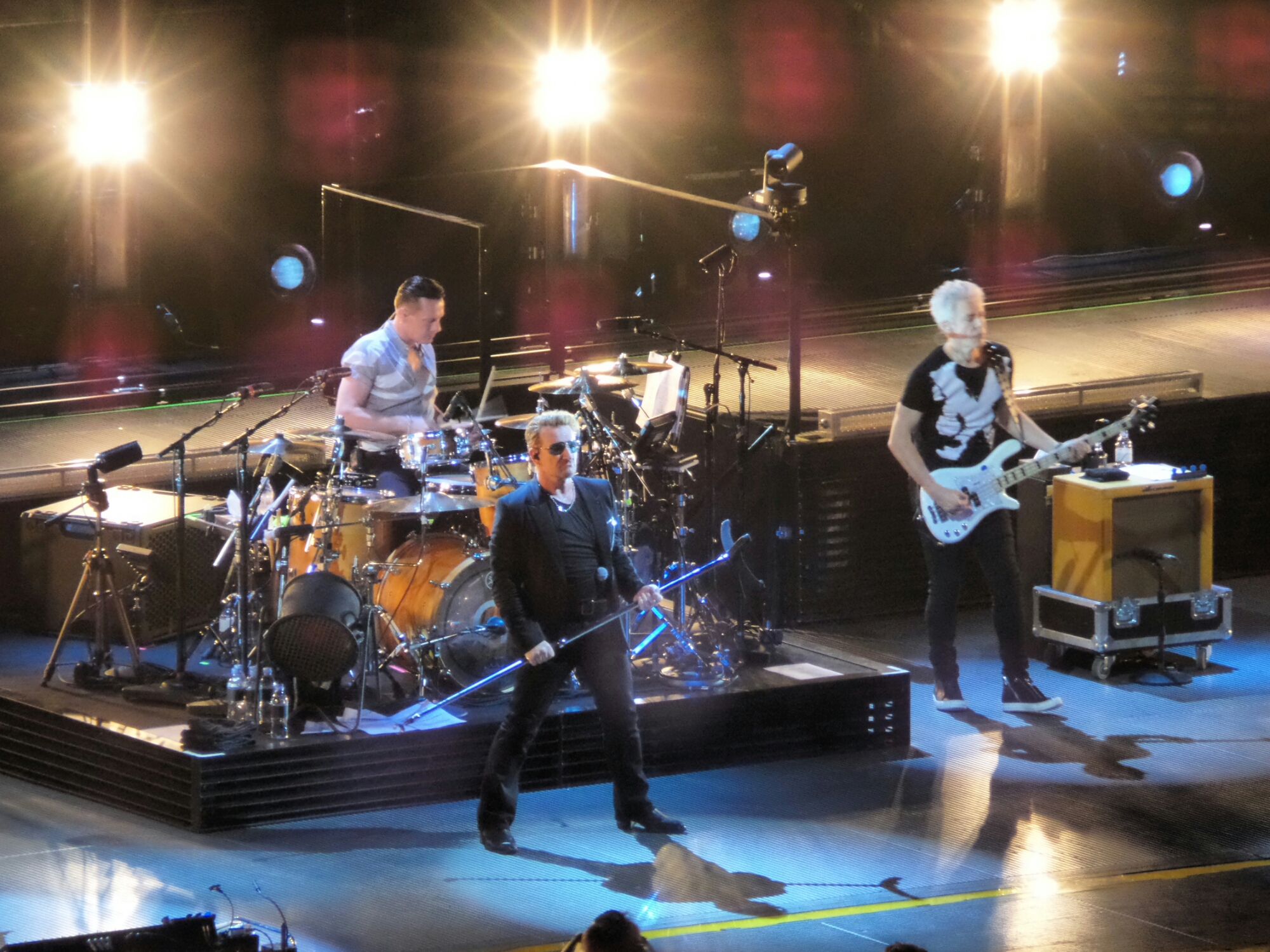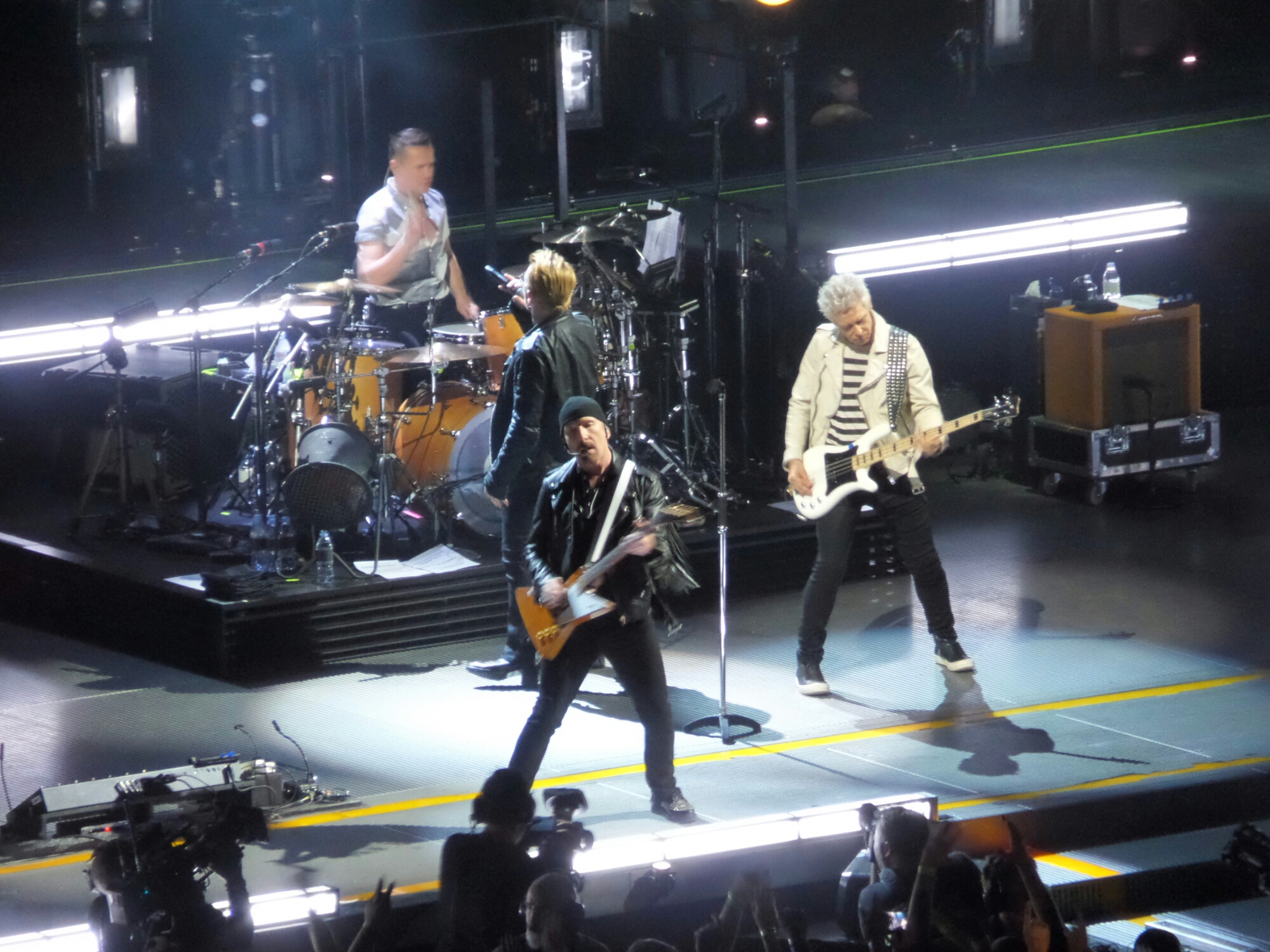 One chanté avec le public,The Fly, Until the end of the world, Mysterious ways, With or Without you, Where the streets have no name, Pride, Every breaking Wave chanté avec The Edge au piano, Raised by Wolves, Elevation … Et aussi les jolies dédicaces de Bono à sa mère avec Iris et à sa femme avec Song for Someone.