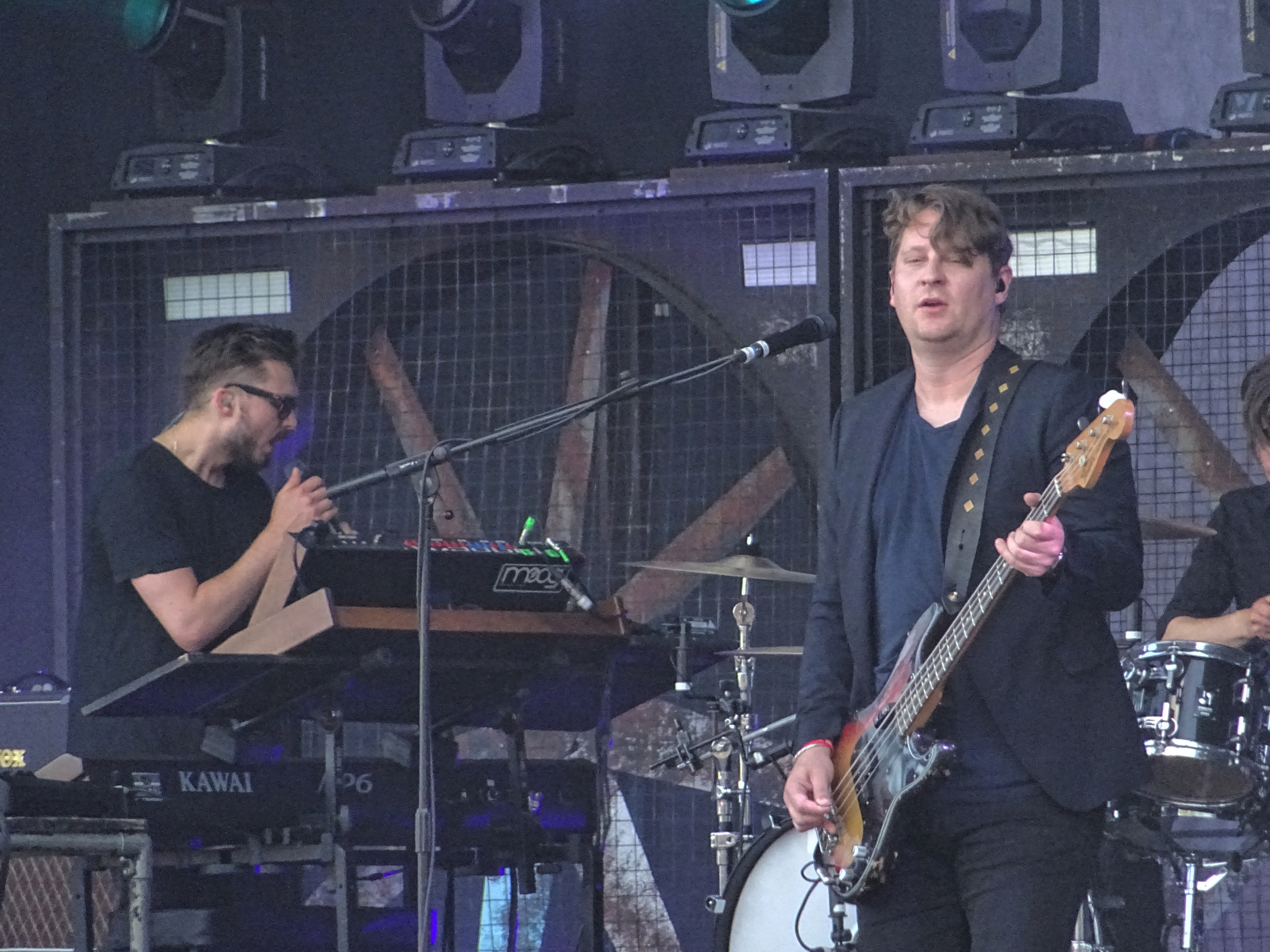 Dimanche, sirènes, 5 énormes ventilateurs (les chanceux) et beaucoup de fumée, les Editors nous ont embarqué dans un show dément sous un soleil brulant et radieux. Guitares puissantes mélangés avec de son électronique, rythmes rapides suivi de plus calmes. Un excellent Tom Smith au piano et à la guitare, une voix impeccable. Un show brillant mais bien trop court évidement : Sugar, Papillon, Munich, The Racing Rats et les nouvelles Ocean of Night ou Marching Orders … j’aurai bien aimée écouter No Harm, All the Kings and Life is a fear … mais bon, on ne peut pas tout avoir.