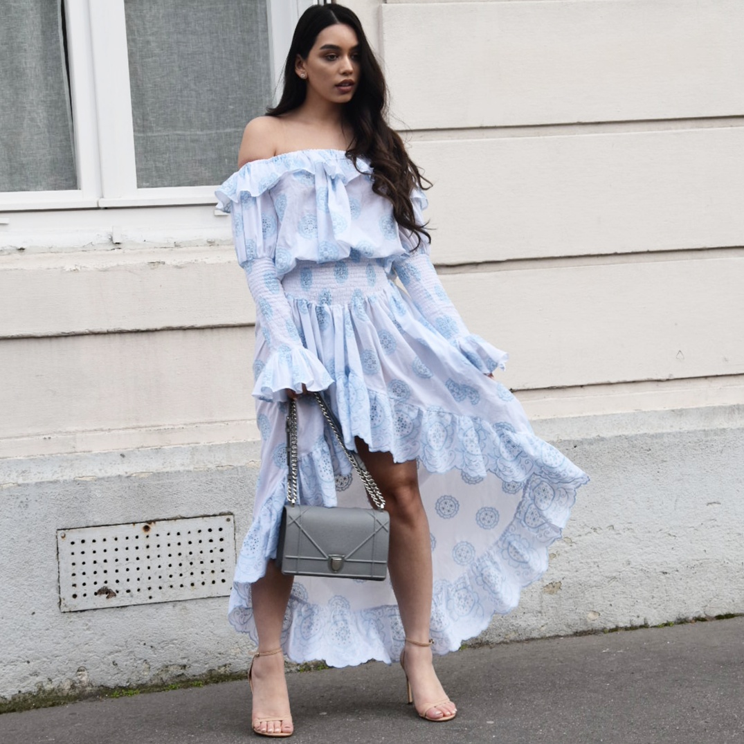 The “off shoulder” or unveiled shouldes.