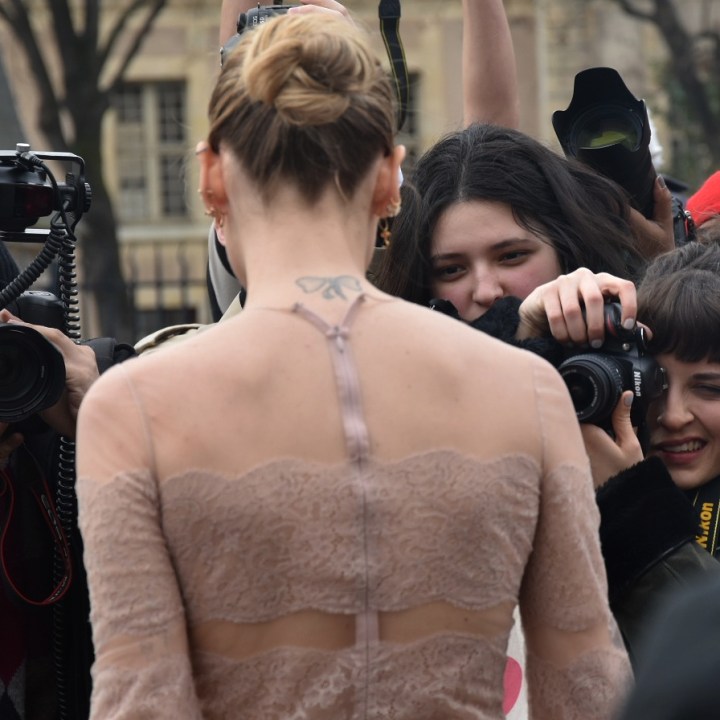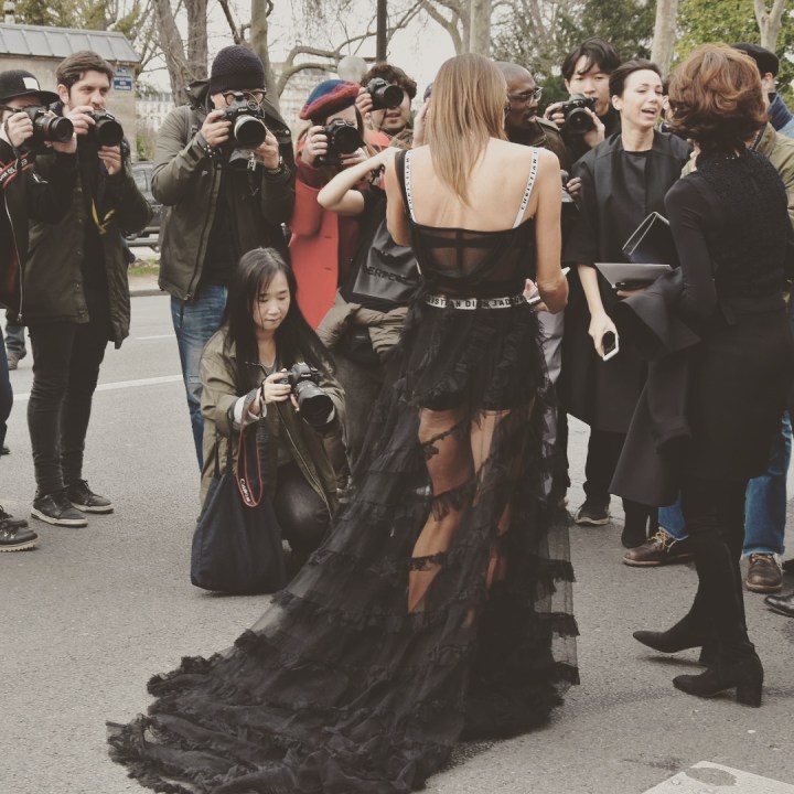 Et comme habitue, à l’extérieur était la bousculade pour apercevoir les nouvelles stars des réseaux sociaux, les it girls, les mannequins et prendre le pouls des tendances mode du printemps.