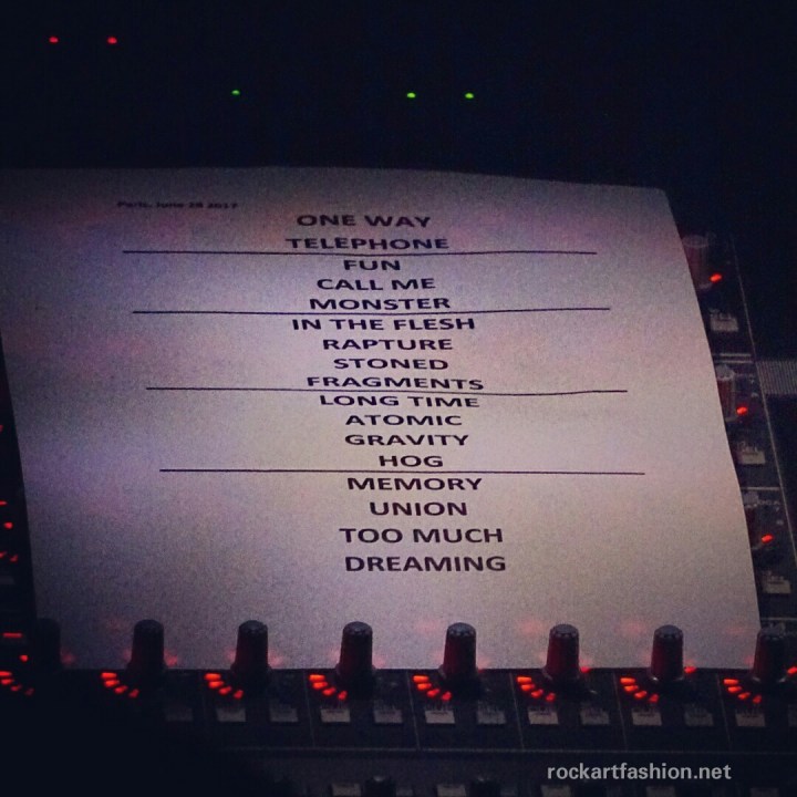 Après un début en trombe avec “One way or another“, leur grands hits incontournables retentissent un après lautre : Call Me, Rapture, Atomic, Heart of Glass mixés avec les récentes Fun, Long Time, Gravity or Too Much. Des covers sont présents également comme lultra connu Hanging on the Telephone de The Nerves.