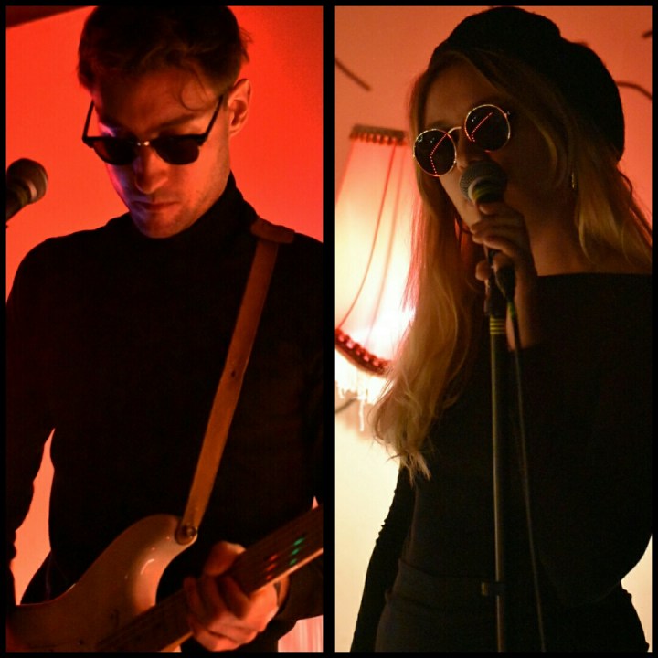 Small stage, cosy red light, Carré Court letters in the background, lamps and amps vintage – an underground perfume – the duet arrives around 10 p.m. in front of an impatient audience.