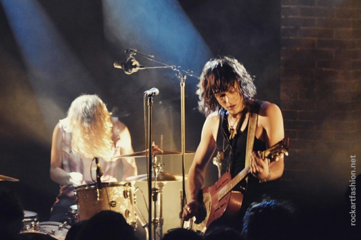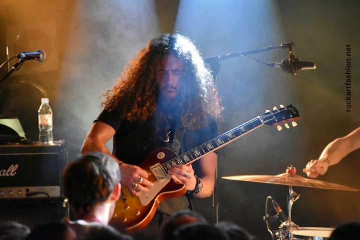 Tyler bouge avec grâce et assurance, s’agenouille, joue carrément au nez du premier rang : riffs ravageurs, implacables, parfaits et bien dosés. Il changera plusieurs guitares au cours de la soirée et toutes ont l’air de prendre vie entre ses mains. Vibrant. Talent et expérience. Sa voix est superbe et retentie clairement dans la petite salle.