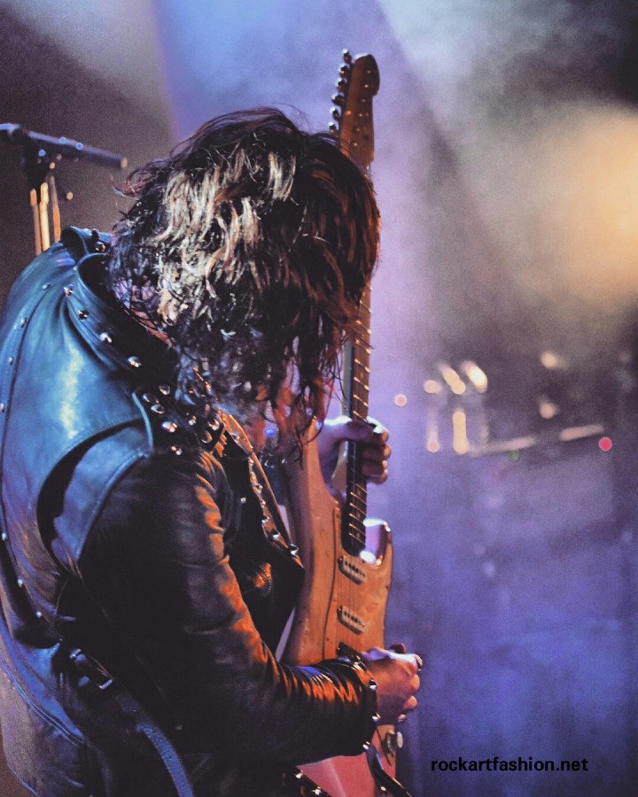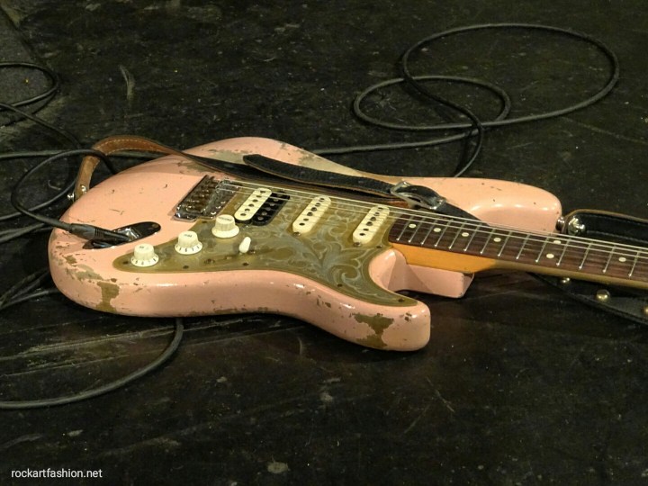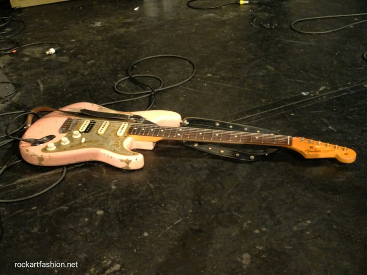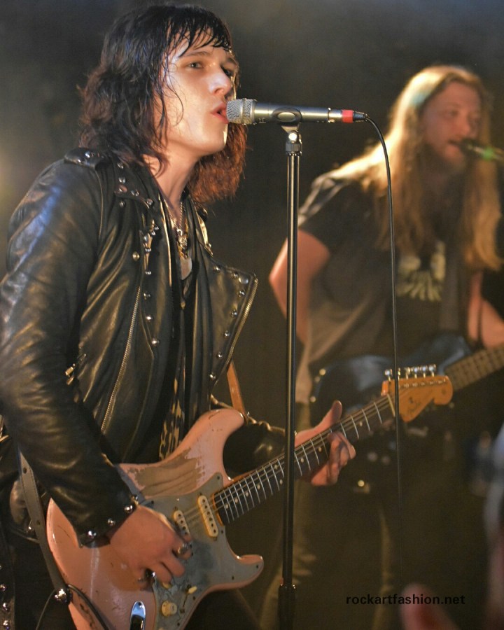 Tyler Bryant, the frontman, rad in his leather jacket, black slim and awesome boots is accompanied by his favourite Fender pink guitar scratched and used up to wood – sign of all that love and affection received during the years.
