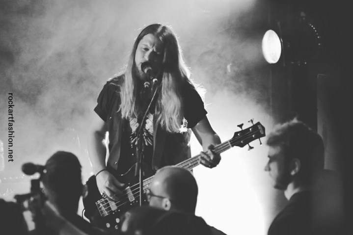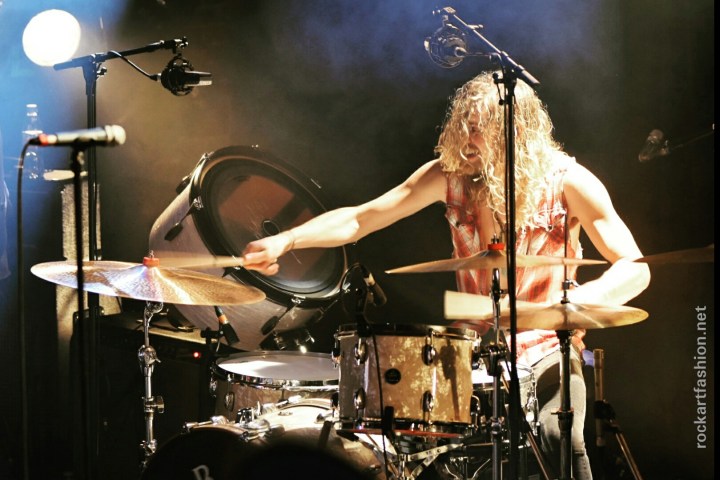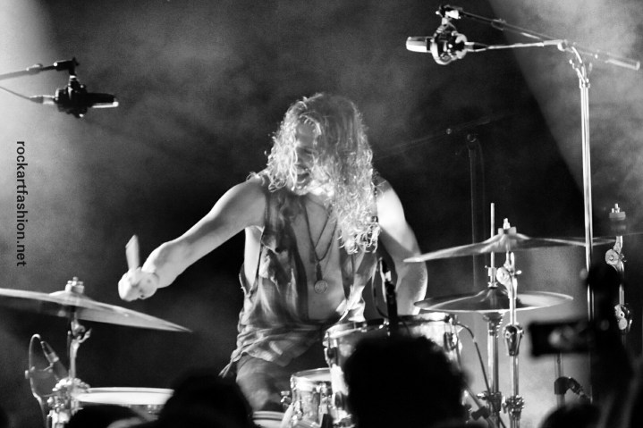 Caleb Crosby à la batterie, frappe fort et bien dans ses kits, sourit et balance sa chevelure blonde en headbanging constant. La complicité avec Tyler est flagrante. Ils se suivent et se complètent à merveille.