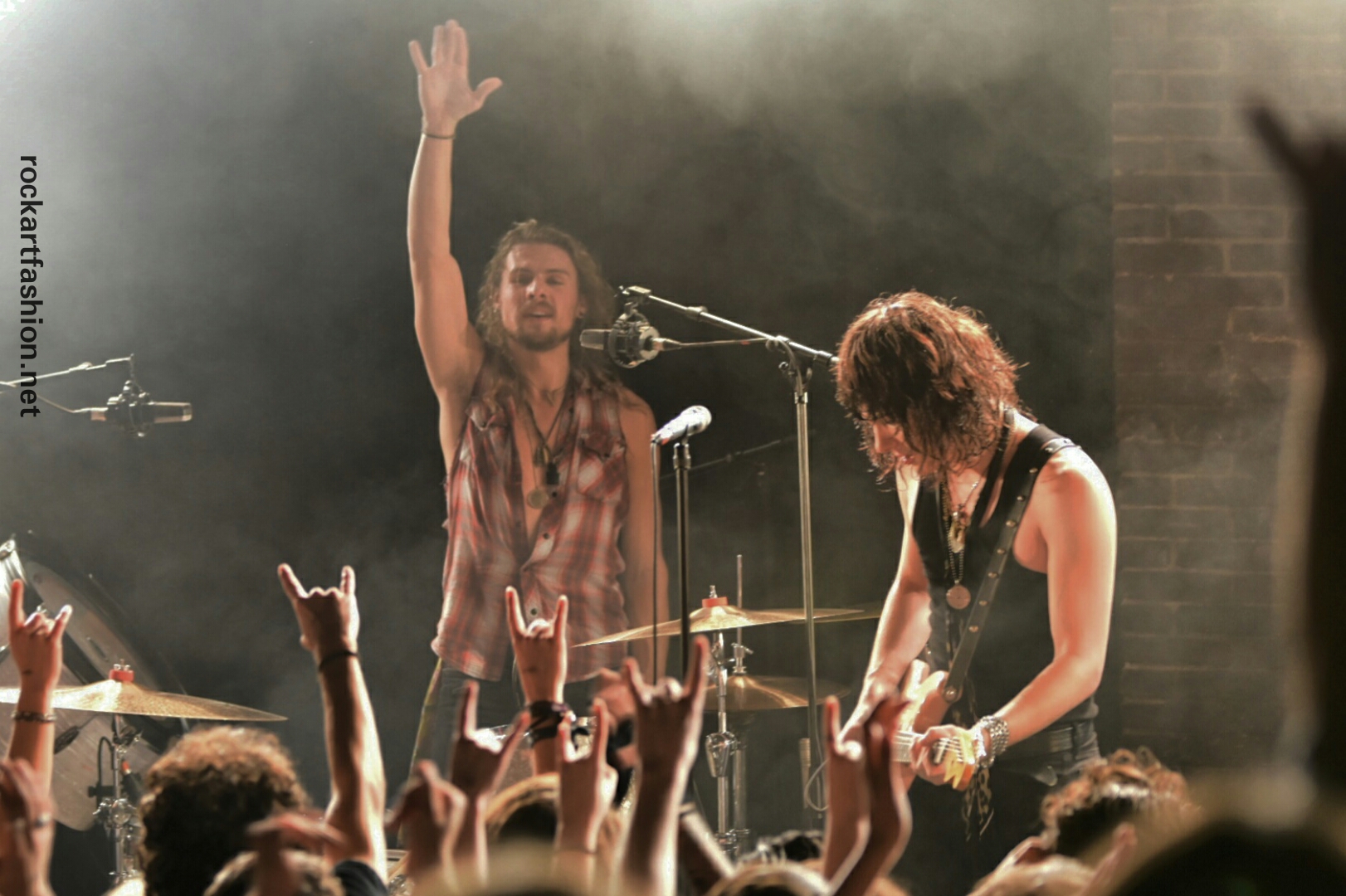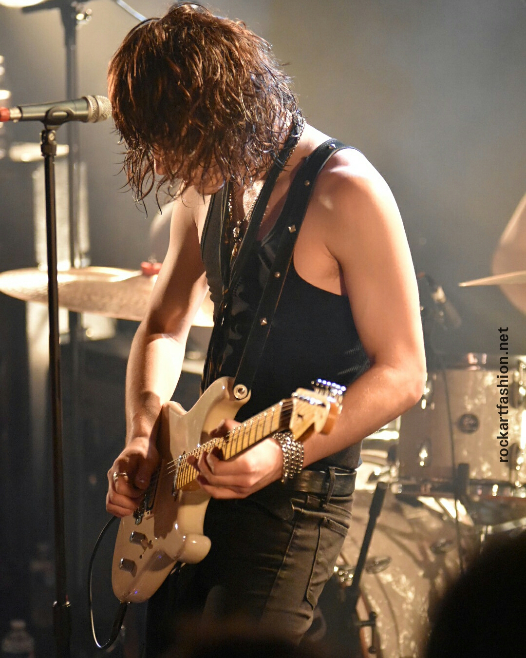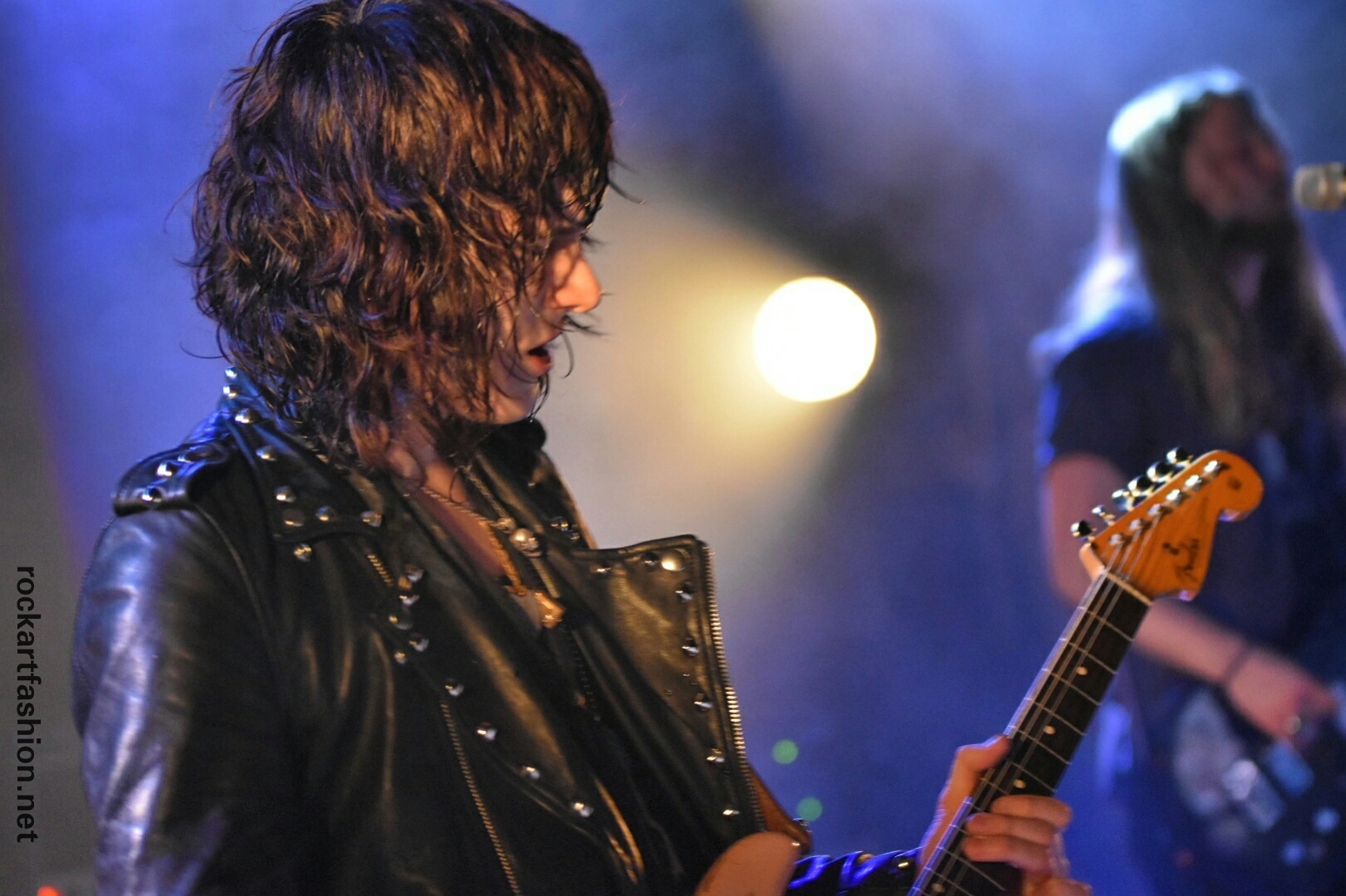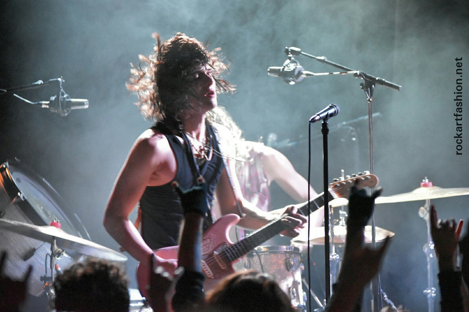 Tyler Bryant, the frontman, rad in his leather jacket, black slim and awesome boots is accompanied by his favourite Fender pink guitar scratched and used up to wood – sign of all that love and affection received during the years.