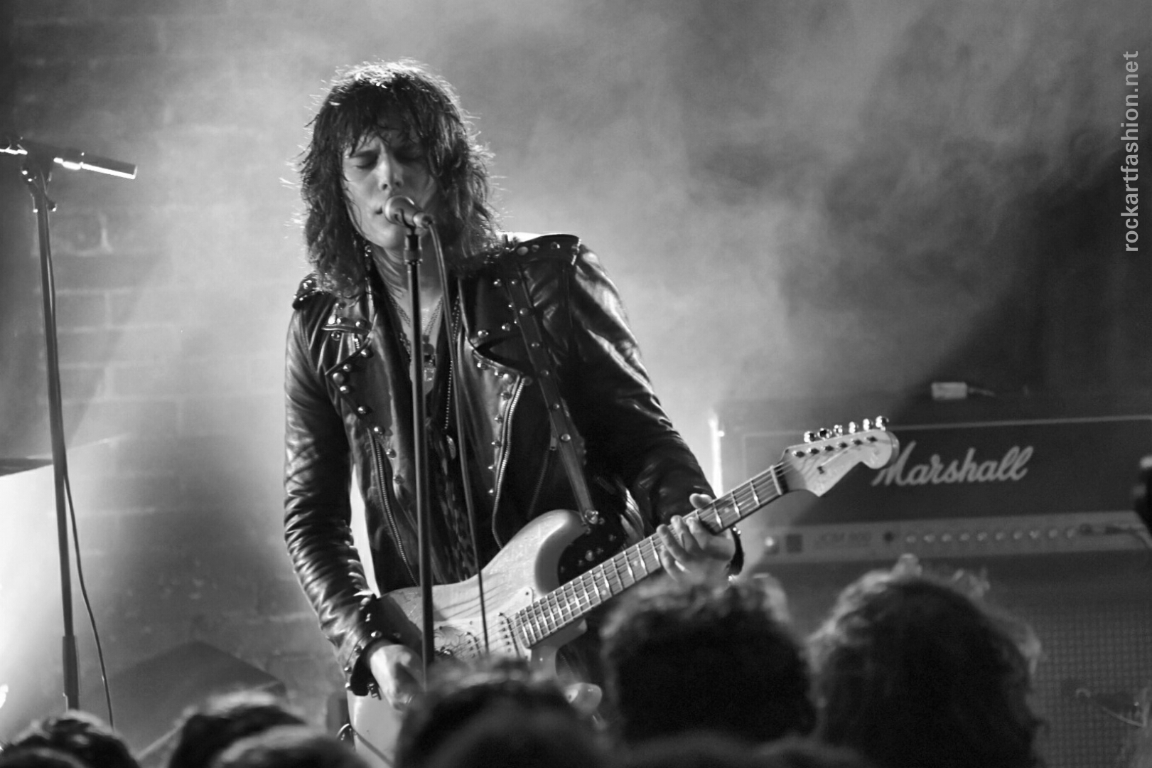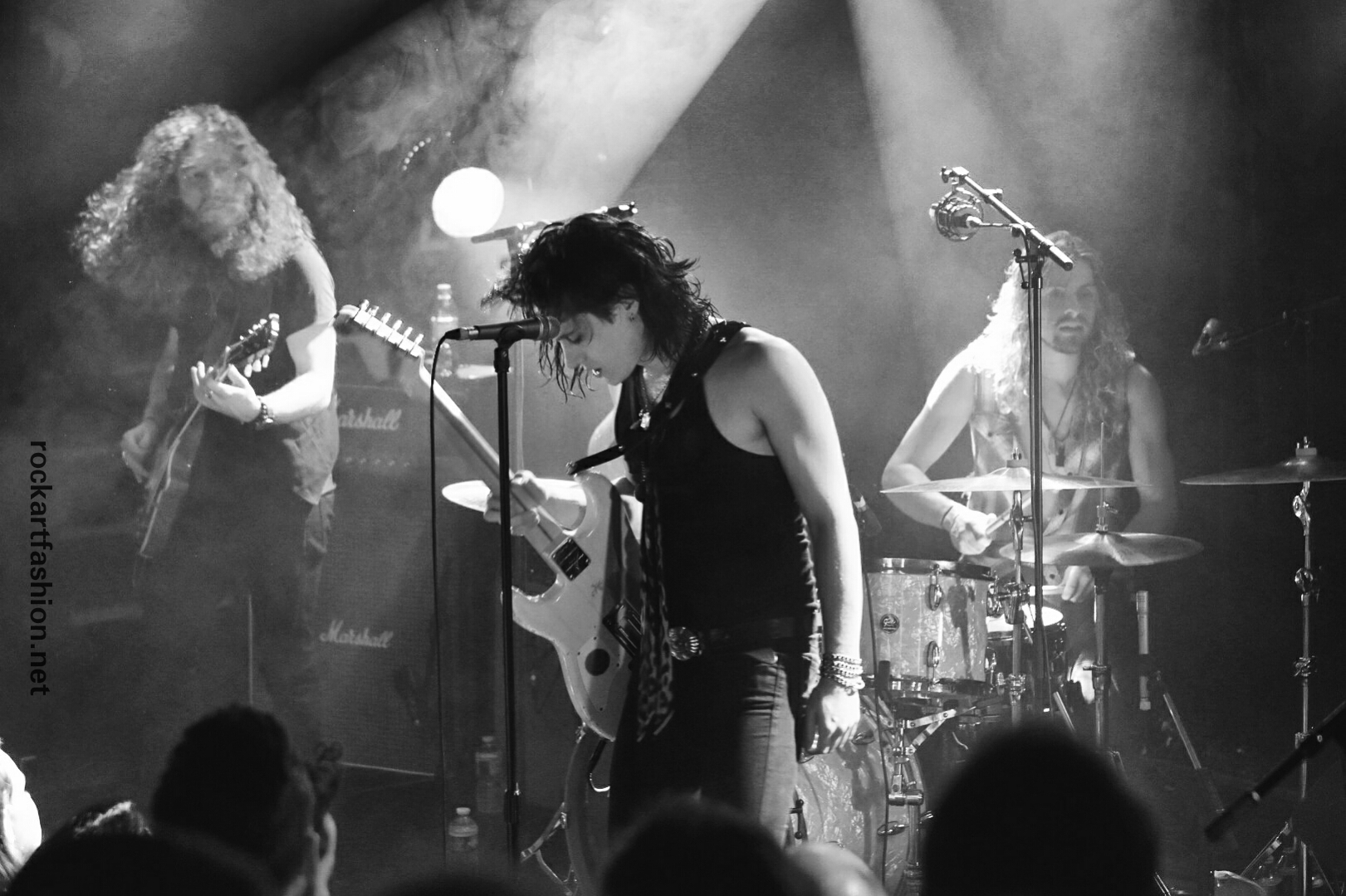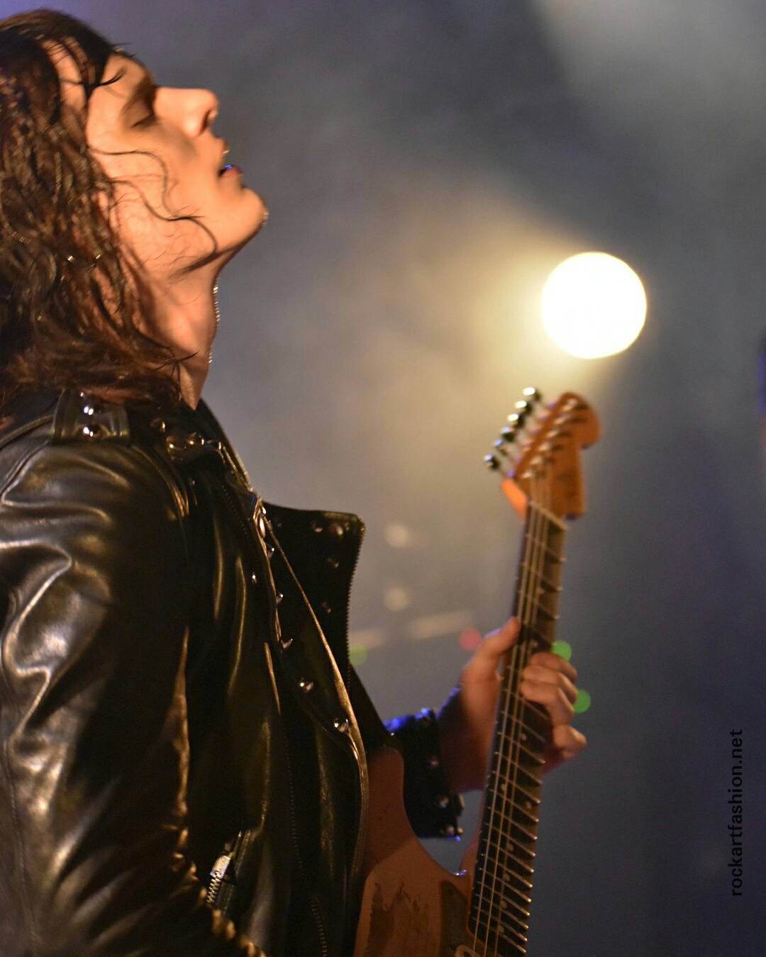 Tyler bouge avec grâce et assurance, s’agenouille, joue carrément au nez du premier rang : riffs ravageurs, implacables, parfaits et bien dosés. Il changera plusieurs guitares au cours de la soirée et toutes ont l’air de prendre vie entre ses mains. Vibrant. Talent et expérience. Sa voix est superbe et retentie clairement dans la petite salle.