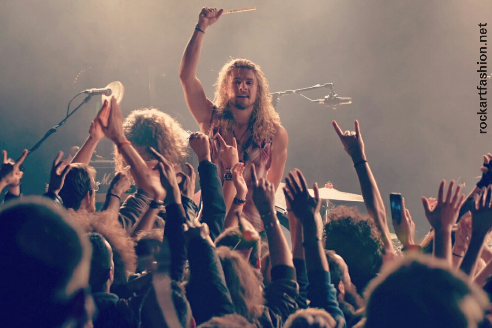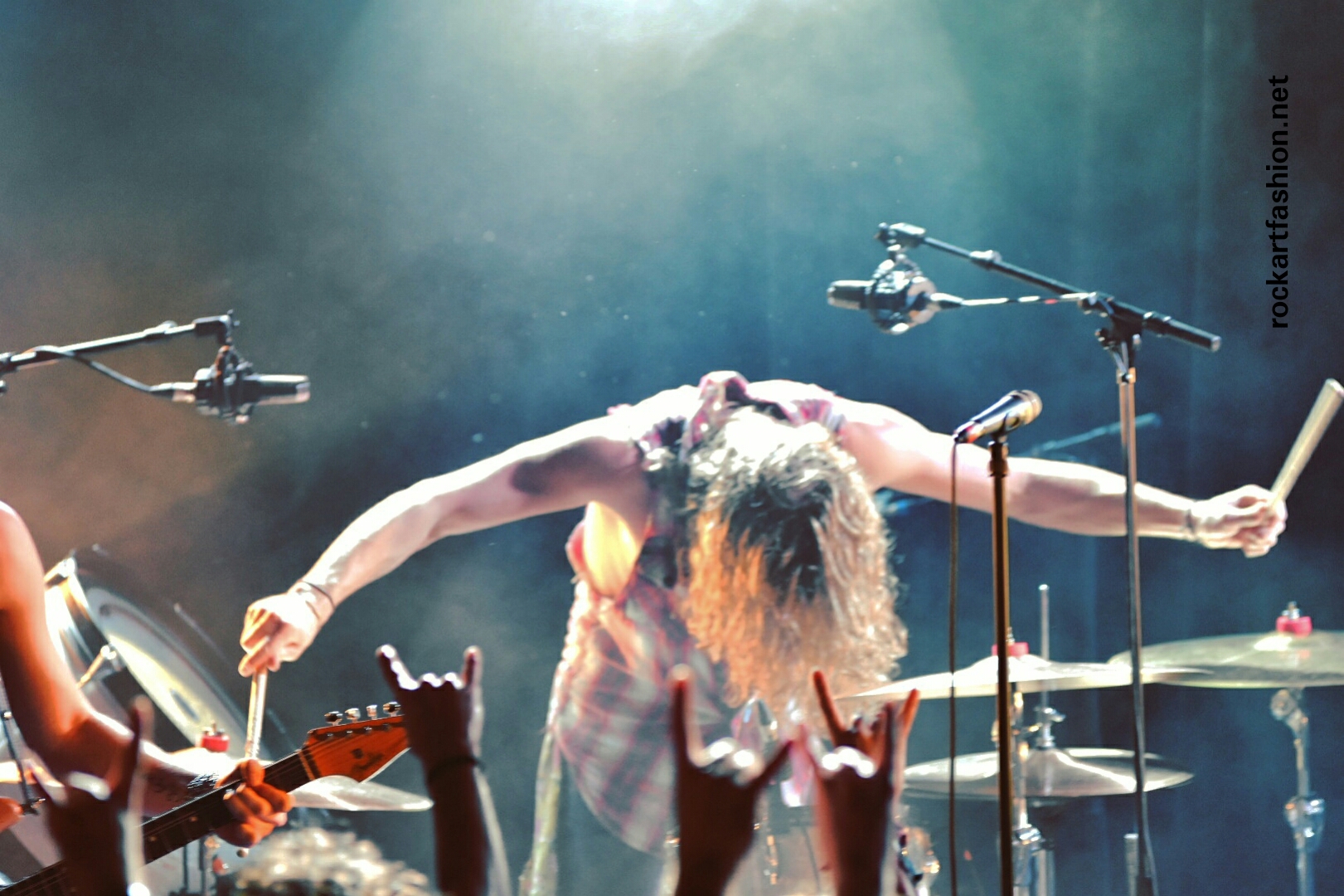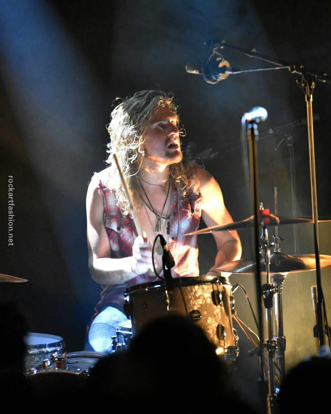 Caleb Crosby à la batterie, frappe fort et bien dans ses kits, sourit et balance sa chevelure blonde en headbanging constant. La complicité avec Tyler est flagrante. Ils se suivent et se complètent à merveille.
