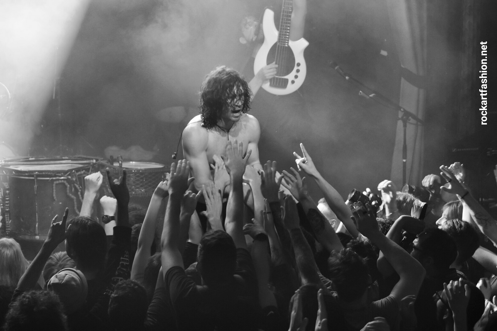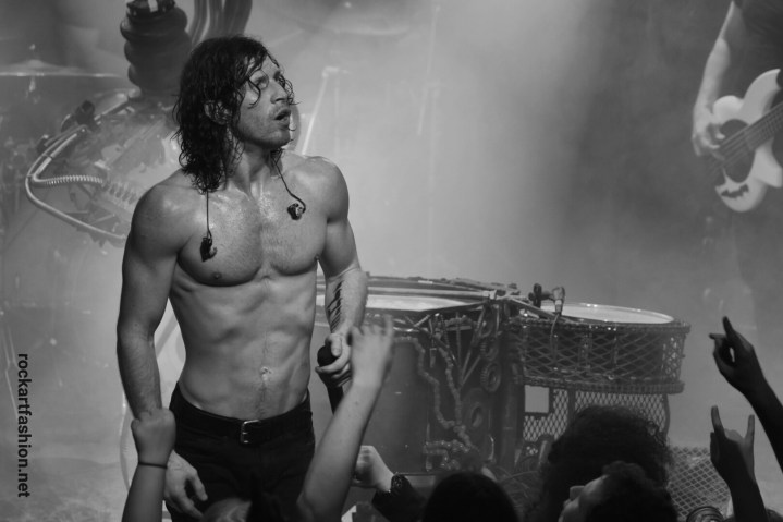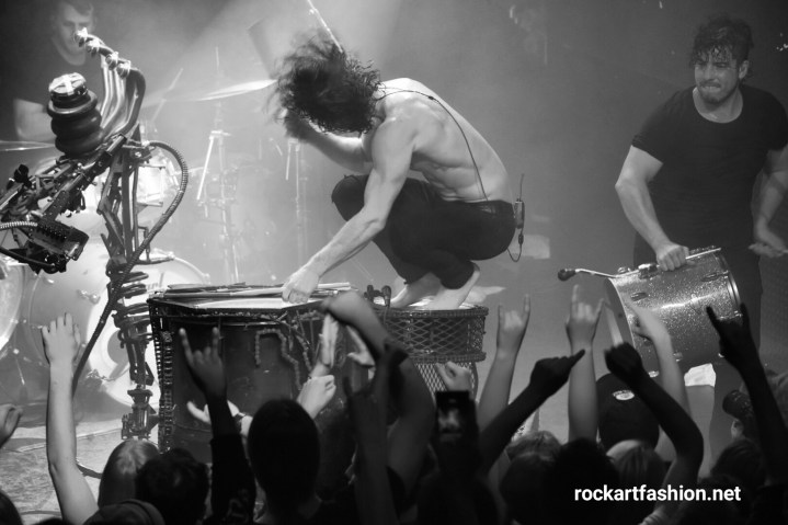 The front man, Jonny Hawkins, shirtless and barefoot, his usual outfit, takes the stage with passion and hit hard with frenzy in his drums. Let them Burn is burning out, Don’t stop, Mr Mtv, Ripping Me Apart, Go to War -metal, rock, electro, a mix of amazing sounds strong and powerful.