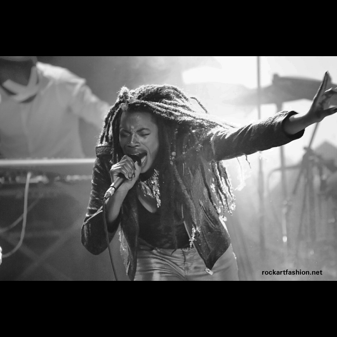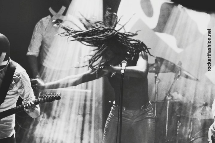 A Me Rendre Folle, le seul titre en français, groovy et sexy, Time avec belle intro au piano et Change Change Change qu’Oma dédie à toutes les filles dans la salle…Mermaid Chant incendiaire, positive vibes, Oma se déhanche, saute sans cesse, ses dreads partent dans des headbanging de folie et I am Thinking of You pour clôturer le show.
