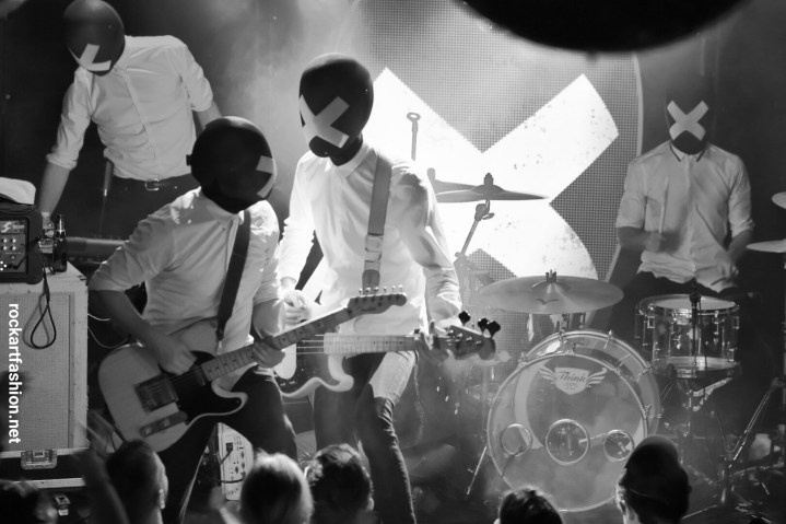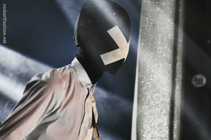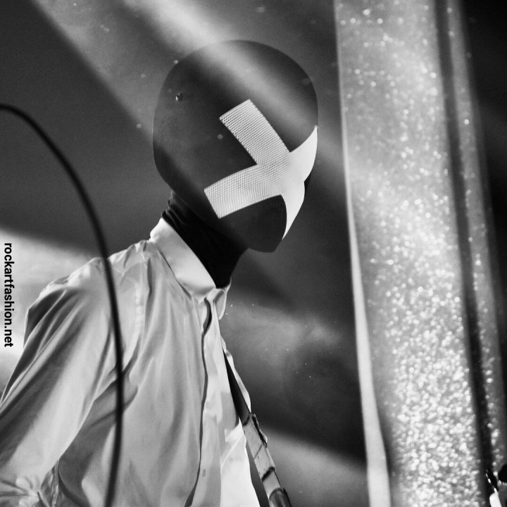 Evidemment, leur masque emblématique était partout : écran lumineux derrière la scène, petits masques en carton ou T-shirts dans le public.