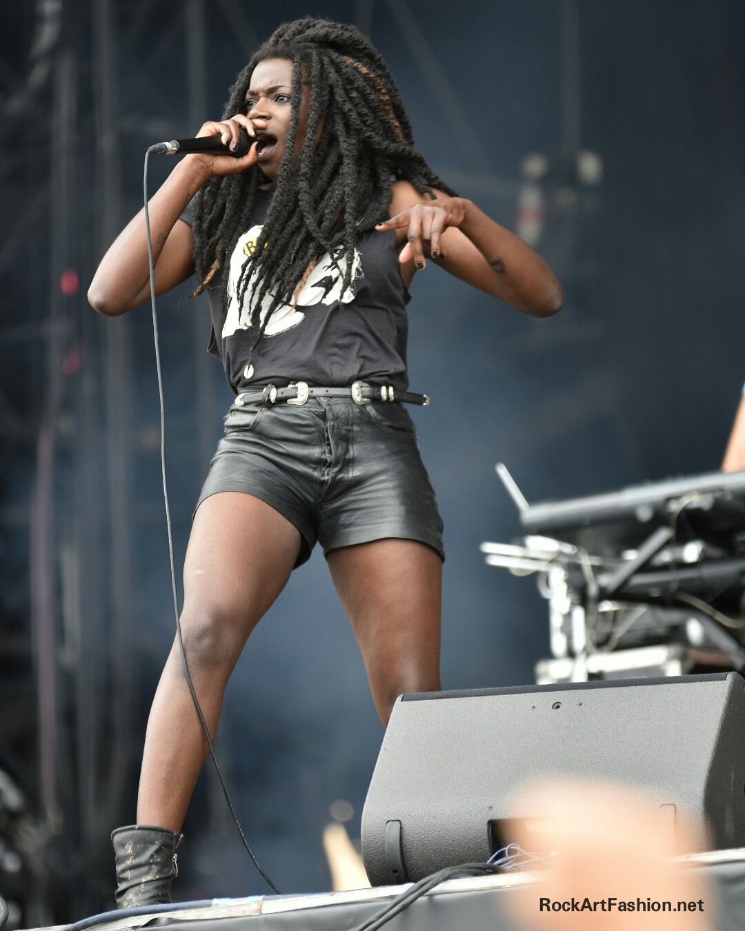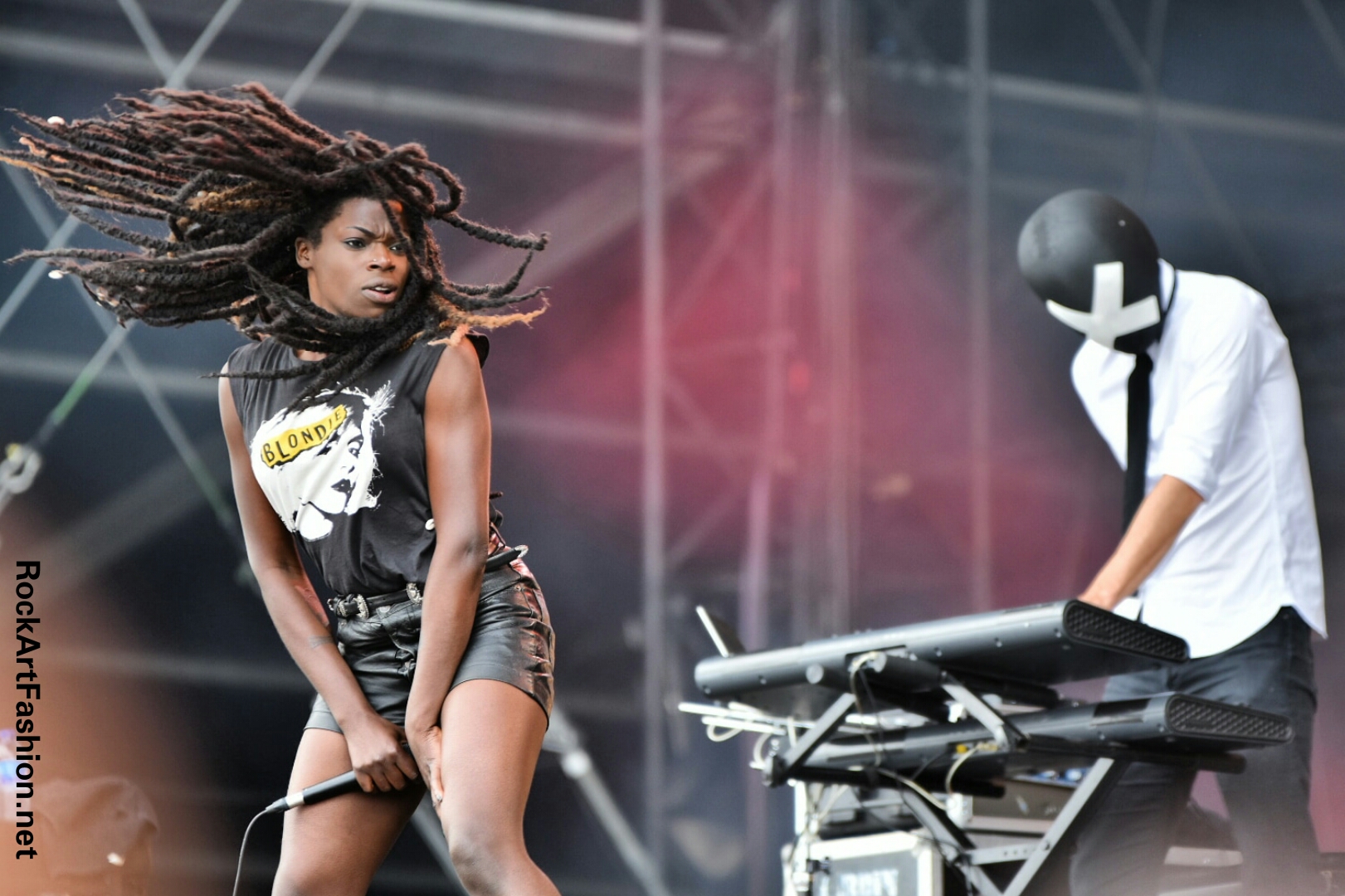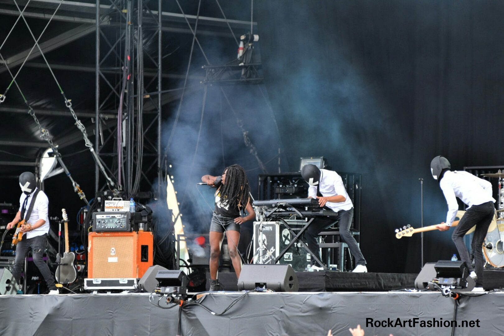 Impressive stage presence of 7 ghouls – 2 guitars, bass, drums, synths, chorus – and their silver masks, there are also wearing elegant black costumes for girls and boys. A unique voice, a powerful and amazing show, a sound between pop and heavy metal, a fantastic gig. One of my favourites of the festival.