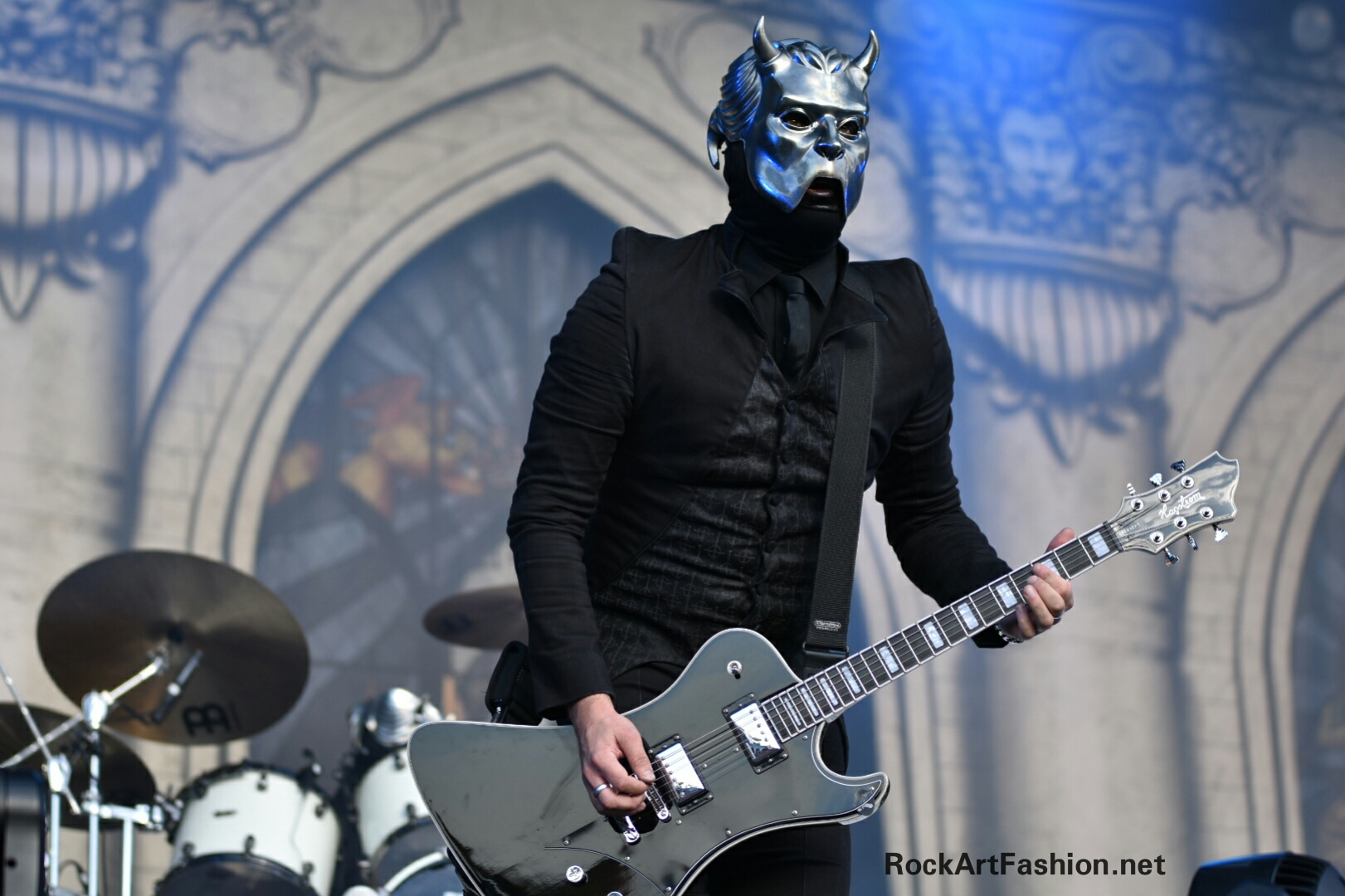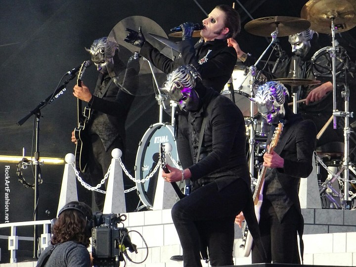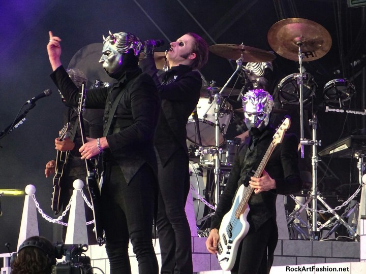 Place à la grande messe de GHOST. Devant la scène aux allures imposante de cathédrale, les suédois sont venus présenter leur nouvel album Prequelle, tout fraichement sorti le 1er juin. A l’occasion, les géants du métal dévoilent la nouvelle incarnation de leur chanteur, Tobias Forge en Cardinal Copia, masqué, en costume noir et veste en queue de pie, élégance et théâtralité, son regard et sa curieuse façon de parler font froid dans le dos.