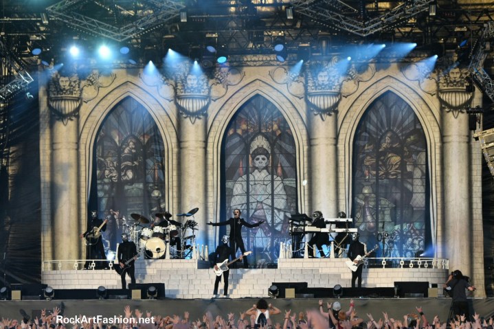 Place to the big mass of GHOST. The stage looks like an imposing Cathedral. The Swedes came to present their new album Prequelle, freshly released on 1st of June. On the occasion, the metal Giants unveil the new incarnation of their singer Tobias Forge in Cardinal Copia who is hidden behind a mask and makeup. He is wearing a black suit, jacket tail coat, elegance and theatricality, his gaze and way of talking chill up our spine.