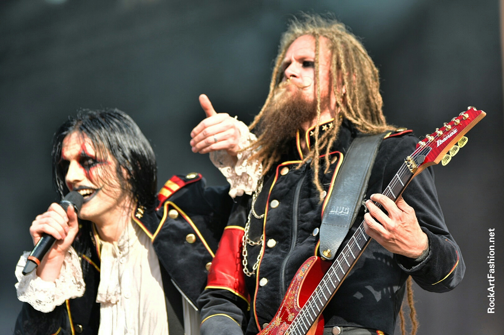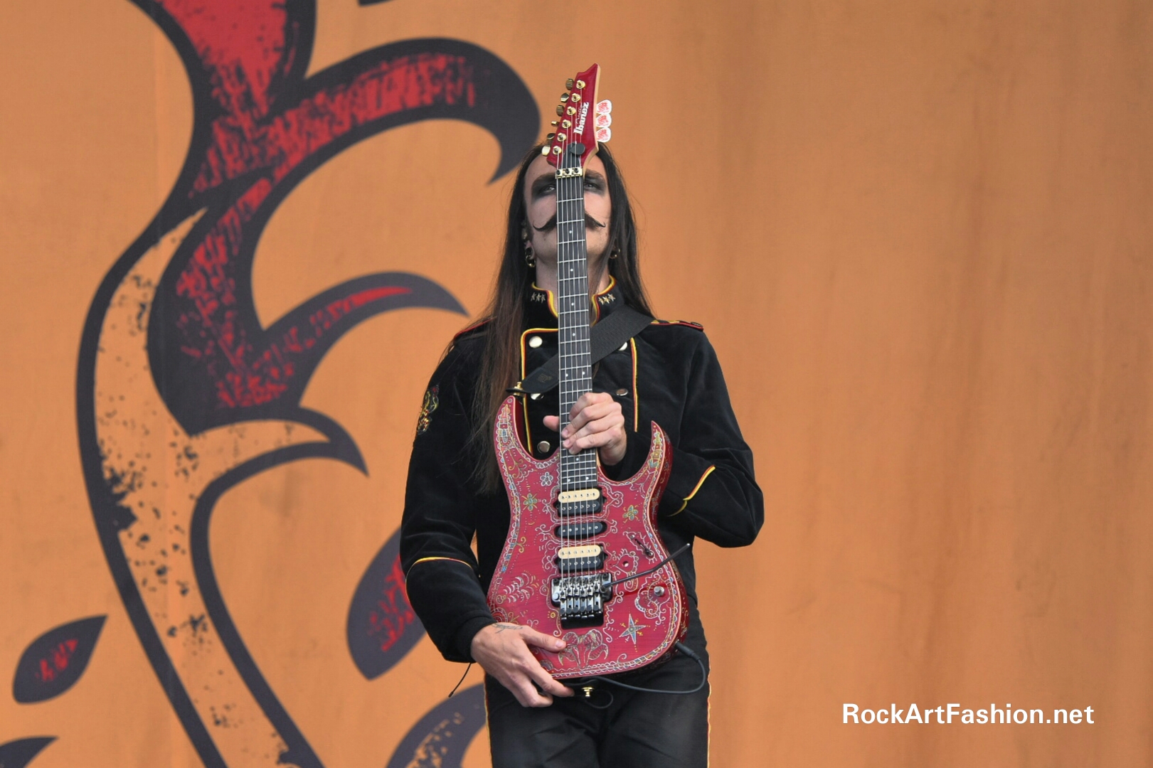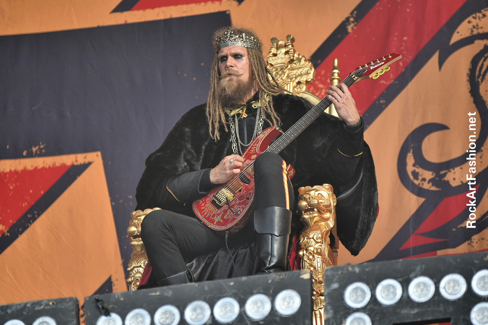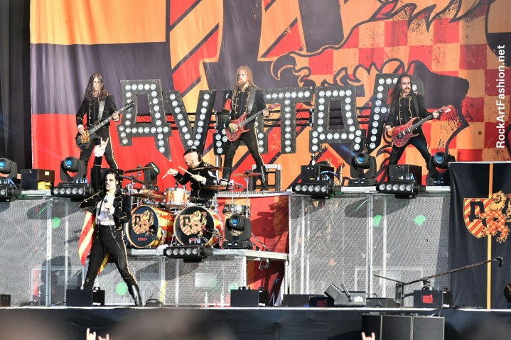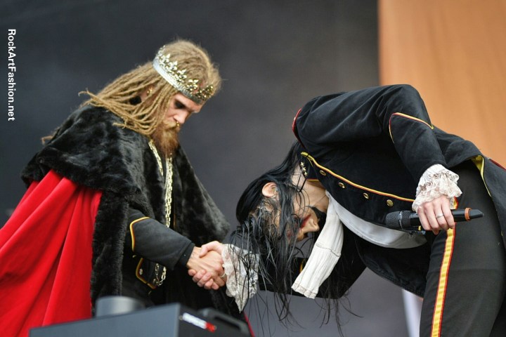 Dans mon agenda suivent les suédois d’AVATAR qui nous invite dans Avatar Country, le titre de leur 7 -ème album. Redingotes militaires inspirés de l’armée suédoise, maquillage smokey à la Kiss et Alice Cooper et style Joker-Clown, pour le chanteur Johannes Eckerstorm. Jonas Jarisby alias The King et ses sujets attirent une grande foule devant la Main stage 2, décoré royalement pour l’occasion en jaune et rouge.