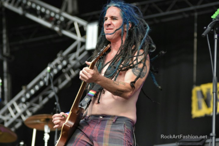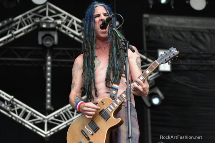 NOFX arrive with their crazy punk rock made in Los Angeles. Fat Mike, pink hair, pink sun glasses and turquoise dress, very chatty and hilarious joined happily by Eric Melvin on guitar. Hits to the program as Murder The Government or Leave it Alone, but also the cover of Champs-Élysées by Joe Dassin.