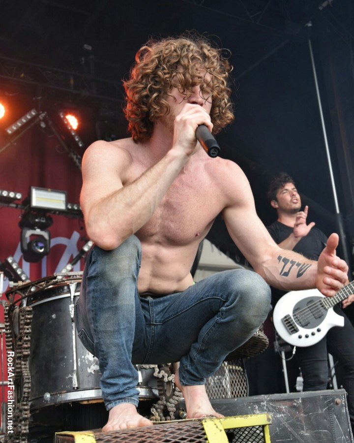 J’attaque le samedi avec NOTHING MORE sur la mini scène Spitfire. Les Texans se surpassent et offre un show pure dynamite sous un soleil de plomb. Morceaux heavy ou des balades, du gros métal et de passages électro, des refrains catchy qui attitre une foule de fans. L’espace devant la scène s’avère très petit. Comme à son habitude le front man, Jonny Hawkins, torse nu, saute non-stop, s’agite et monte sur le curieux engin – la machine à faire du son, « le Scorpion tail ». Il n’oublie pas de remercier les fans pour leur soutien sans lequel ils ne seront pas arrivée jusqu’à là.