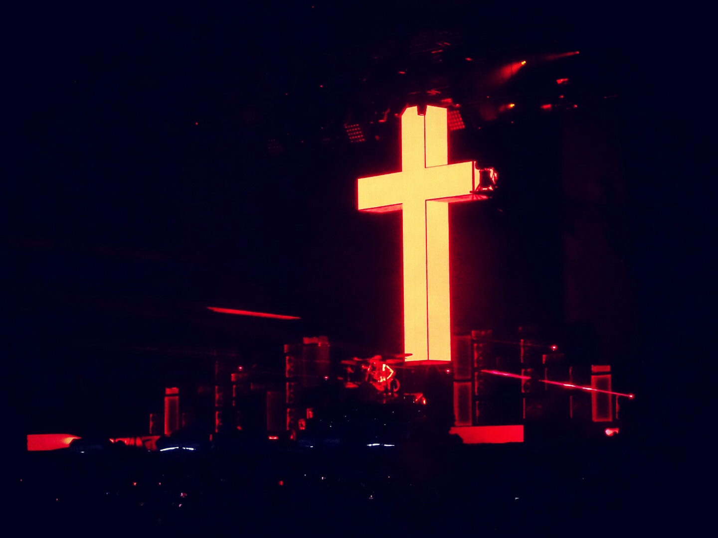 OZZY OSBOURNE, le headliner de la journée, fait son apparition sur la scène. Deux écrans géants de rectangulaires flanquent un écran géant en forme de croix dans le centre de la scène. Après le décor cathédral de Ghost, c’est décidemment la journée ambiance spécial l’église.