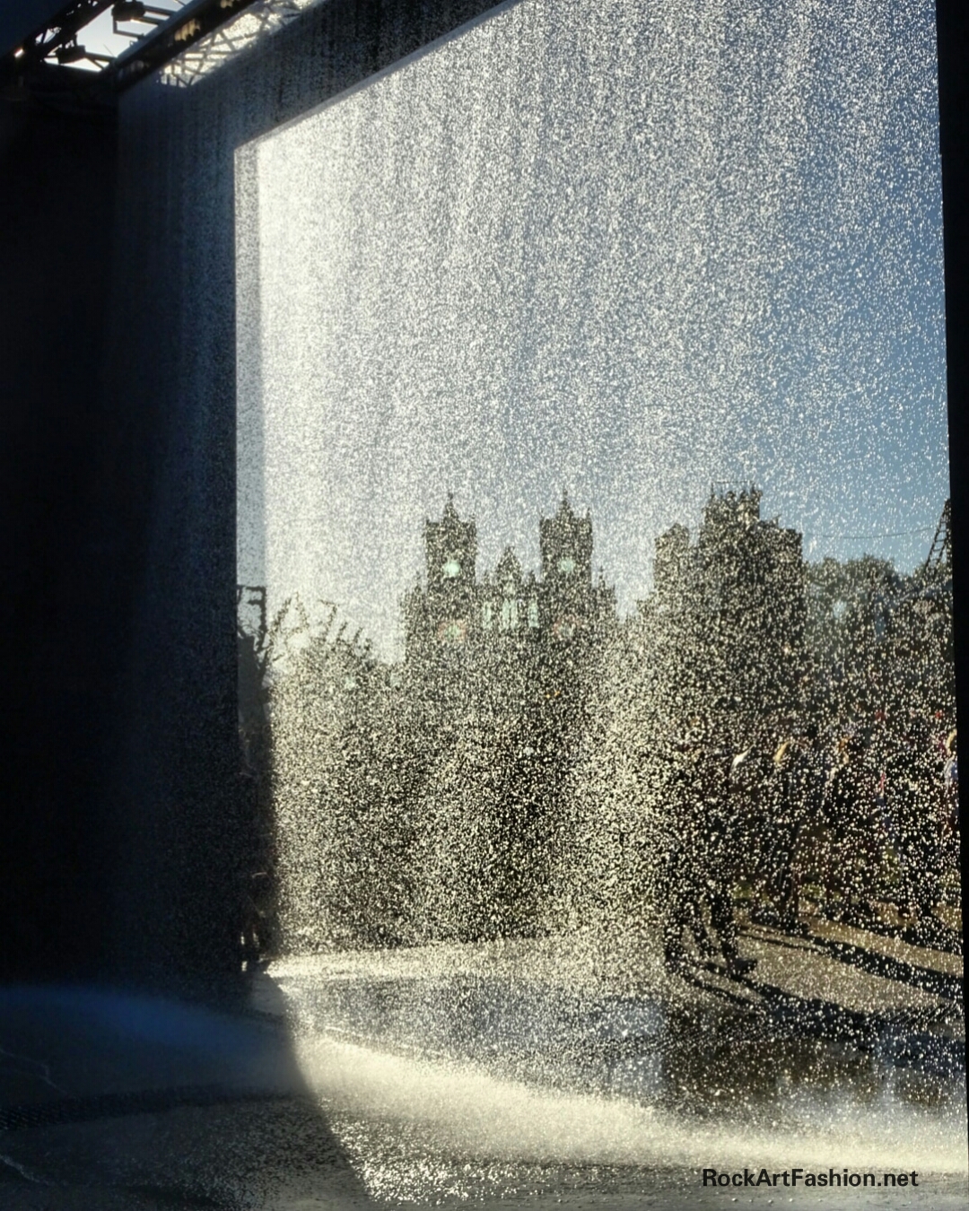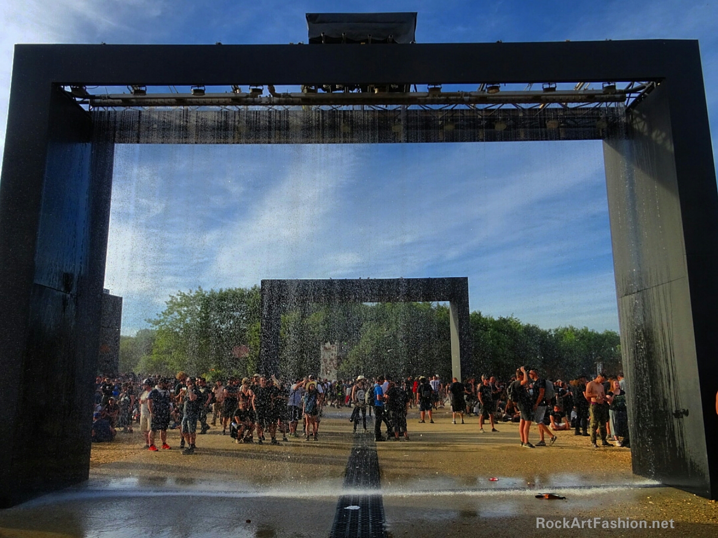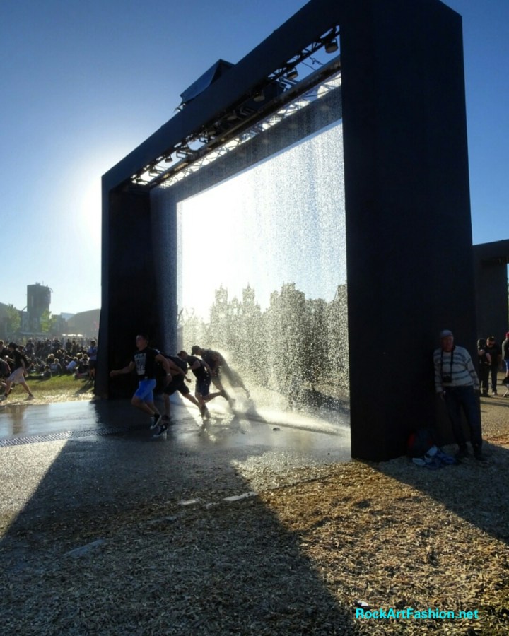 The new structures also appeared on the site: 2 black frames fountains spreading water walls made the delight of the headbangers. Crossing underneath, it was their greatest pleasure and a great way to refresh, while at night, you could admire bright projections on water jets.