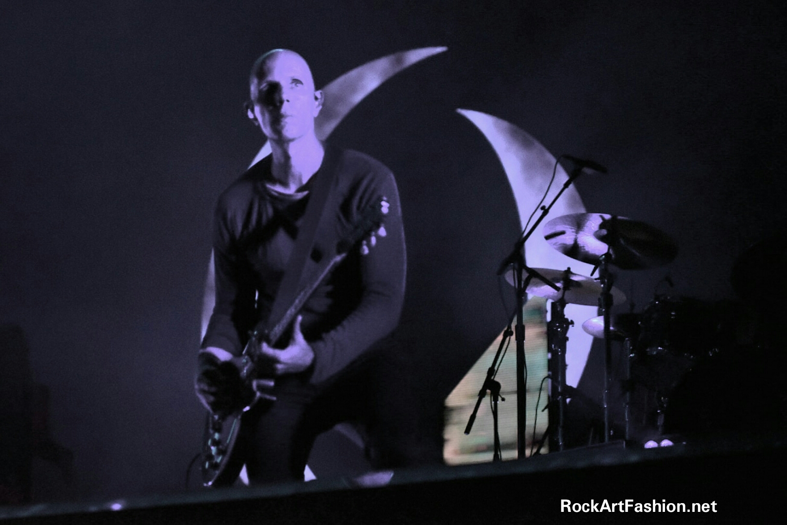 A Perfect Circle pour la fin de la soirée. Et voilà une très bonne occasion de voir enfin, un groupe fameux que j’ai découvert récemment, bah oui, vu qu’ils n’ont rien sorti depuis 14 ans. Métal frissonnant, progressif, émotif et addictif avec la voix claire du Maynard James Keenan, en pénombre au fond de la scène sur un podium surélevé et un Billy Howerdel excellent à la guitare et voix. Ils ont interprété donc la plupart de chansons de « Eat the Elephant » leur album sorti donc cette année, un sound rempli de noirceur, mélancolie et mystére. Un concert épuré, vibrant, élégant et une reprise de AC /DC en hommage au regretté Malcom Young.