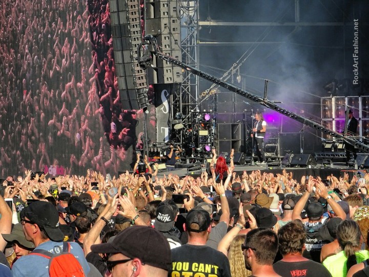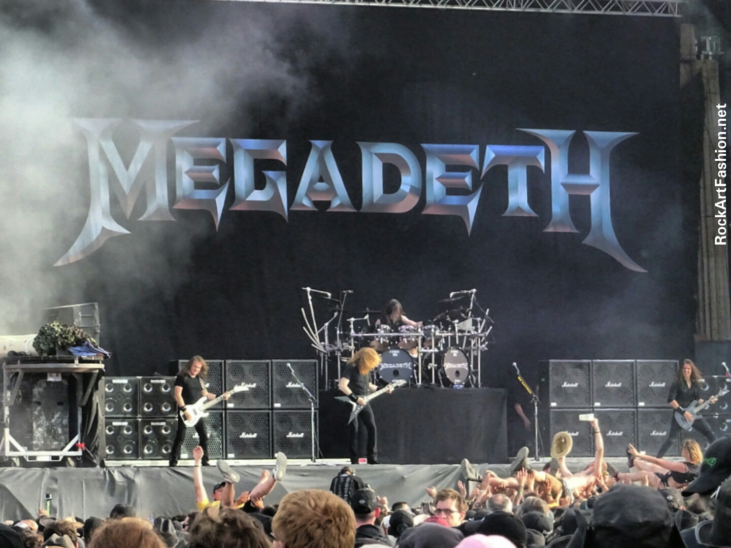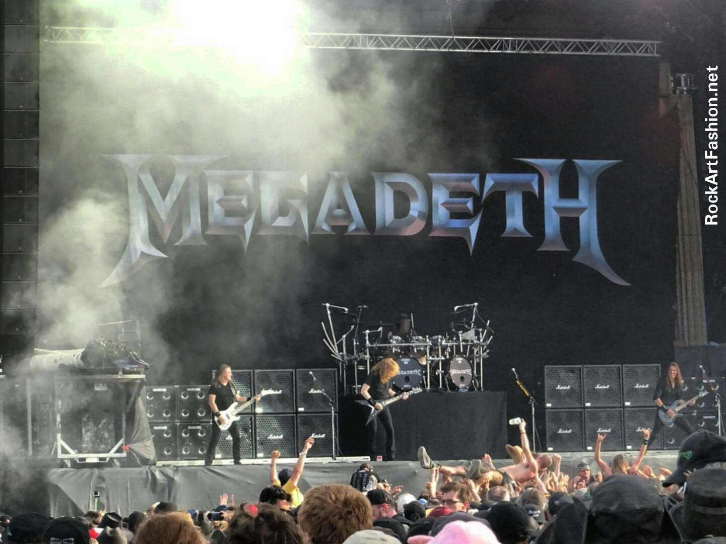 C’est le tour de Megadeth cette fois sur scène. Le quatuor californien commence en trombe mais sur un problème technique car on n’entend rien : pas de guitare, pas de voix et on a l’impression que personne ne se rend compte. Le deuxième morceaux Hangar 18 est déjà mieux mais tout va revenir à la normale au bout de quelques morceaux.