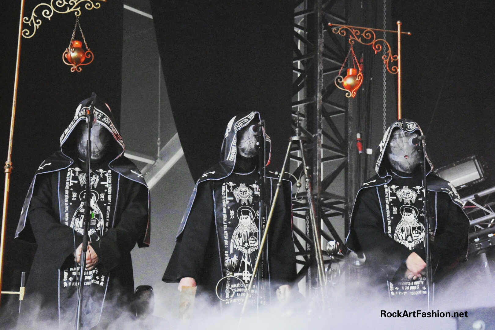 Next welcome to Batushka’s mass on Temple. The stage strangely looks like an Orthodox Church: the priest, the monastic robes, litanies Sung (in old Slavic), candles, incense, a desk, icons and skulls everywhere on stage. Wearing masks in tissue, this enigmatic Polish band freeze our blood. The guitars are beautiful and the voice came from another world. A great setting for a black mass. Impressive and scary.
