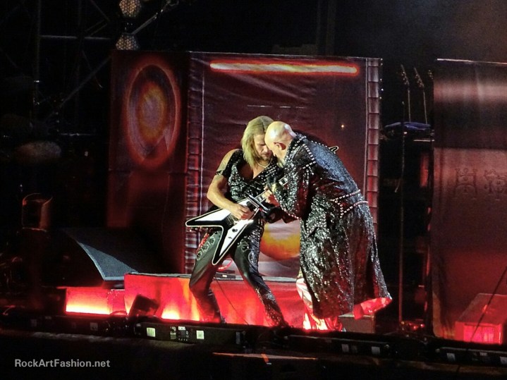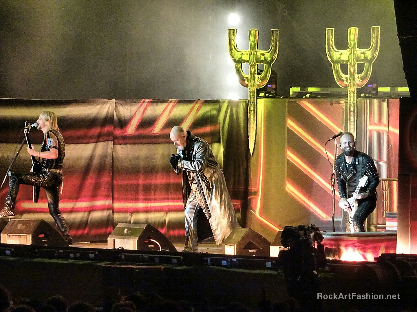 Menés par le charismatique Rob Halford, qui change de tenues quasiment après chaque chanson : véritable défilé de vestes en cuir cloutés, manteaux en jean ou ornés de pailletés dorées et scintillantes, une garde-robe digne du roi de heavy métal, ils enchantent les hits les uns après les autres sous les ovations d’une foule en délire. Painkiller, Breaking the Law, You’ve got another thing coming, Living after midnight, tous leur classiques sont là.