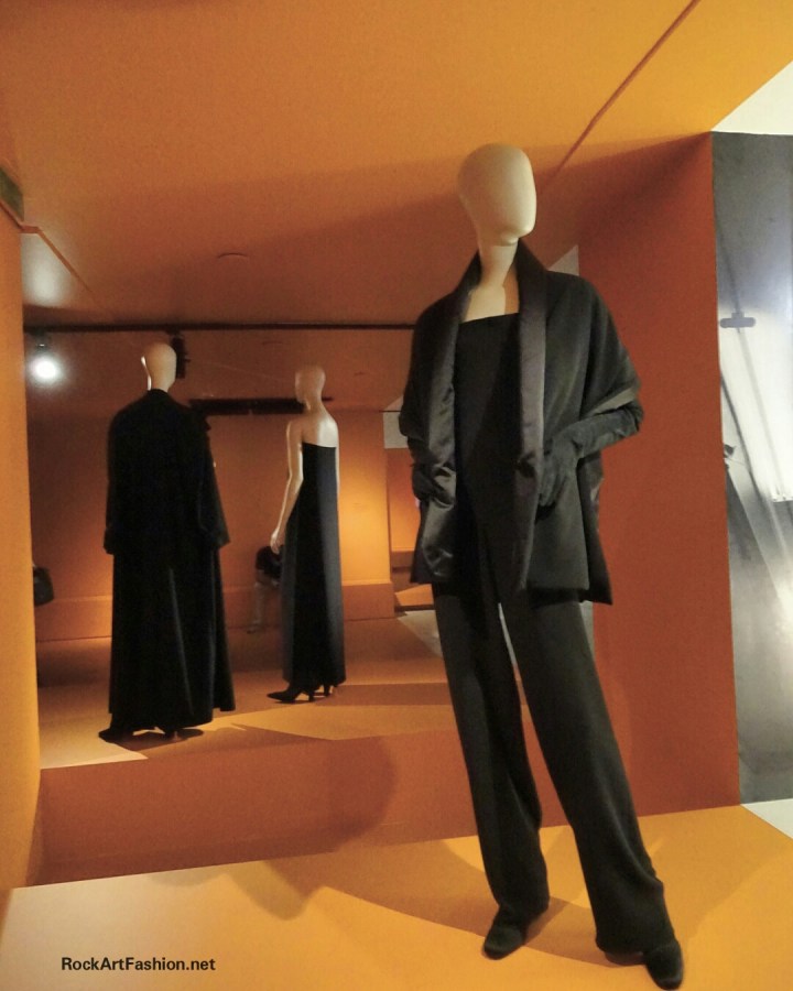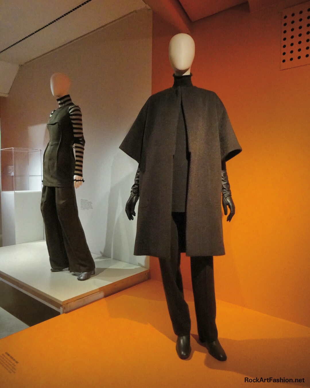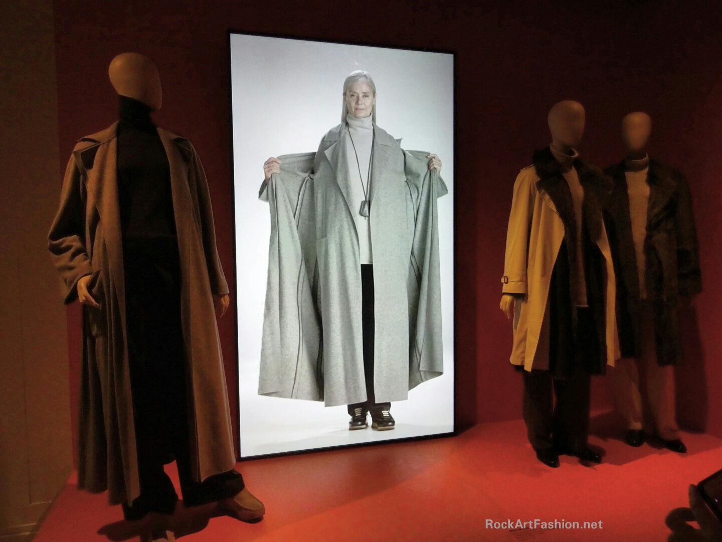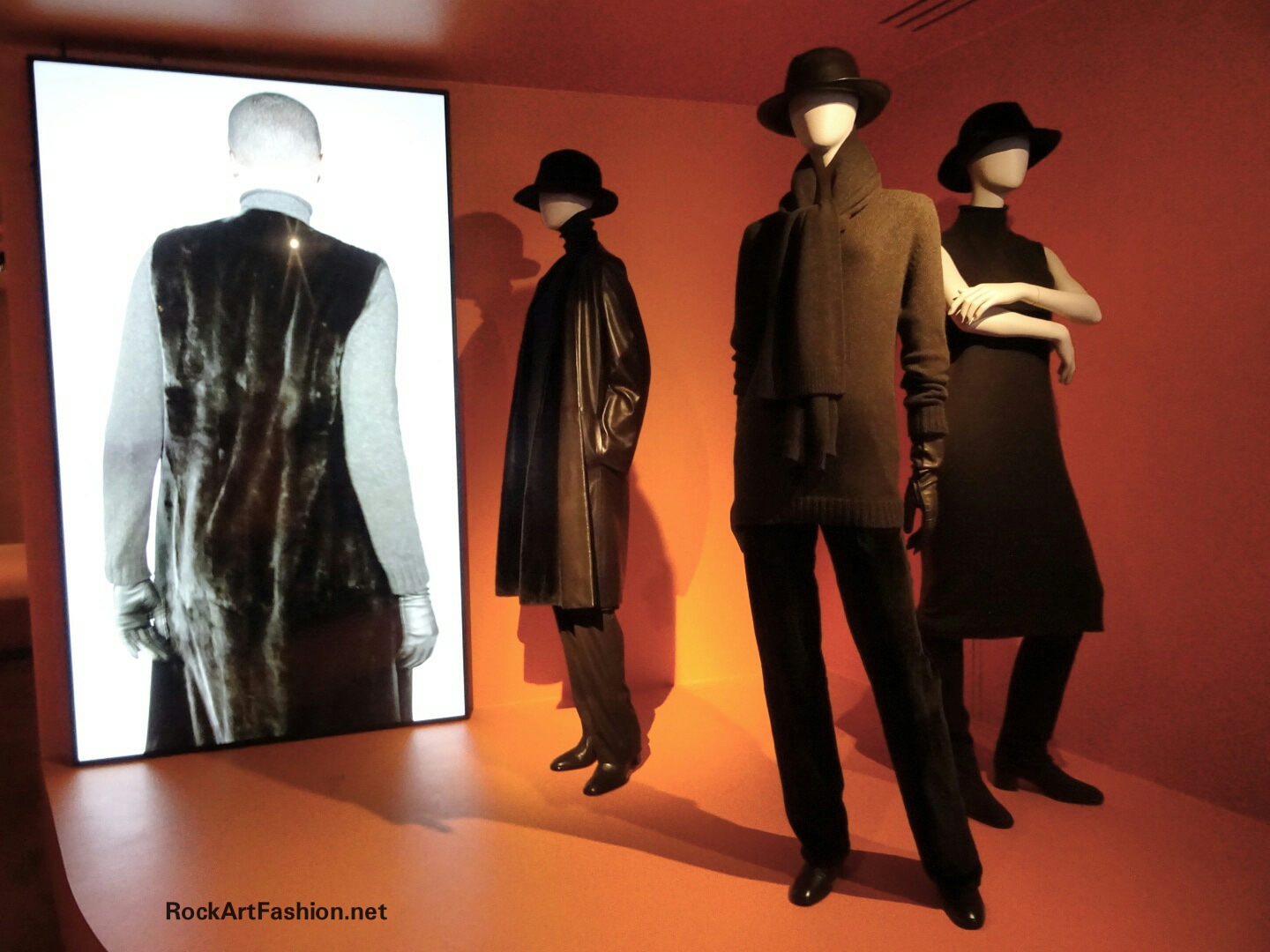 De vêtements représentatifs choisis parmi 12 collections se caractérisent par confort, intemporalité, tonalités neutres, monochromes– gris, noir, ocre, blanc – matières mattes- laine, cachemire, coton et qui se distinguent radicalement de l’image flamboyante qu’on associera à Hermès – les carrés en soie, les couleurs vives et les imprimés.