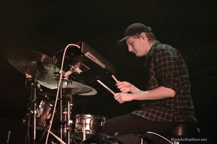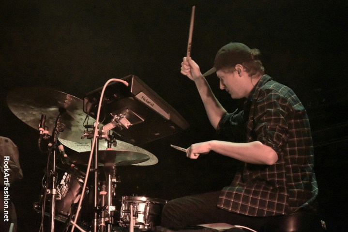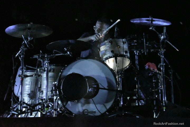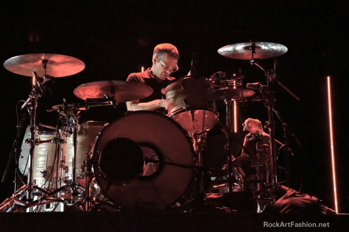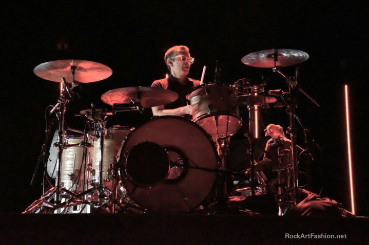 Sam Fogarino est concentré et sérieux derrière son kit, on a l’impression que le lead est entre ses mains.