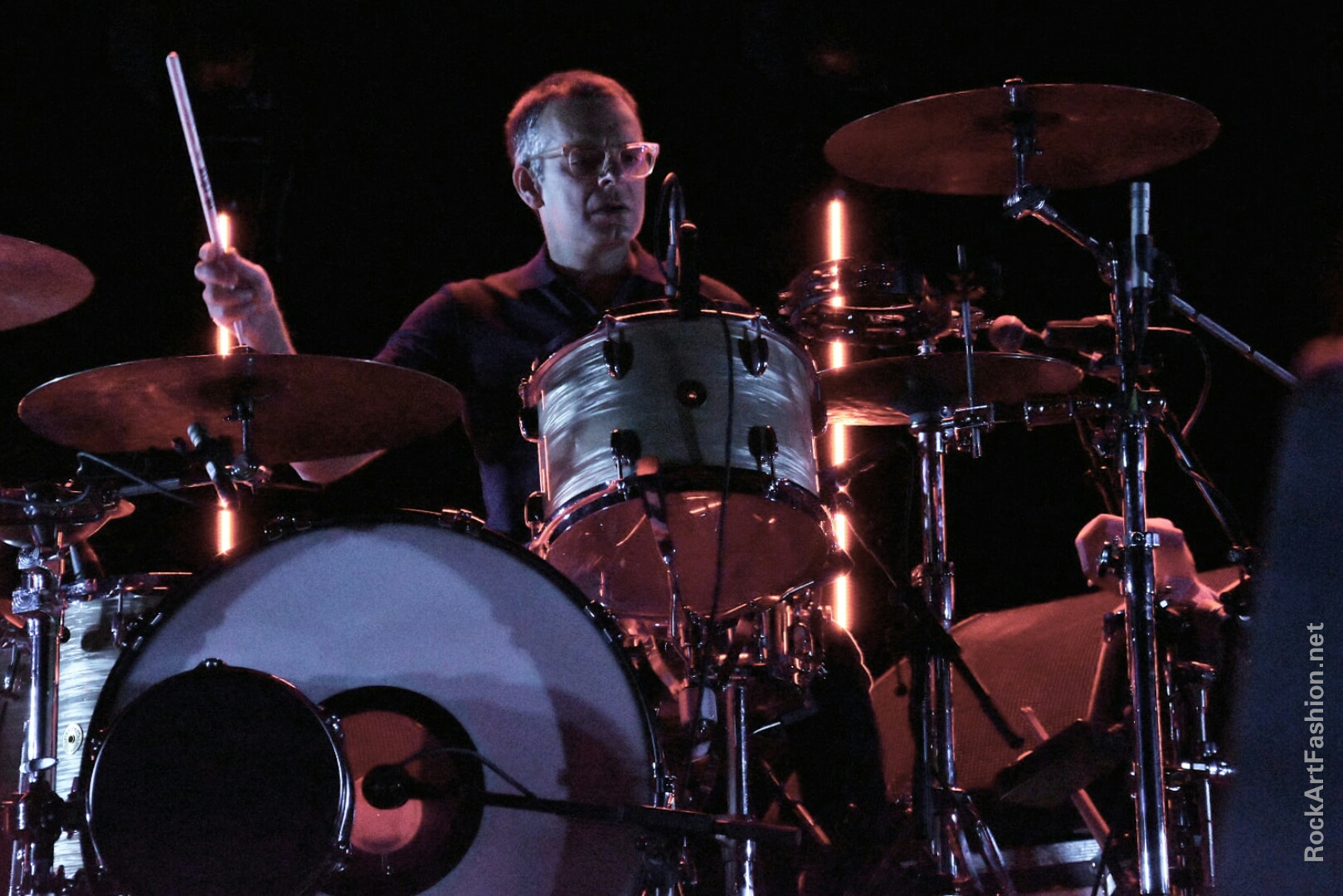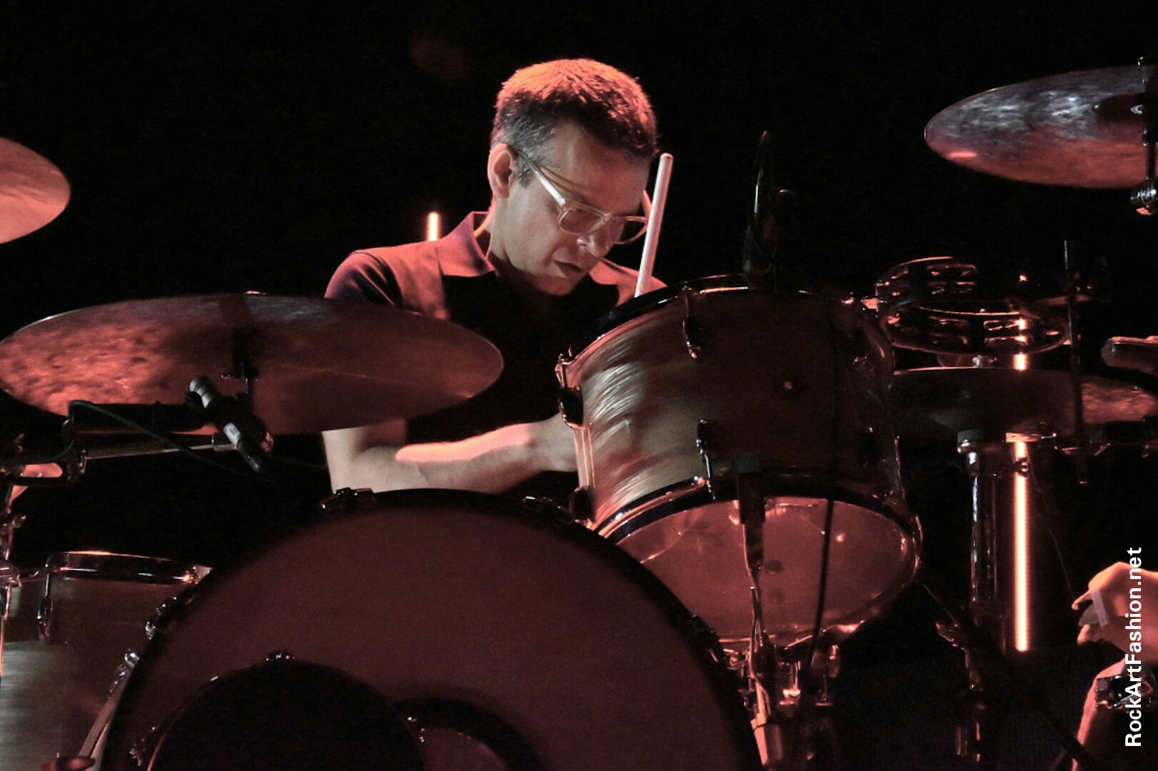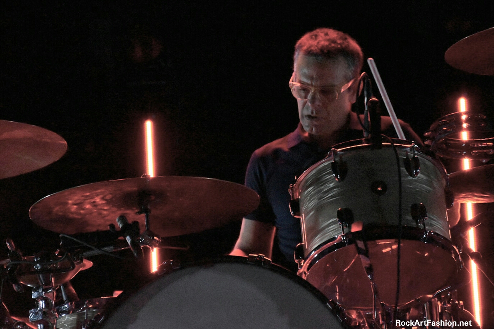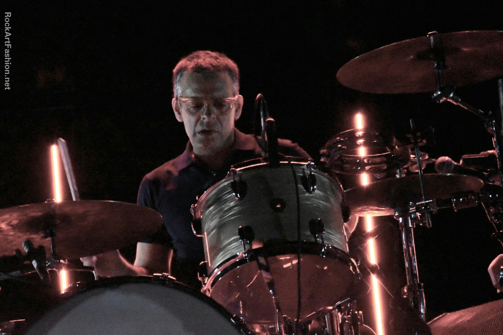 Sam Fogarino est concentré et sérieux derrière son kit, on a l’impression que le lead est entre ses mains.