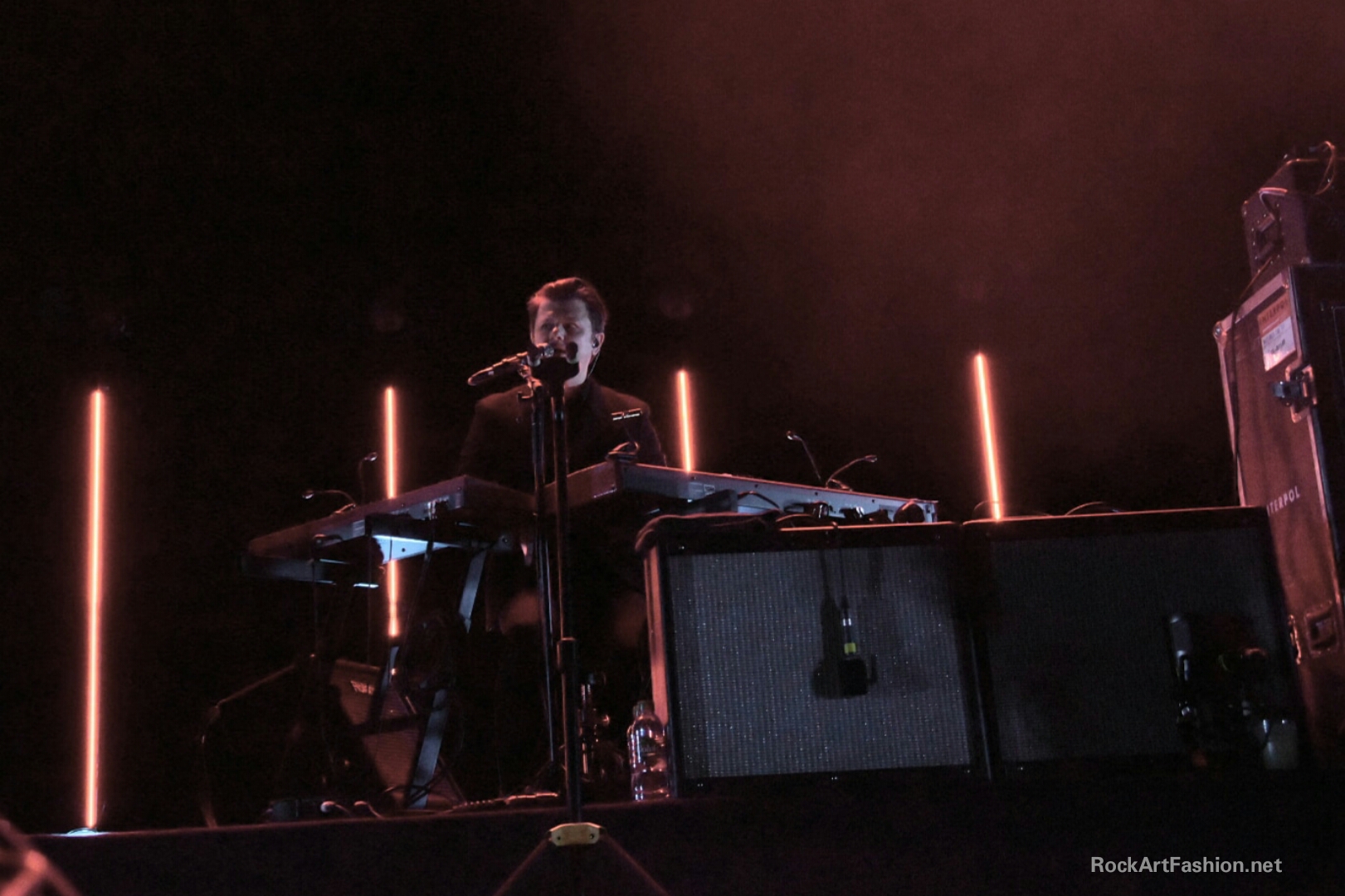 Paul Banks keeps his presence static and sculptural, almost motionless in the middle of the stage with that passion and tenderness that can be read on his face, eyes closed or gaze lost away to the horizon. Smiles and joy in his sparkling eyes while he introduce his bandmates.