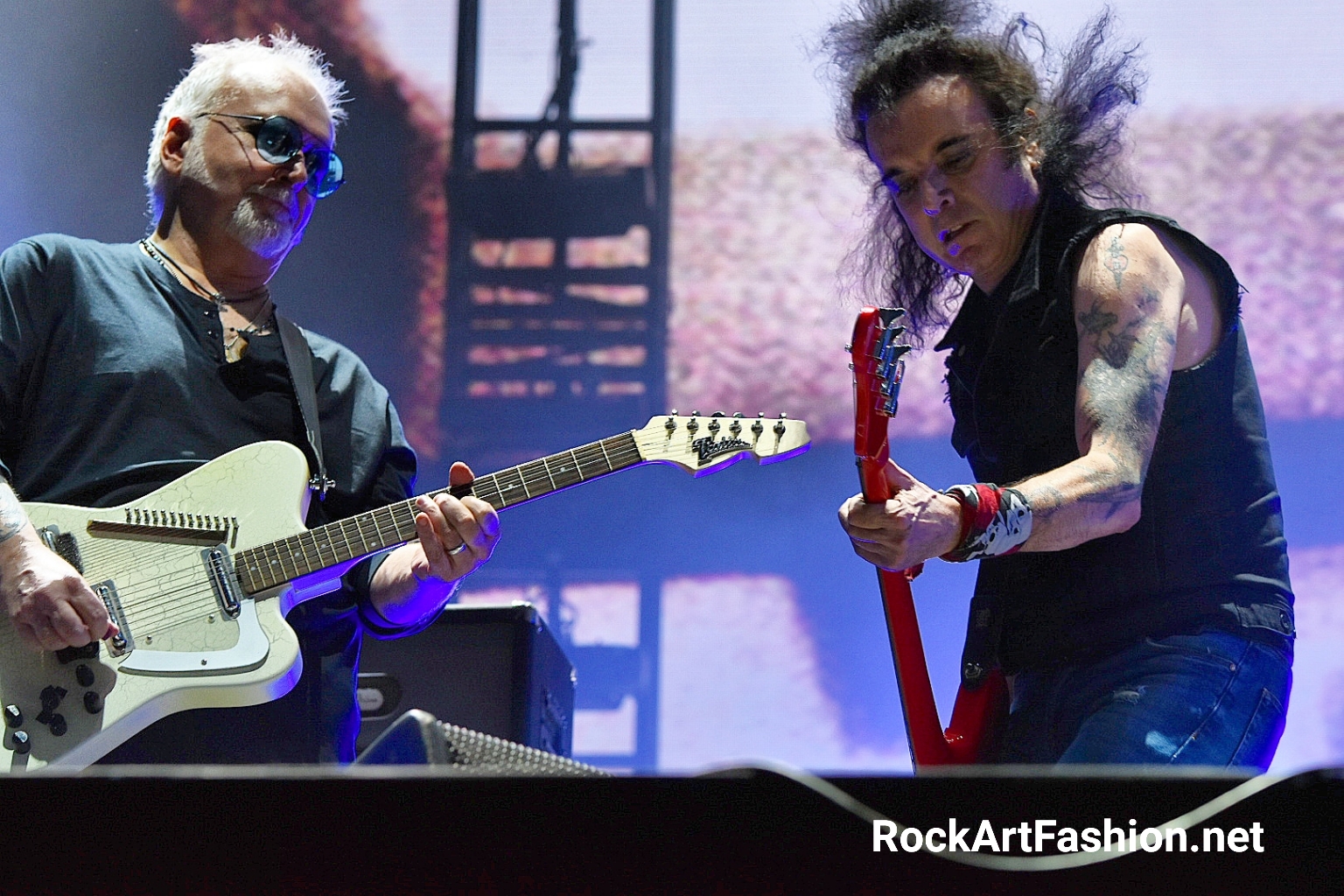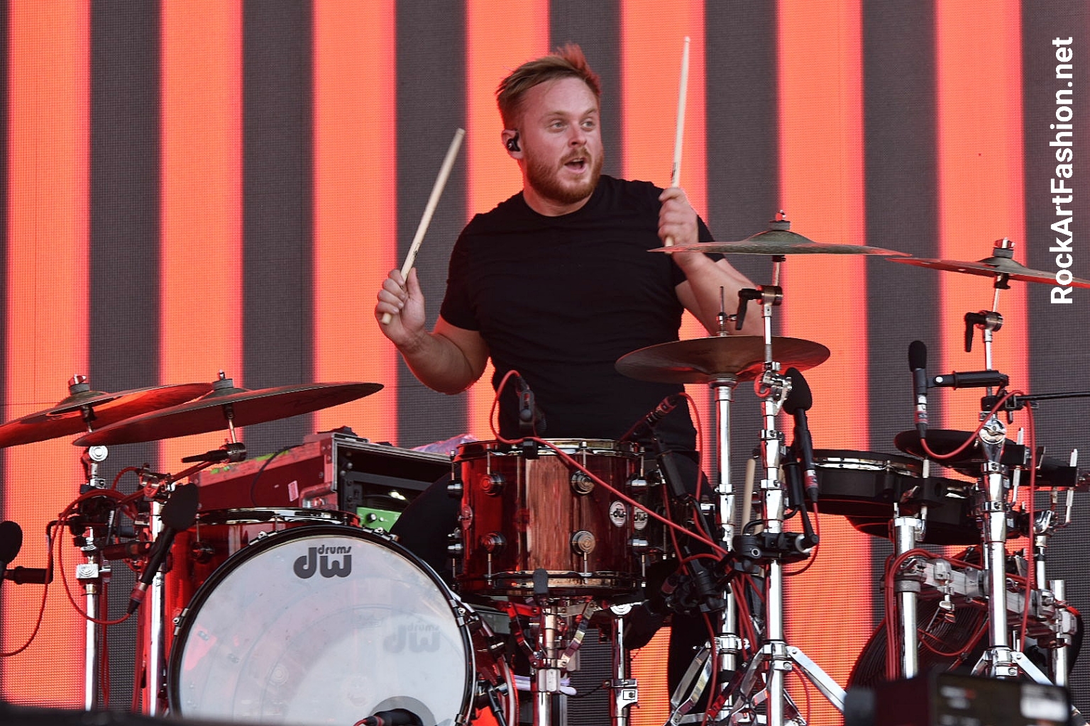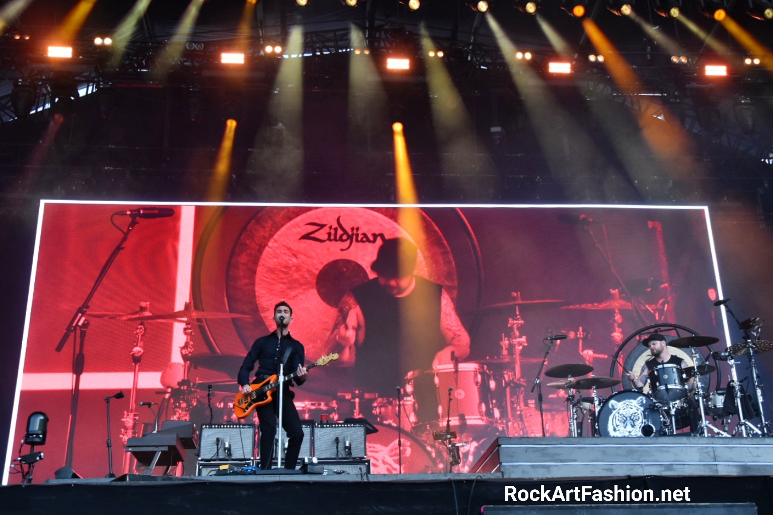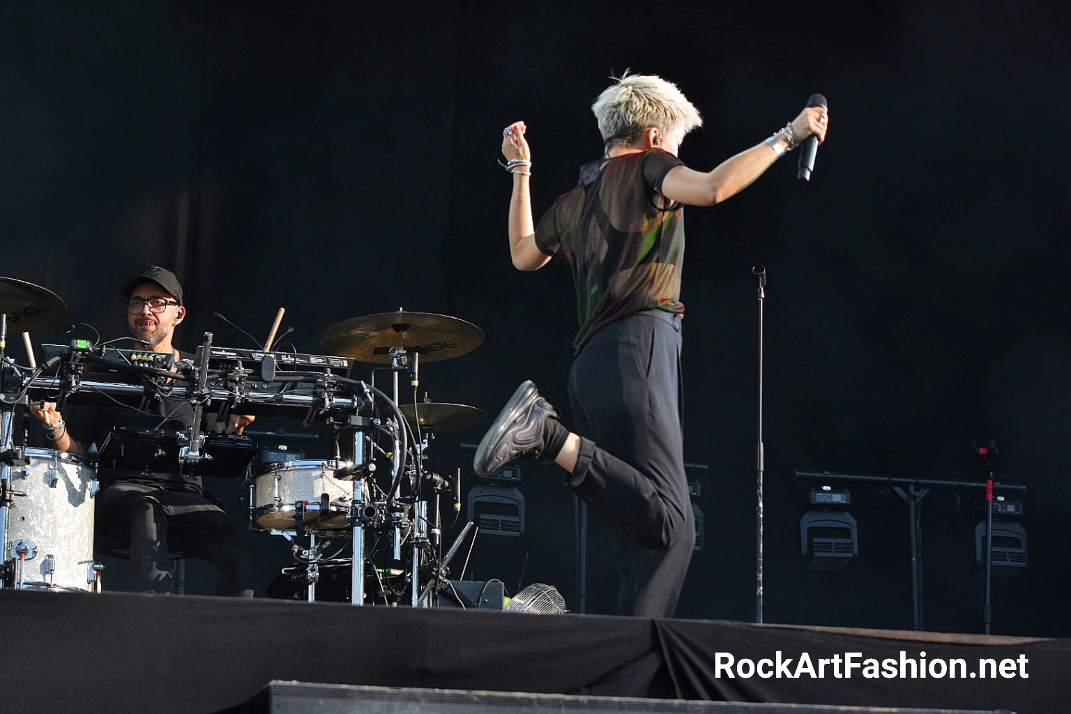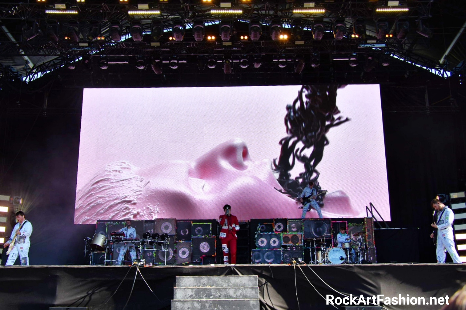 Fans are thrilled and form happy circle pits in front of Bring Me The Horizon’s raw and rabid show. The stage is impressive: colourful speakers, a huge screen that unfolds spectacular images. Between metal, hardcore, post-rock, the British band in jump suits goes wild. Dancers and masked warriors spraying us with smoke spray come to contribute to this delirious show.