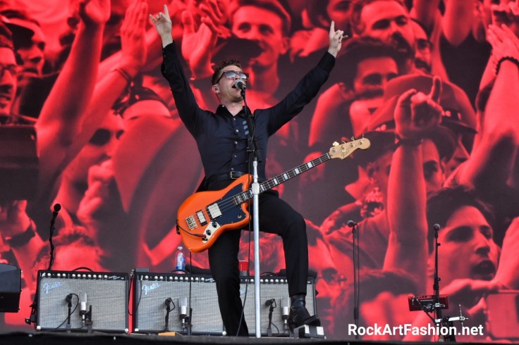 Le duo atypique ROYAL BLOOD (Grande Scène),créé à Brighton par Mike Kerr (chanteur et bassiste) et Ben Thatcher (batteur) met le feu à la Grande Scène. Tous les 2 de noir vêtu enchainent leur tubes déflagrations. Des mélodies accrocheuses, scénographie minimaliste avec un grand écran derrière et des cotés. Lights Out, Figure it out, I only lie when I love you, Out of the Black, Little Monster, Ten Tonne Skeleton résonnent brillamment et mettent le public dans une transe hypnotique.