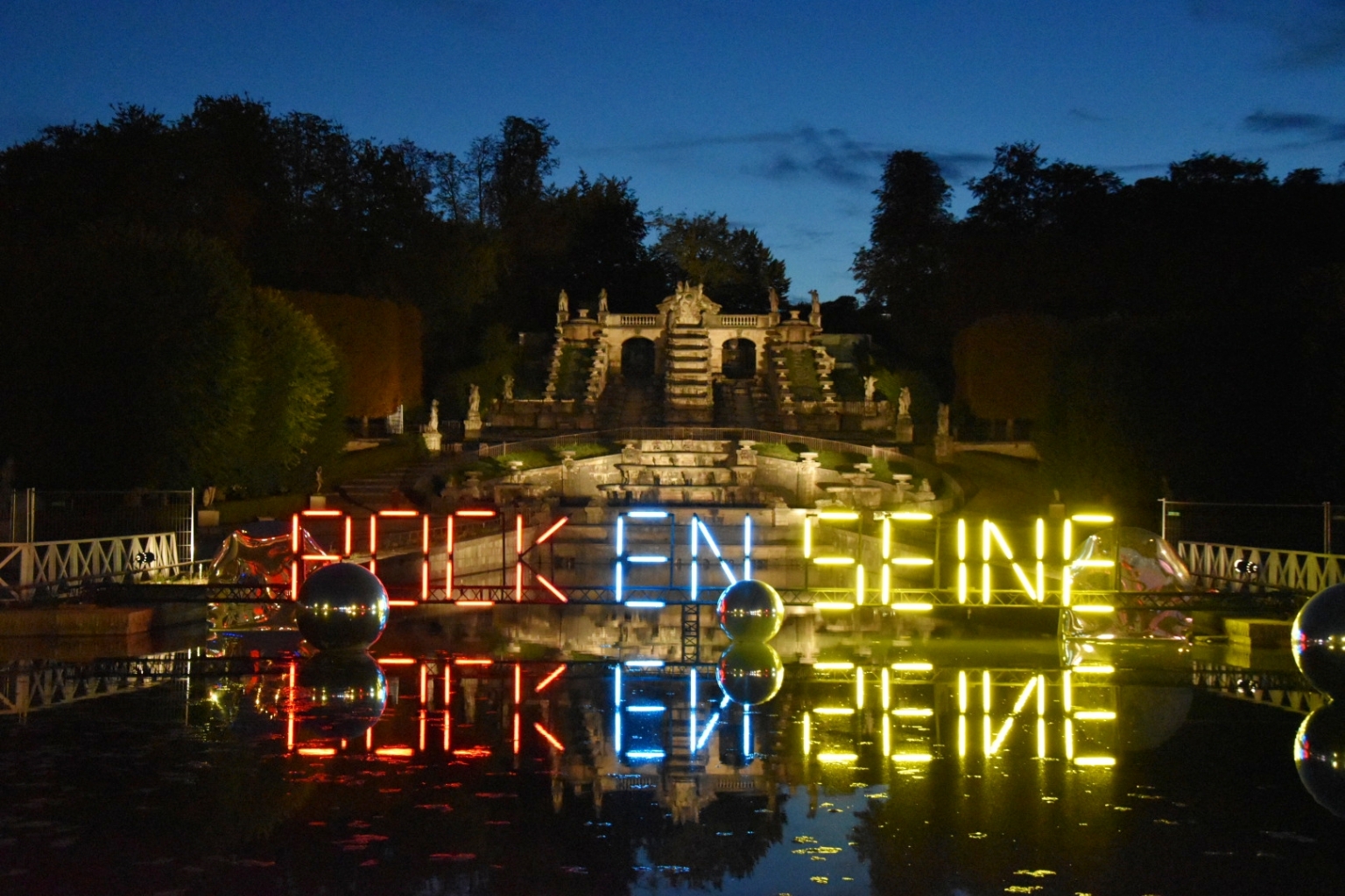 Two Door Cinema Club: Alex Trimble (vocals, guitar), Sam Halliday (guitar) and Kevin Baird (bass, synths) perform in the middle of the afternoon in sweltering heat. Alex, 60s glasses and red face probably regrets wearing his turtleneck and his well-cut blue suit. An ultra-colourful and sparkling show that many enjoyed with enthusiasm. Their biggest electro-rock hits (Undercover Martyn, Something Good Can Work…) make a large audience jump – the brave in front of the stage, the others hiding in the shade of the trees of Saint Cloud. Excellent animations on the screens in the background.