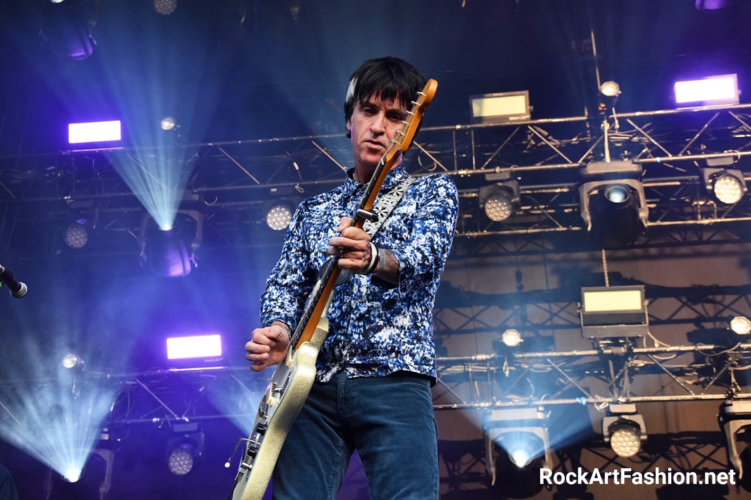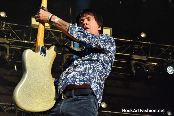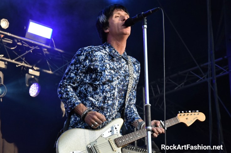 Johnny Marr (Scène des 4 Vents) – l’ancien guitariste des The Smiths livre une excellente prestation sur la plus petite Scène de Rock en Seine. Assez curieux le choix des organisateurs qui probablement ne s’attendait pas à voir un si grand nombre des fans venus l’applaudir. Entre ses chansons solo (The Tracers), les reprises des Smiths (Bigmouth Strikes Again, This Charming Man, There Is A Light That Never Goes Out), ou celles de son groupe Electronic (Getting Away With It) et même une reprise de Depeche Mode (I feel You,) on a pu assister un show réjouissant. Un vrai succès dans la foule qui danse les bras en l’air et pousse des cris de bonheur.