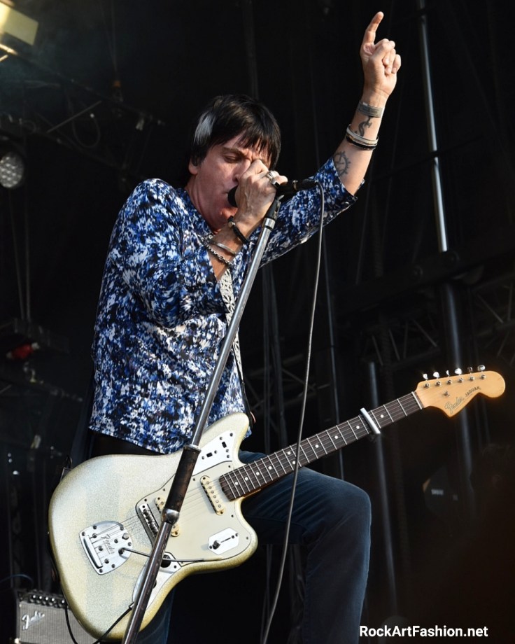 Johnny Marr (Scene des 4 Vents) – the former guitarist of The Smiths delivers an excellent performance on the smallest stage of Rock en Seine. Curious choice of organizers who probably did not expect so many fans to come and applaud him. Between his solo songs (The Tracers), the covers of the Smiths (Bigmouth Strikes Again, This Charming Man, There Is A Light That Never Goes Out), or those of his band Electronic (Getting Away With It) and even a cover of Depeche Mode (I feel You) the concert had a real great success in the crowd that dances with their arms in the air and cries of happiness.