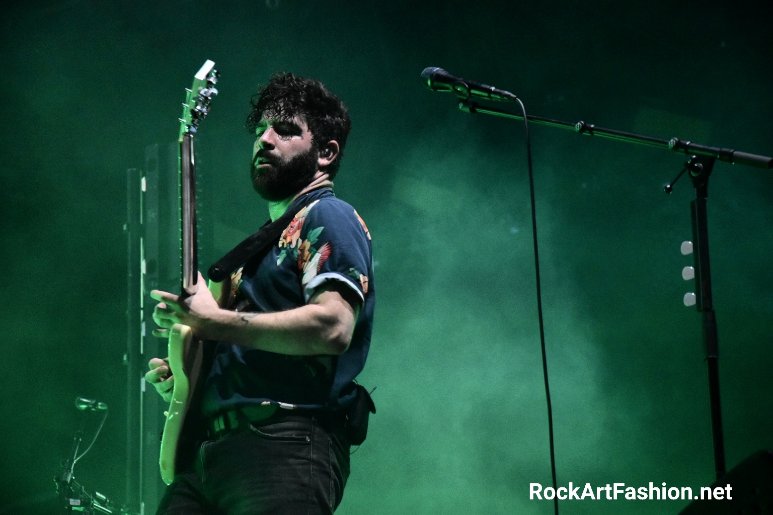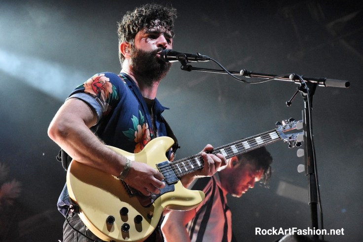Entourés par une forêt tropicale, FOALS (Scène de la Cascade)a fait son retour sur la scène de Rock en Seine, cette fois pour présenter leur cinquième album, Everything Not Saved Will Be Lost – Part 1, sortie le 8 mars- (la seconde partie sortira avant la fin de l’année). Un live bouillonnant qui clôture le festival avec Yannis Philippakis aux commandes, bête de scène en chemise fleuri qui n’hésites pas survoler la foule en délire vers la fin du concert sur l’incendiaire What Went Down. Sans oublier de transmettre ses petits messages de « fuck » au Brexit, Johnson, Trump ou Bolsonaro. Un concert qui monte en puissance de début jusqu’à la fin, un déluge des sonorités est des musiciens passionnés.