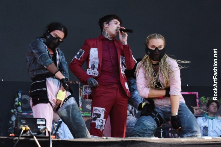 Les fans chauffes à bloc se régalent et forment de joyeux circle pits devant le show brut et enragé de Bring Me The Horizon (GrandeScène). Le décor est impressionnant : des enceintes colorées, un immense écran qui déroule des images spectaculaires. Entre métal, hardcore, post-rock, le groupe britannique en combinaisons se déchaine. Des danseuses et des warriors masquées qui nous asperge avec de jets de fumée viennent apporter leur contribution à ce show délirant.