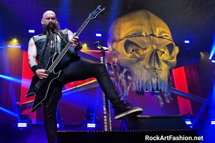 The band’s newest member, drummer Charlie Engen, seems comfortable on the platform just below the huge skull that overlooks the stage. Excellent work behind his kit with an energetic and technically exceptional drumming.