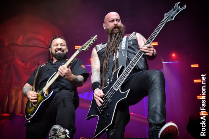 Le chanteur Ivan Moody, Chris Kael (basse), Zoltan Bathory (guitare), Jason Hook (guitare) et Charlie Engen (batterie), chaque musicien a vraiment apporté au show son maximum d’énergie et de théâtralité. Leur prestation repose bien sur la voix et la présence scénique d’Ivan Moody qui crie, rugi, chante ou rappe mais aussi sur le guitariste Zoltan Bathory, tourbillon des dreads, et excellente précision à la guitare, très complice avec le très expressif Chris Kael et son beard banging furieux, à la basse.