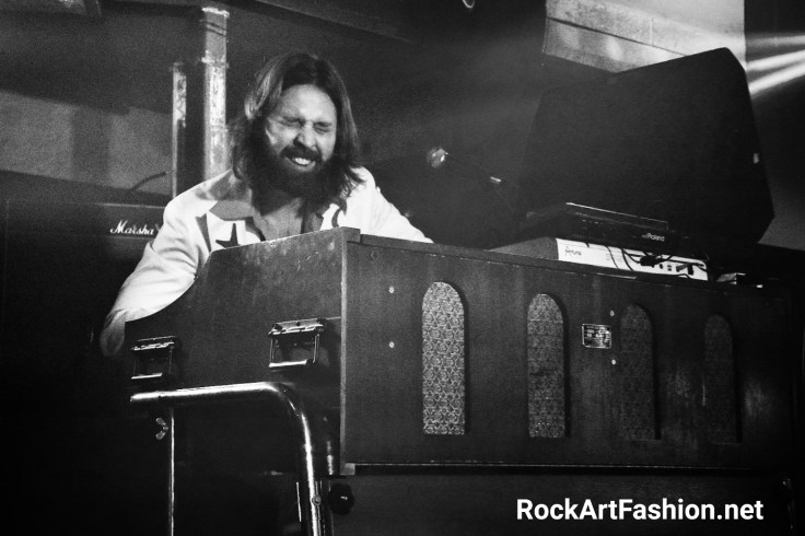 Pablo cheveux dans les yeux, maitre de sa voix et de sa guitare, a vraiment l’allure rock star old school. Il exécute ses solos avec dextérité à genoux , debout et même les 2 pieds sur l’orgue. Il s’exerce aussi au français et c’est adorable. Robin fabrique des sons époustouflants avec son l’orgue Hammond qui imprime vraiment ce côté vintage psychédélique au sonorités blues rock. Je pense que c’est la première fois quand j’étais aussi impressionné par cet instrument.